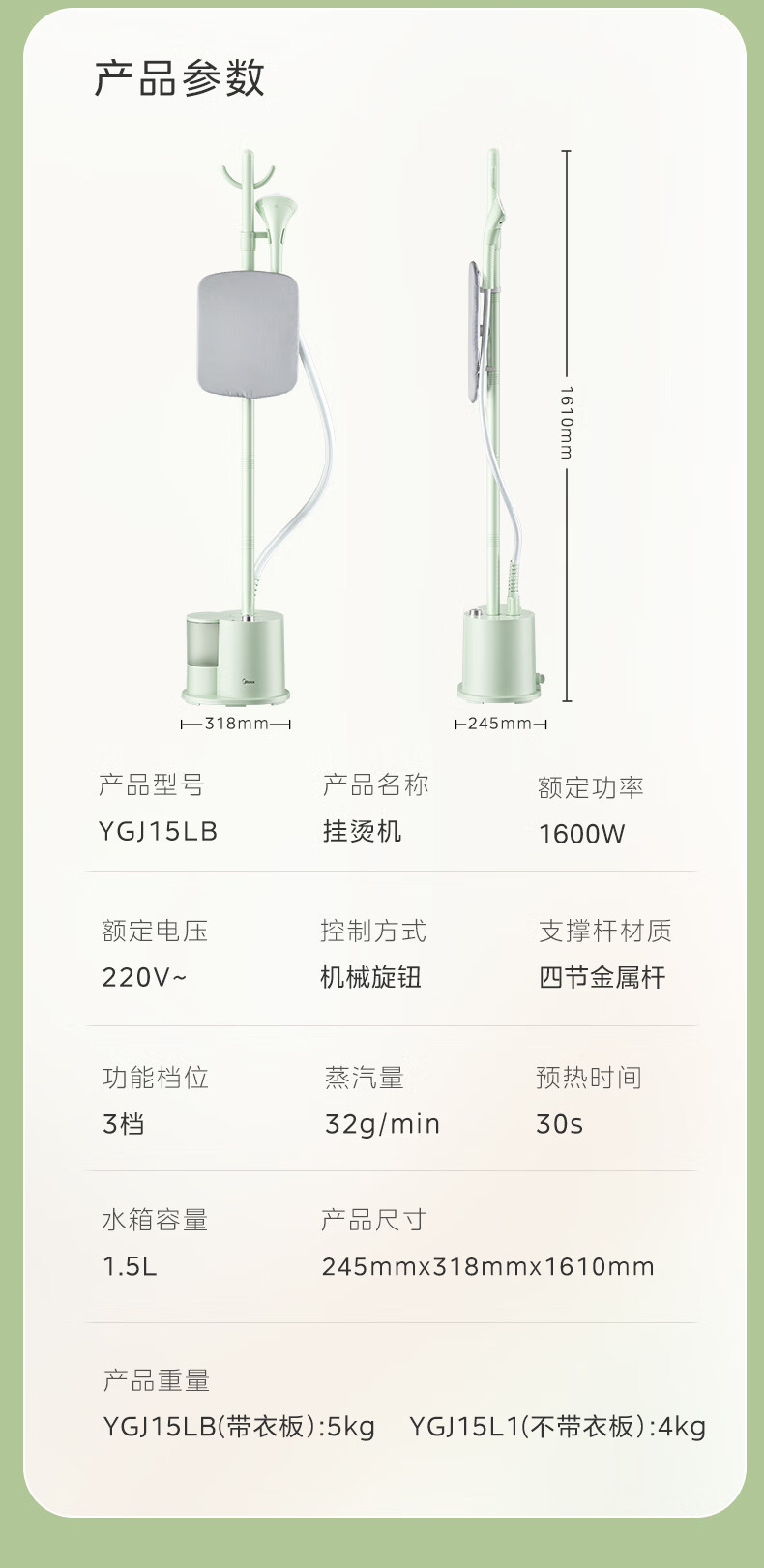 Midea 의류 다림질 기계 스팀 전기 다리미 휴대용 스팀 수직 의류 다림질 기계 다림질 기계 YGJ15LB