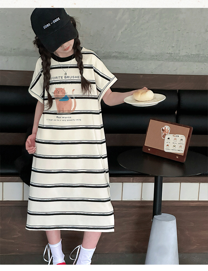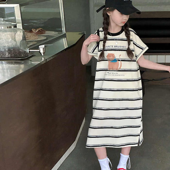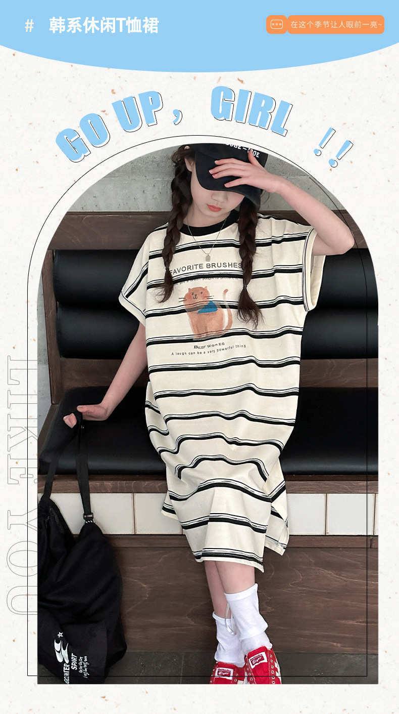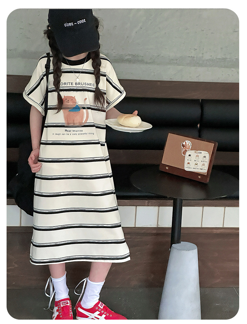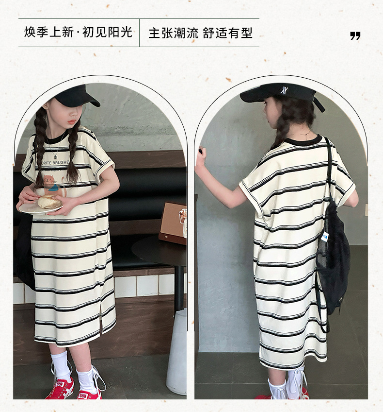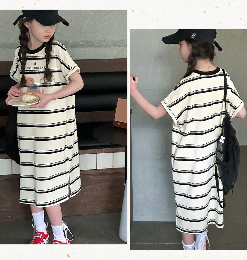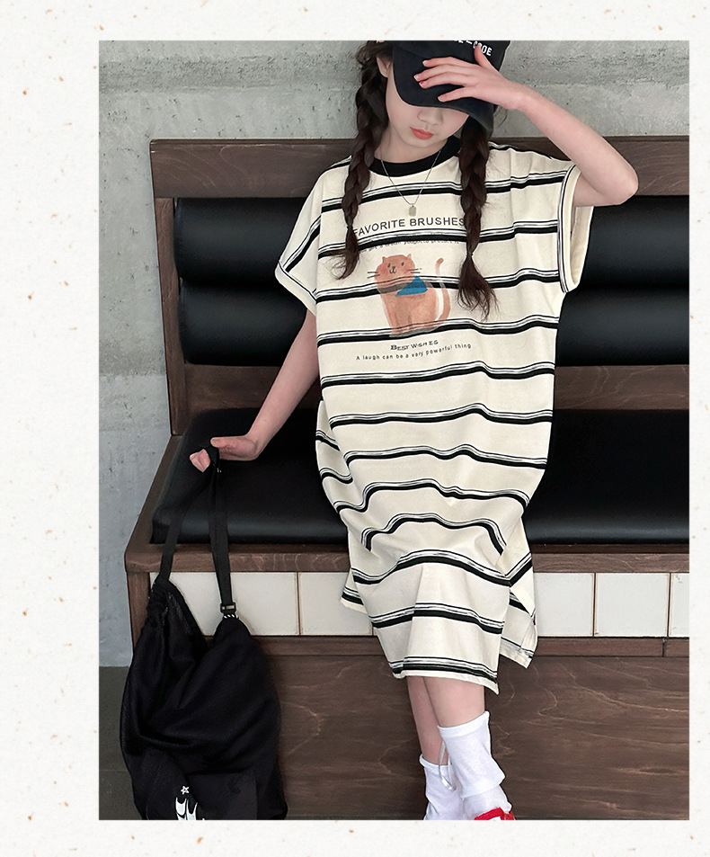 여름 새 여자 민소매 드레스 아동 의류 아동 스타일 여자 줄무늬 민소매 중간 길이 스커트 조끼 드레스스토어 가기