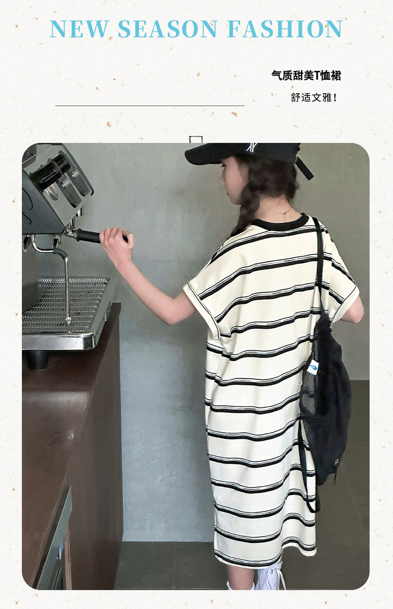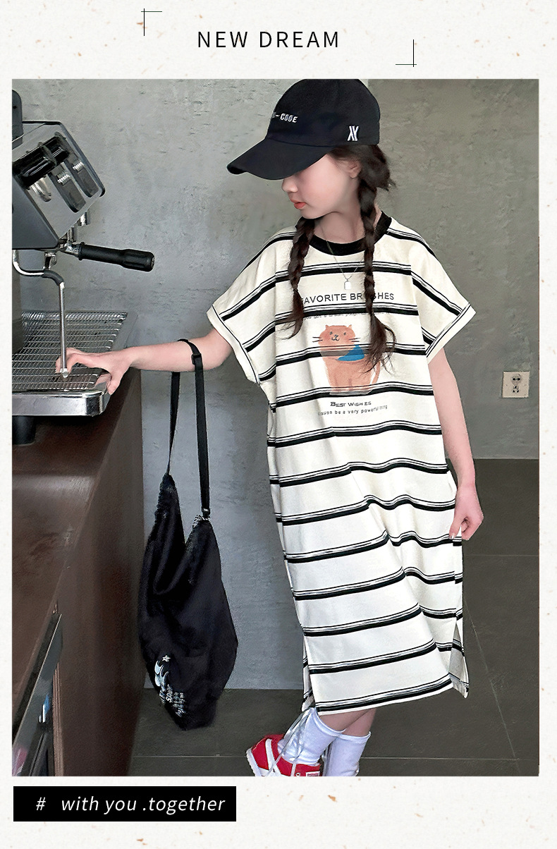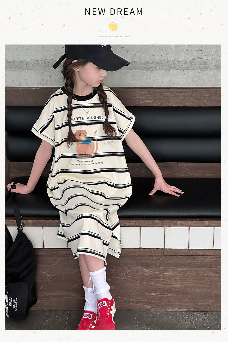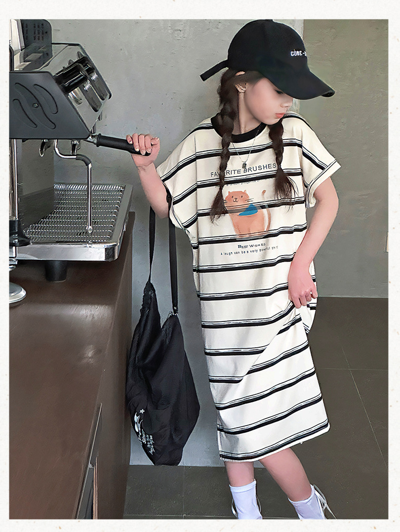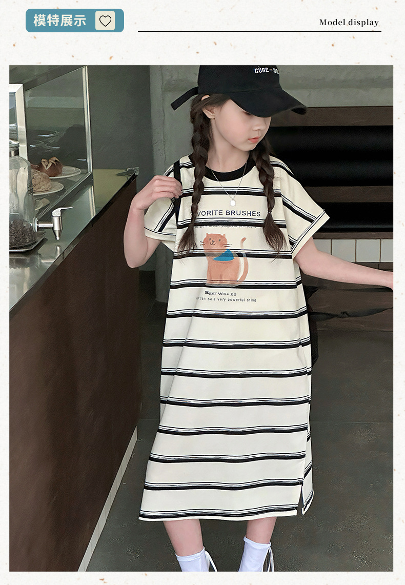 여름 새 여자 민소매 드레스 아동 의류 아동 스타일 여자 줄무늬 민소매 중간 길이 스커트 조끼 드레스스토어 가기