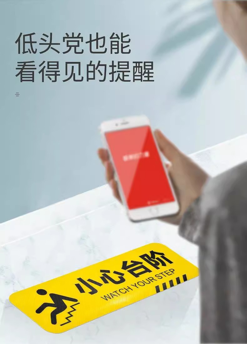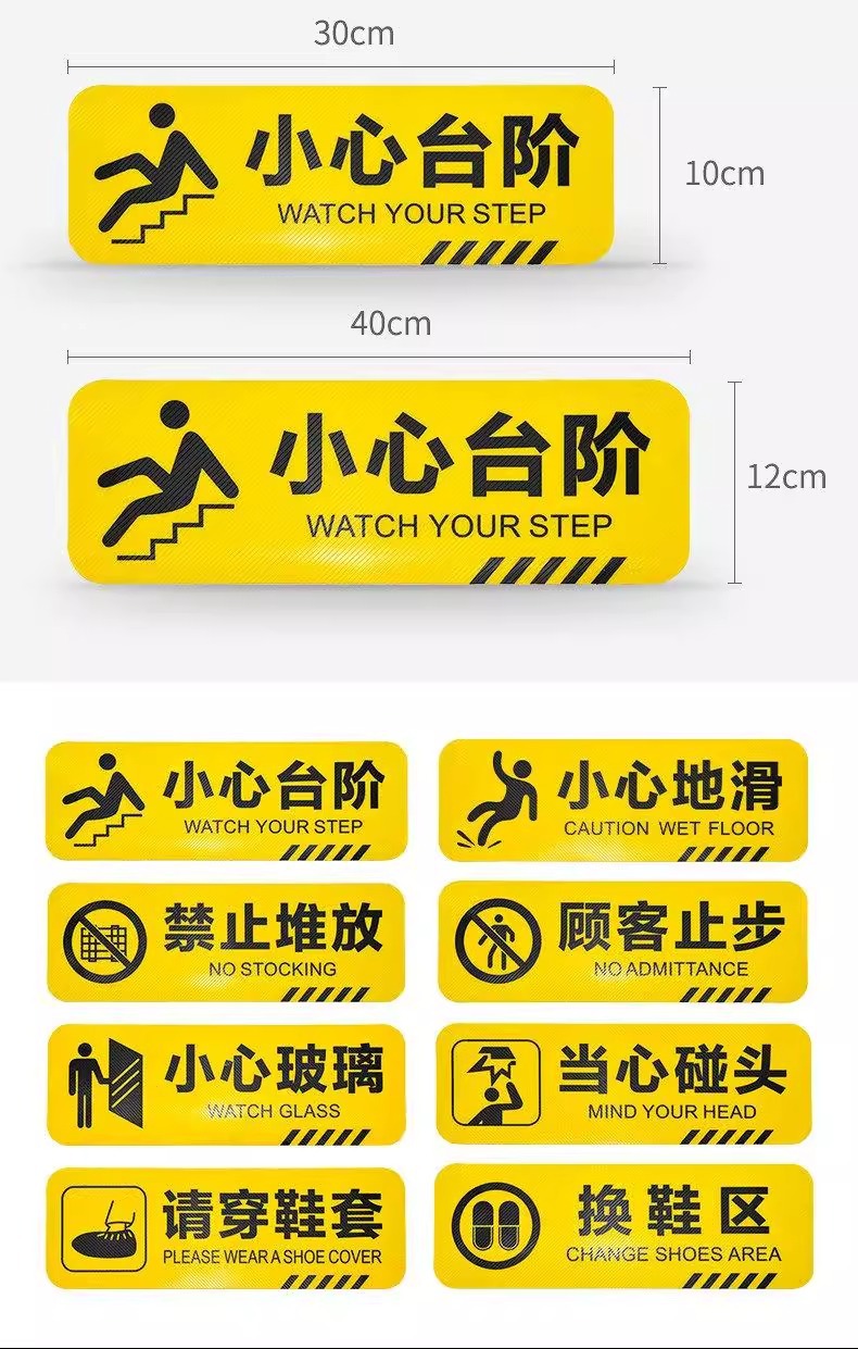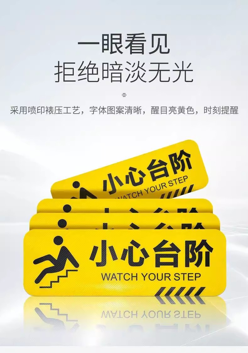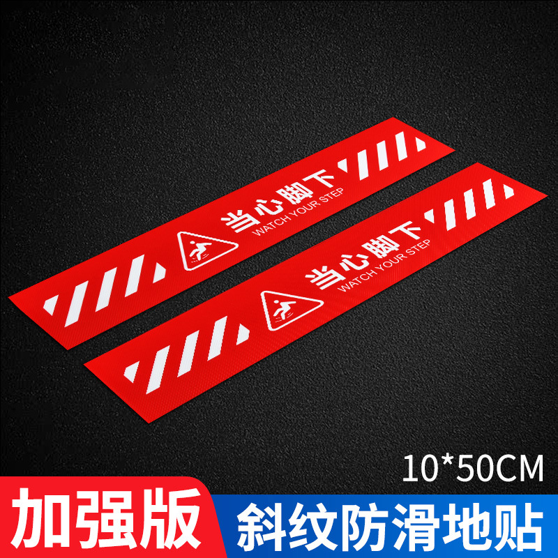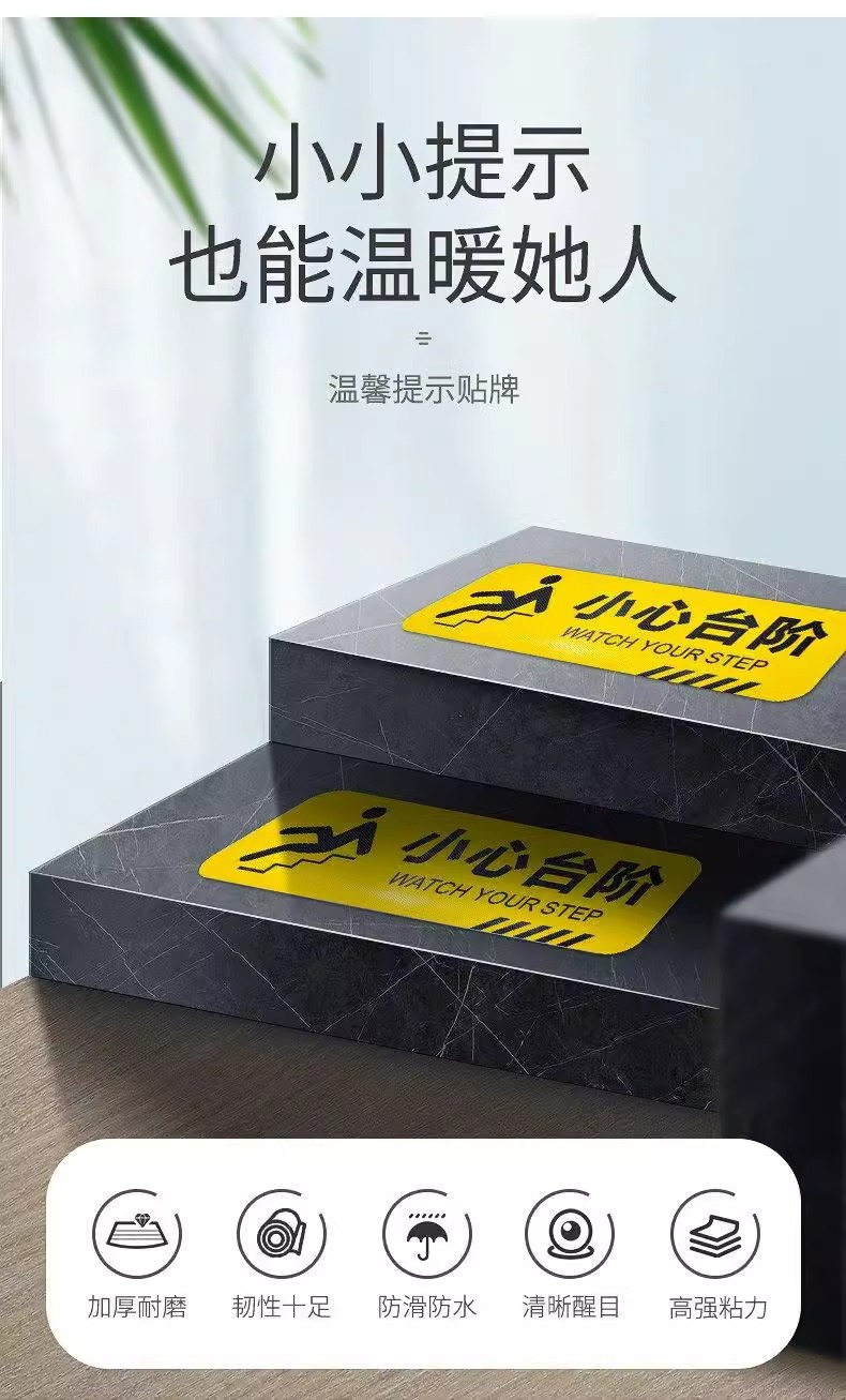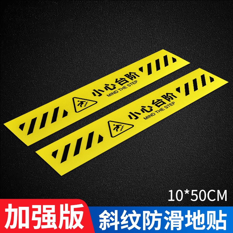 定制小心台阶地贴标识牌 安全警示小心地滑斜纹磨砂楼梯贴提示牌
