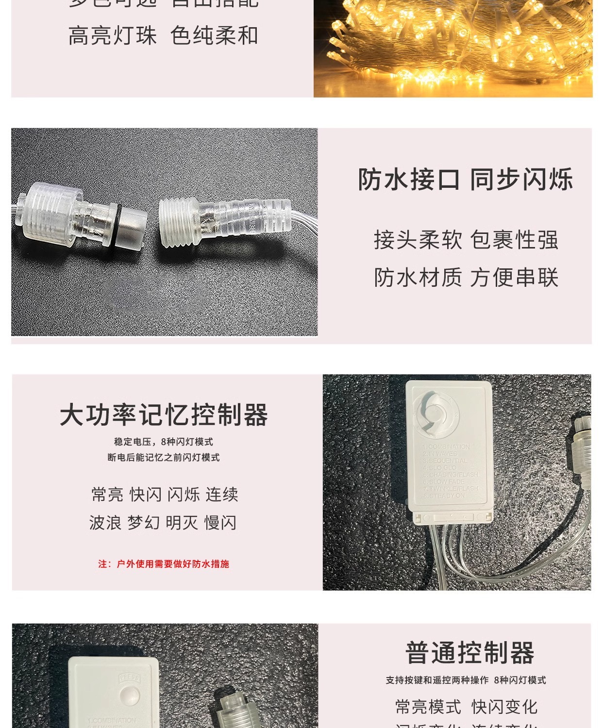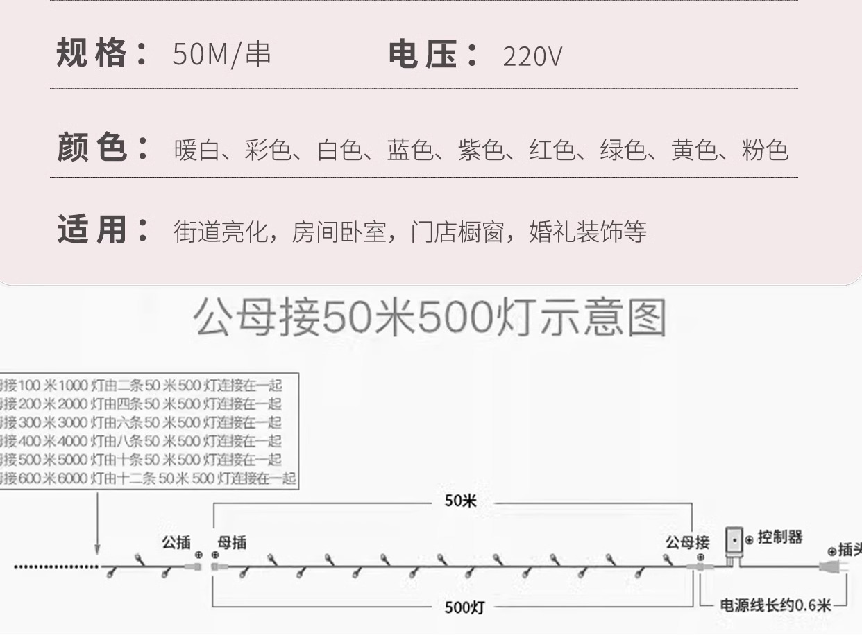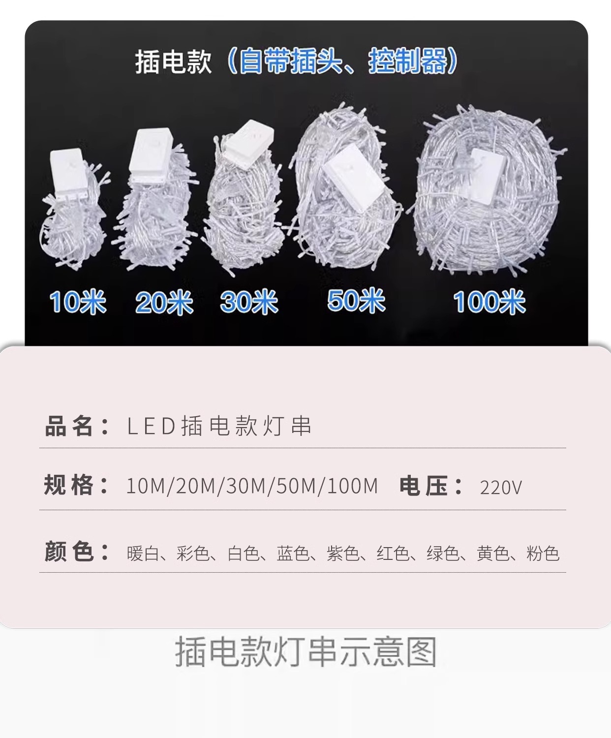 • 8가지 기능을 갖춘 220V 플러그인 모델(100M600 조명)