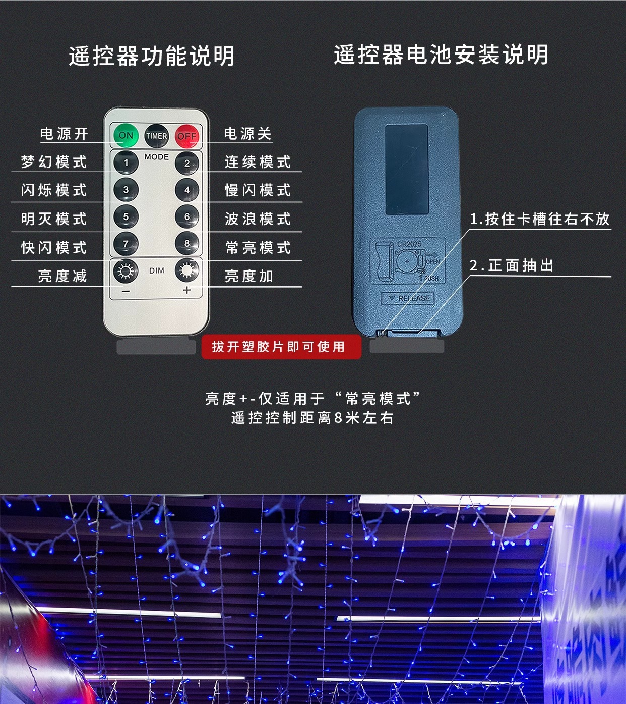 • 8가지 기능을 갖춘 220V 플러그인 모델(100M800 조명)