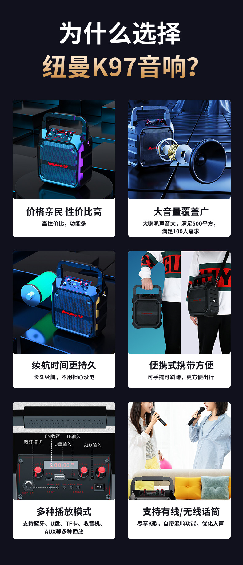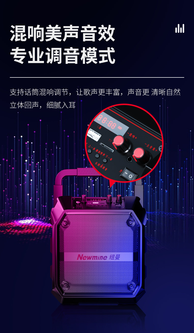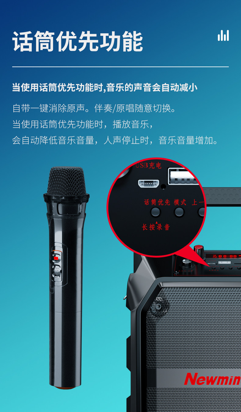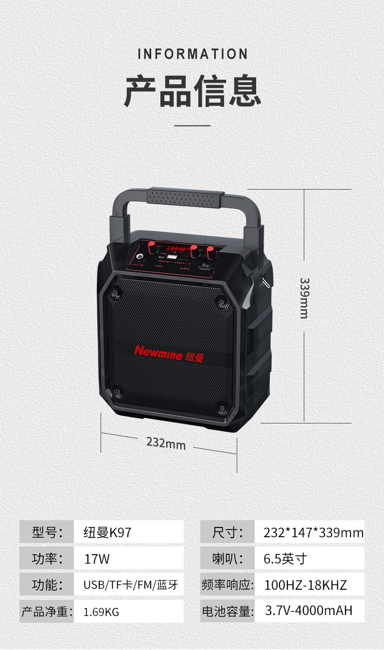 뉴먼 K97 스퀘어 댄스 오디오 야외 스피커 중저음 서브우퍼 휴대용 무선 블루투스 플레이어