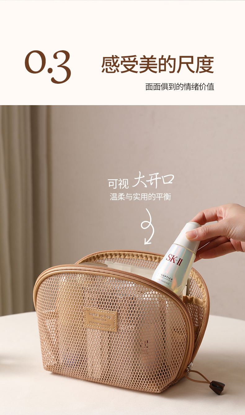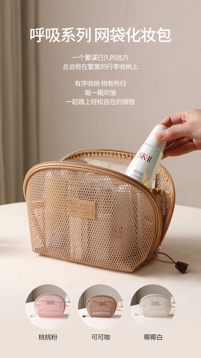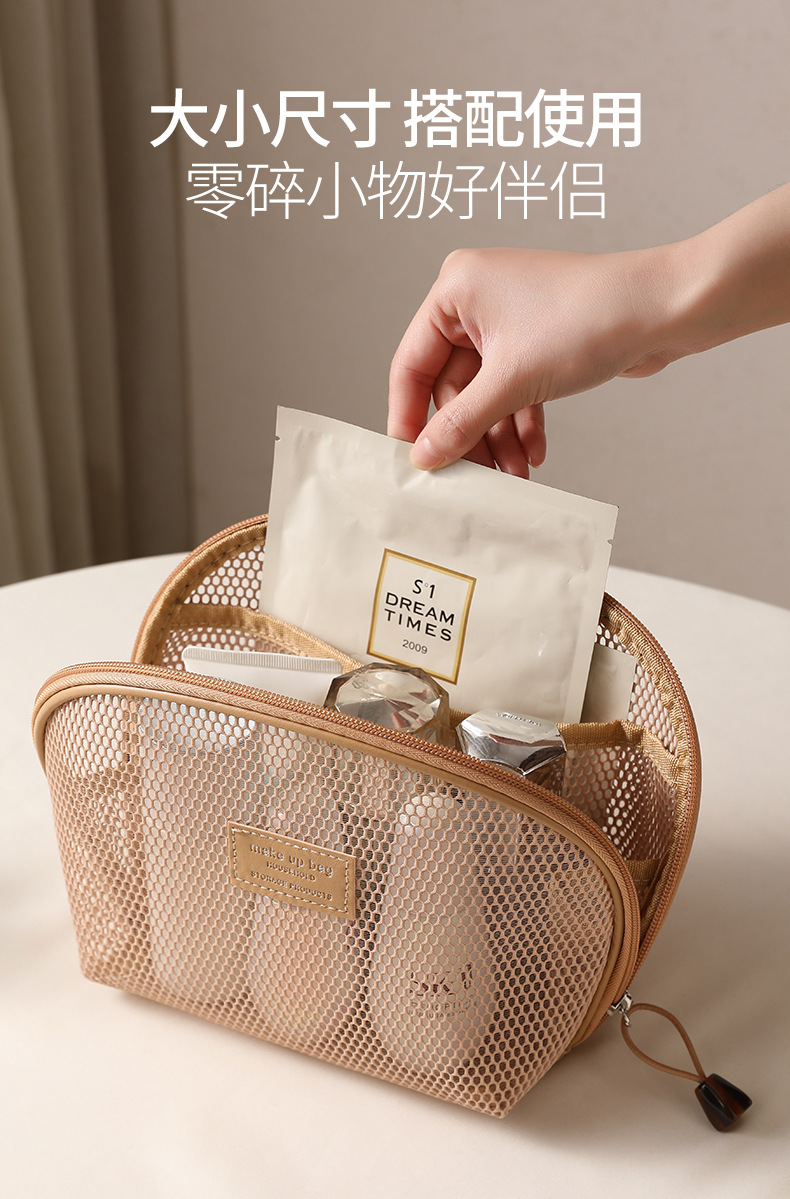 화장품 가방 여성용 메쉬 휴대용 2025 새로운 여행 메이크업 가방 세면 용품 화장품 작은 립스틱 보관 가방스토어 가기