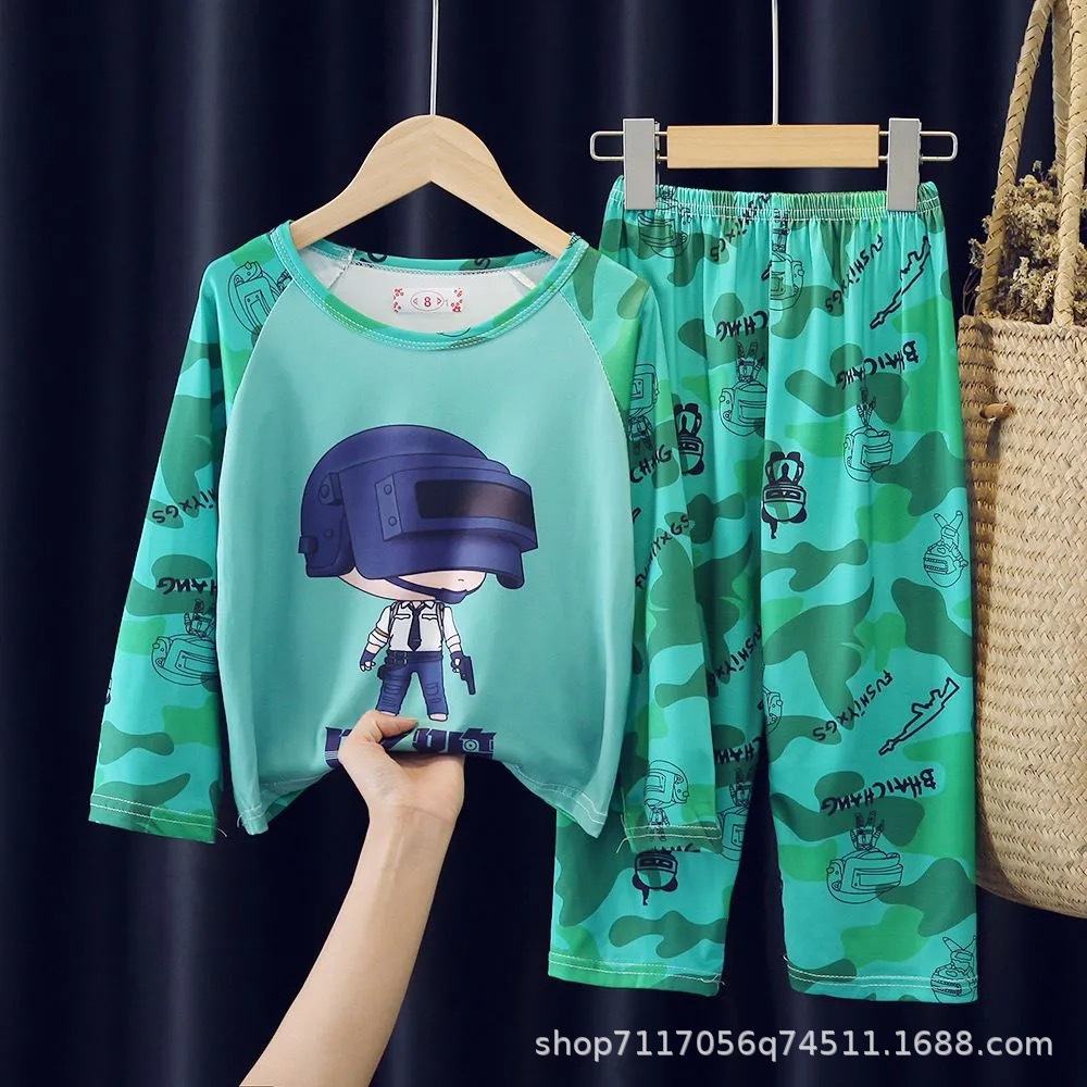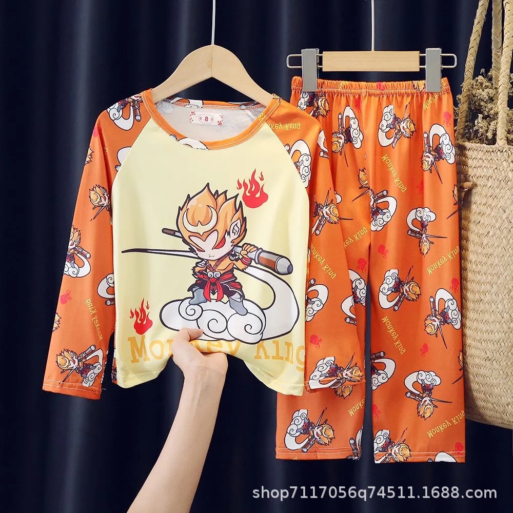 봄, 가을 아동 잠옷, 긴팔, 남아, 여아, 아기, 만화 캐릭터, 어린이, 남자아이, 홈웨어 세트, 귀여운 스타일