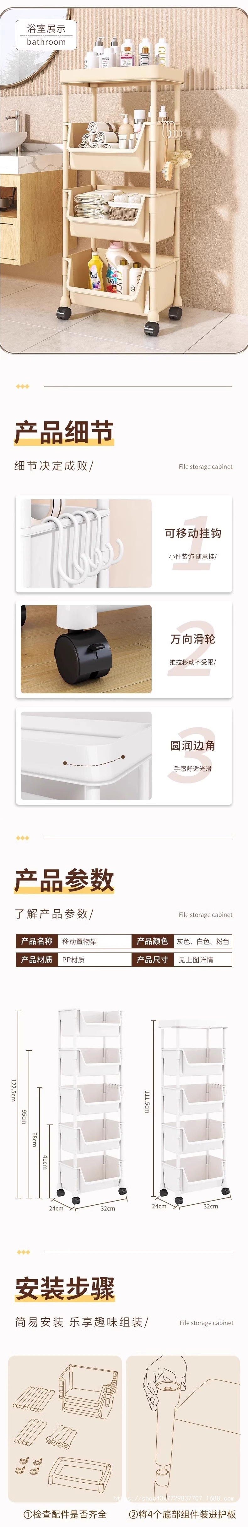 트롤리 스토리지 랙 바닥 주방 욕실 모바일 간식 화장실 다층 침대 스토리지 랙 배치
