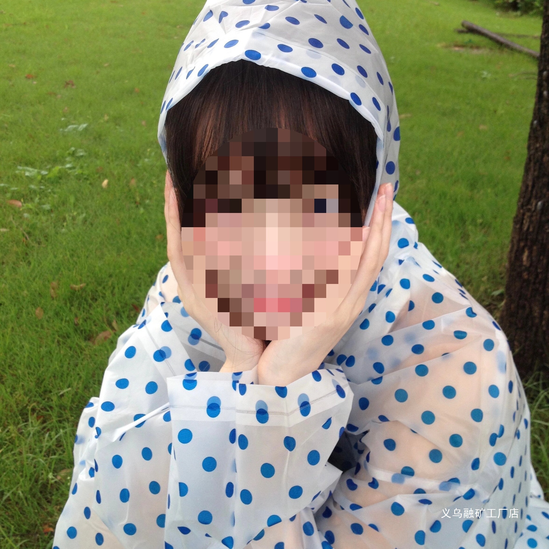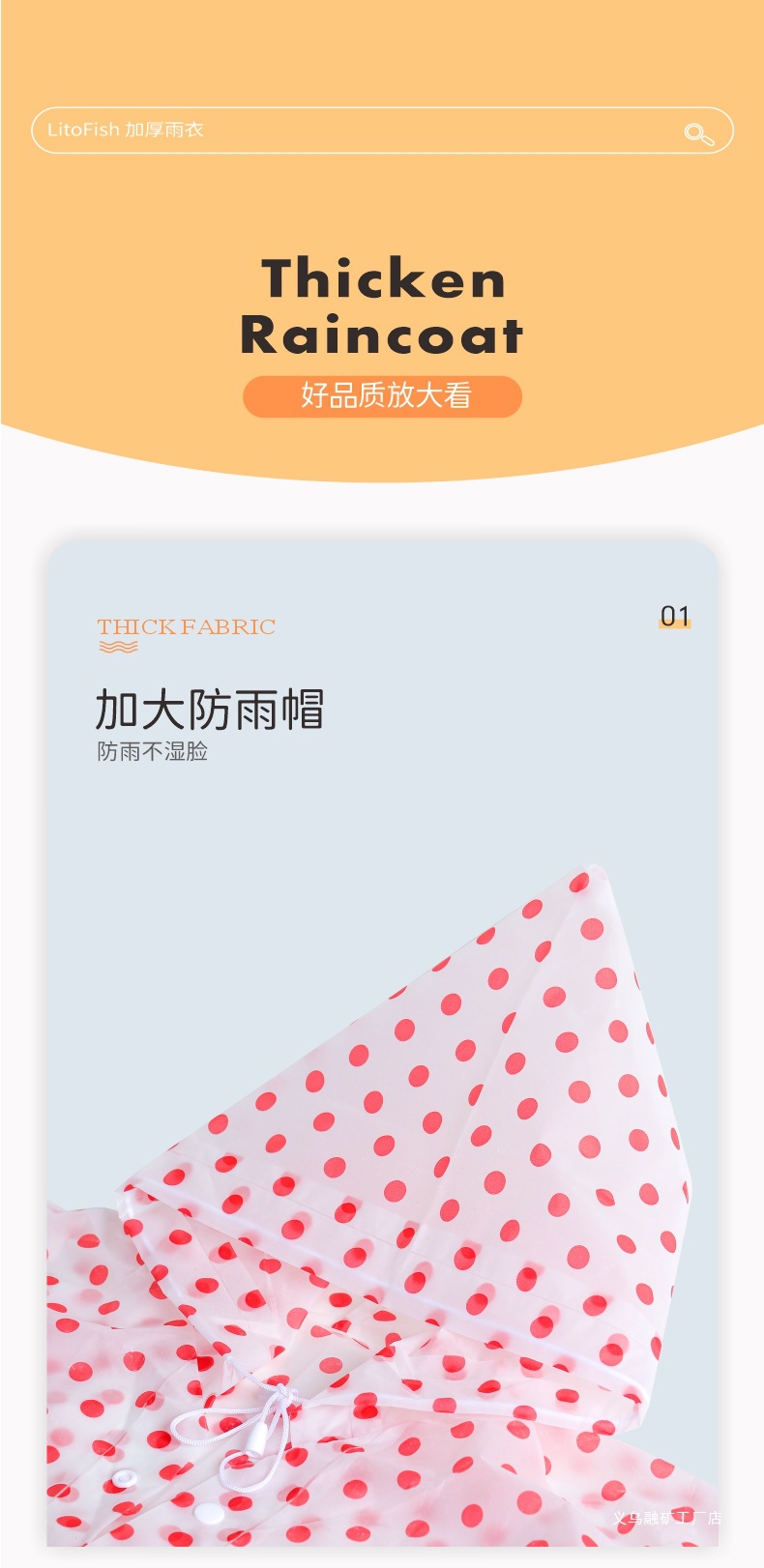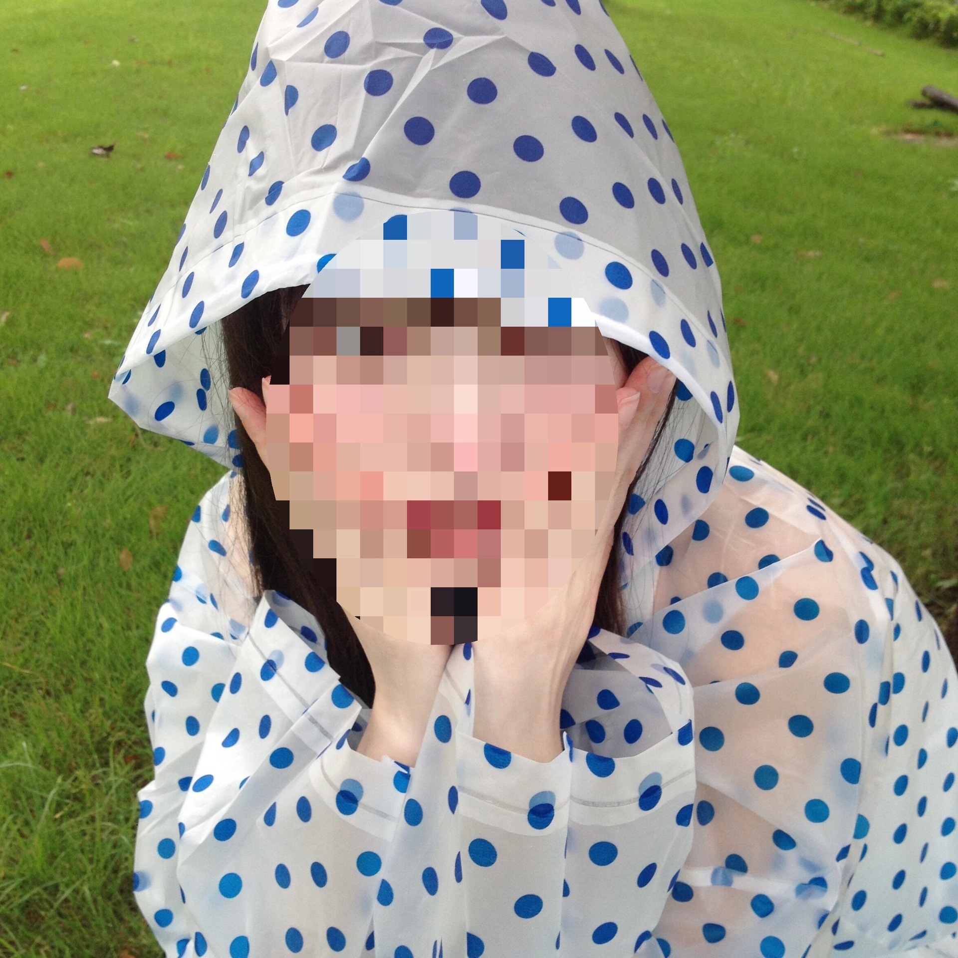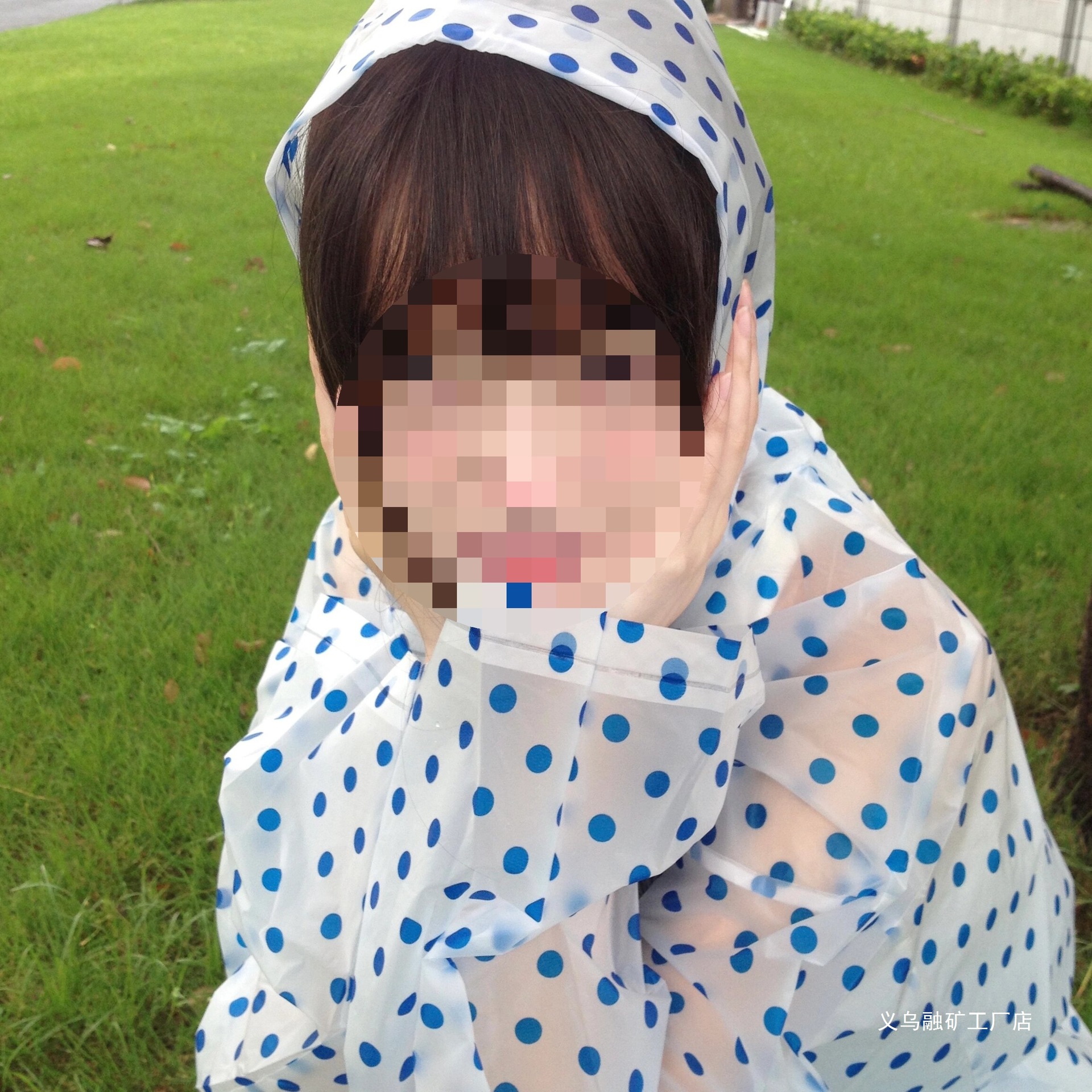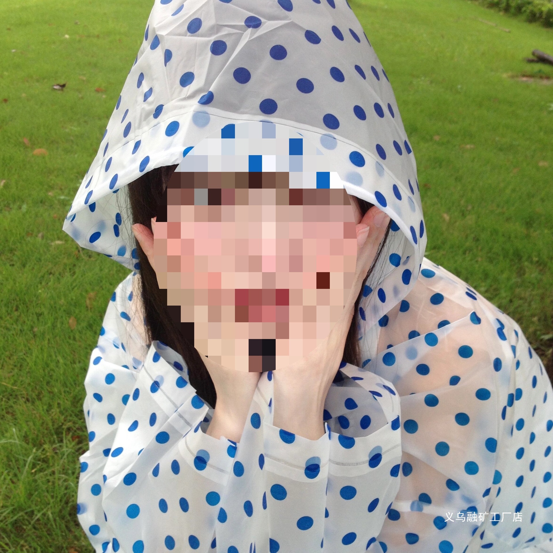 • [성인스타일-고급두꺼워짐] 블루 도트무늬 레인코트 (150-188cm)