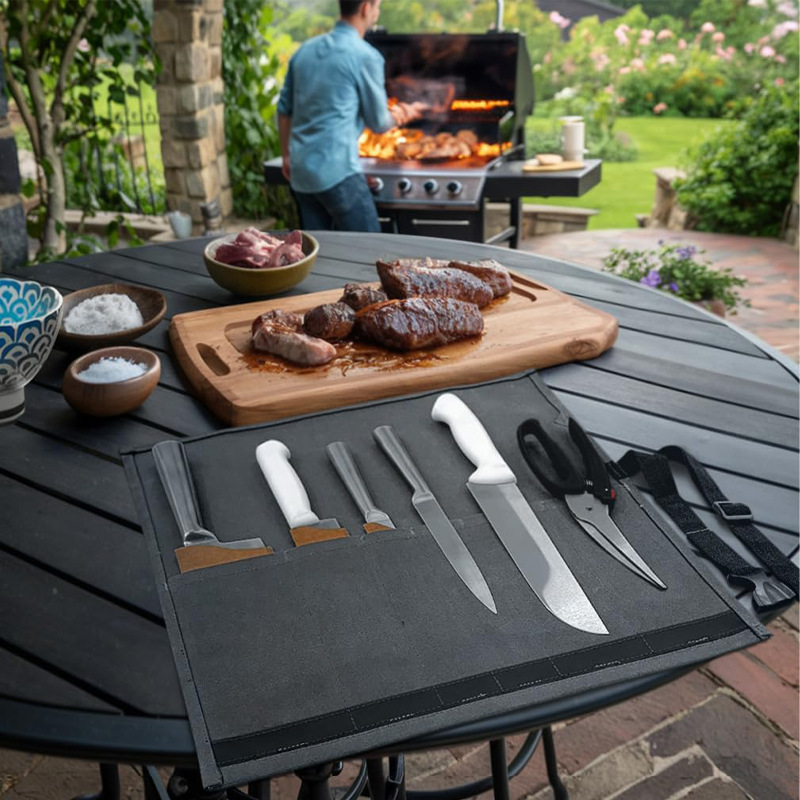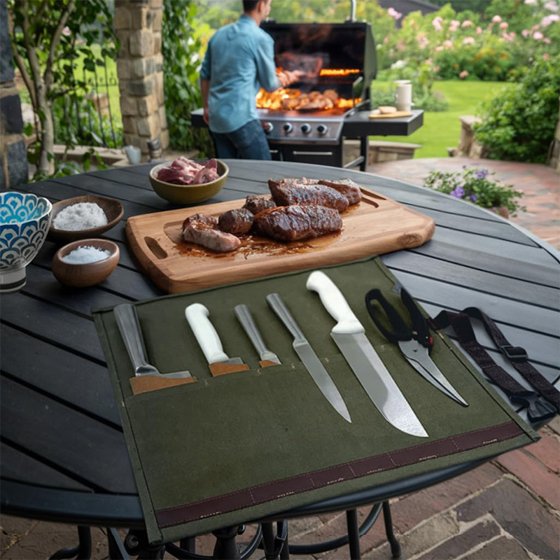 칼 롤 가방 저장 가방 맞춤형 식기 보호 케이스 휴대용 요리 도구 가방 왁스 캔버스 야외 보관