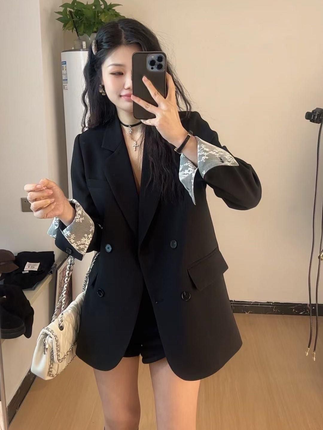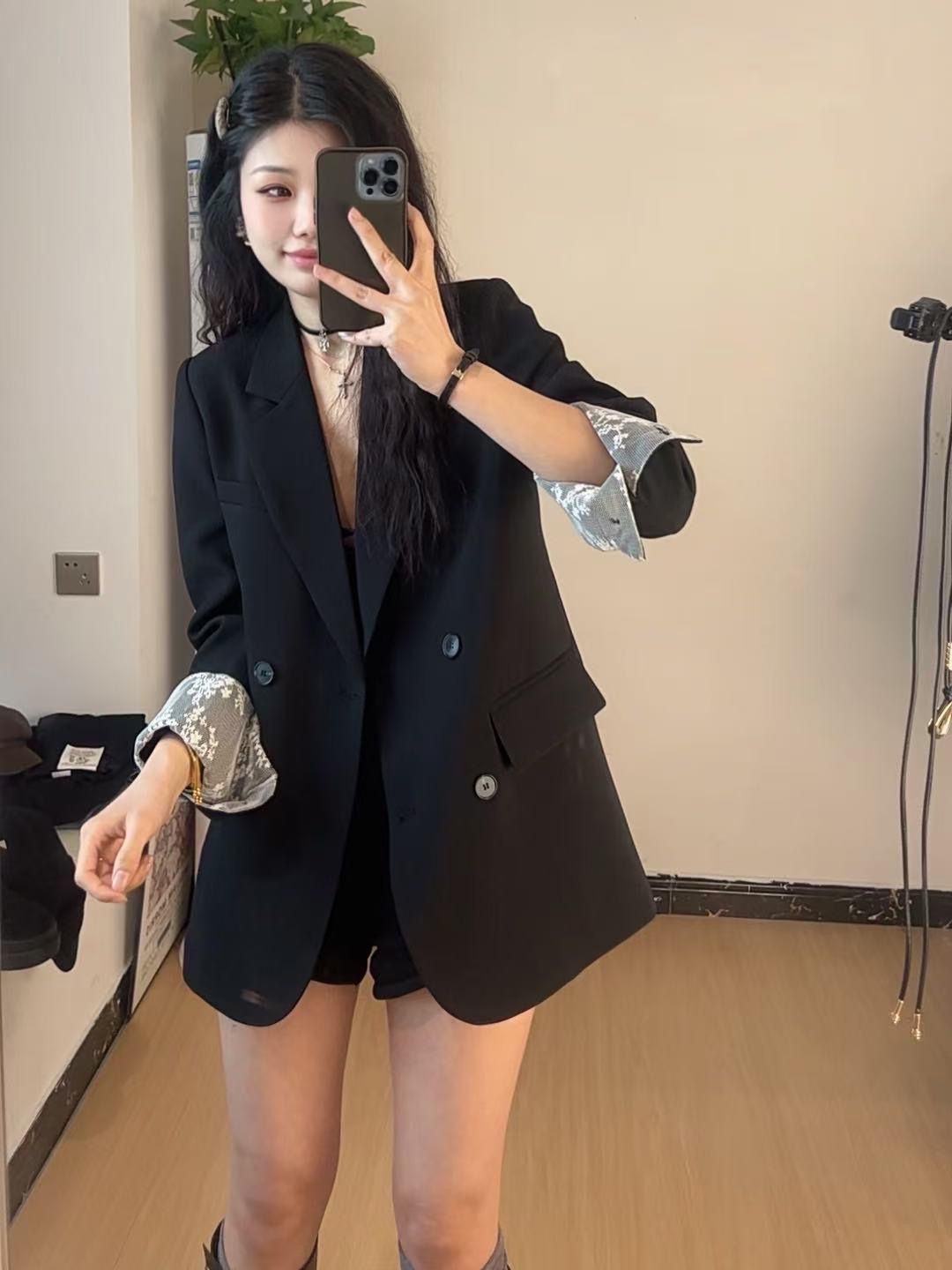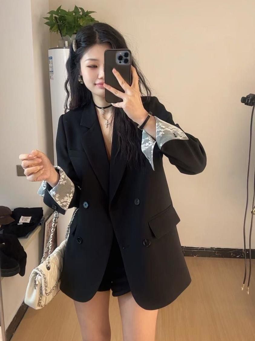 소형 및 짧은 신장을 위한 고급 블레이저 2025 새로운 한국식 루즈 캐주얼 틈새 레이스 스플라이싱 슈트스토어 가기