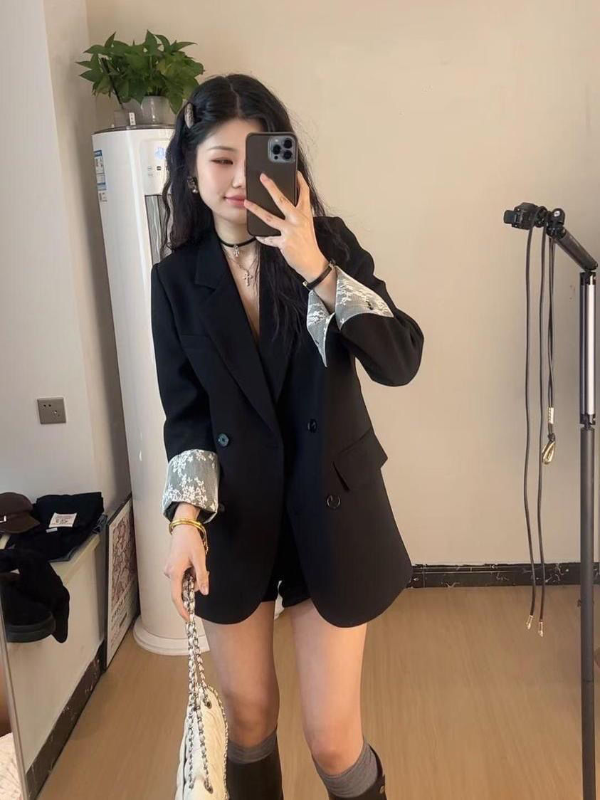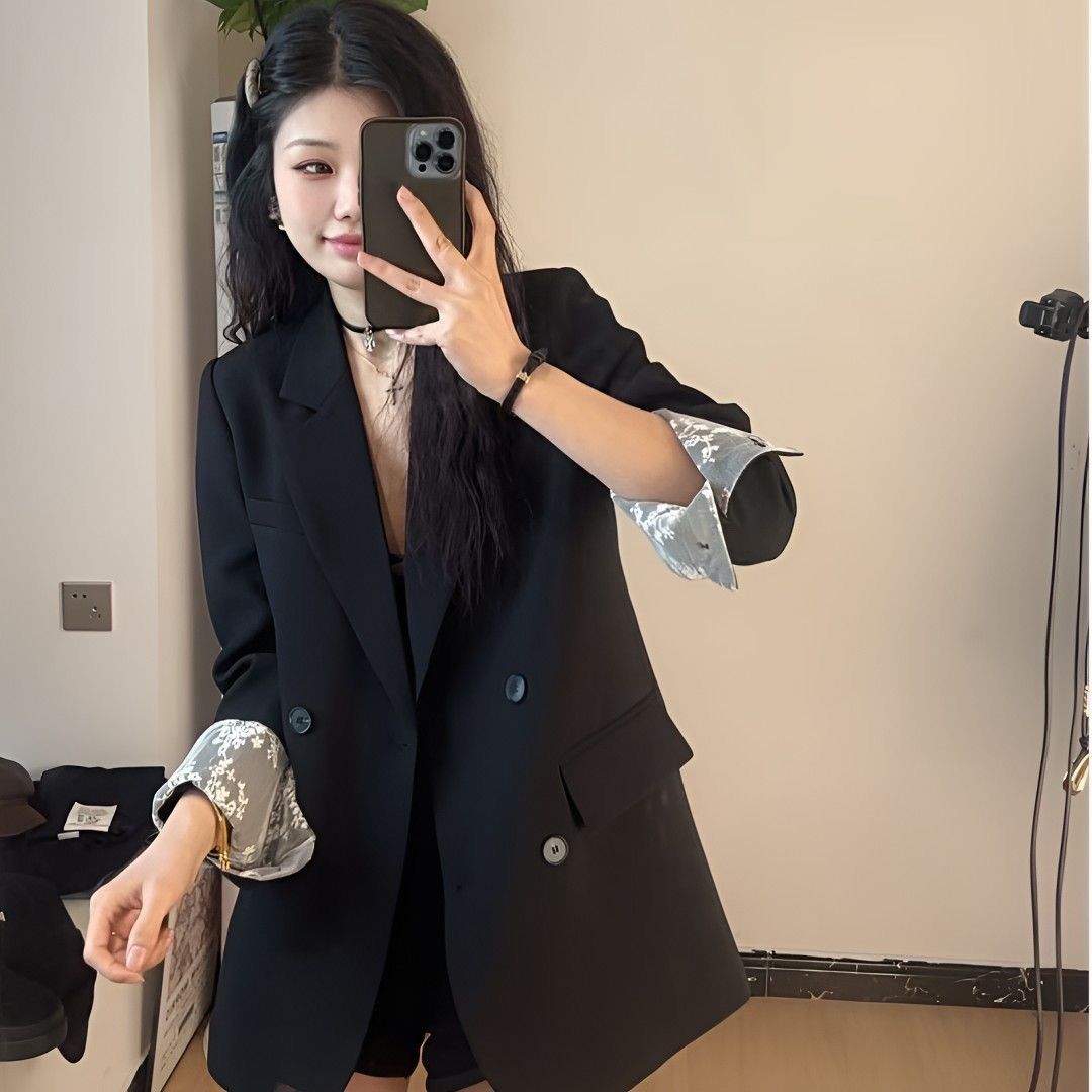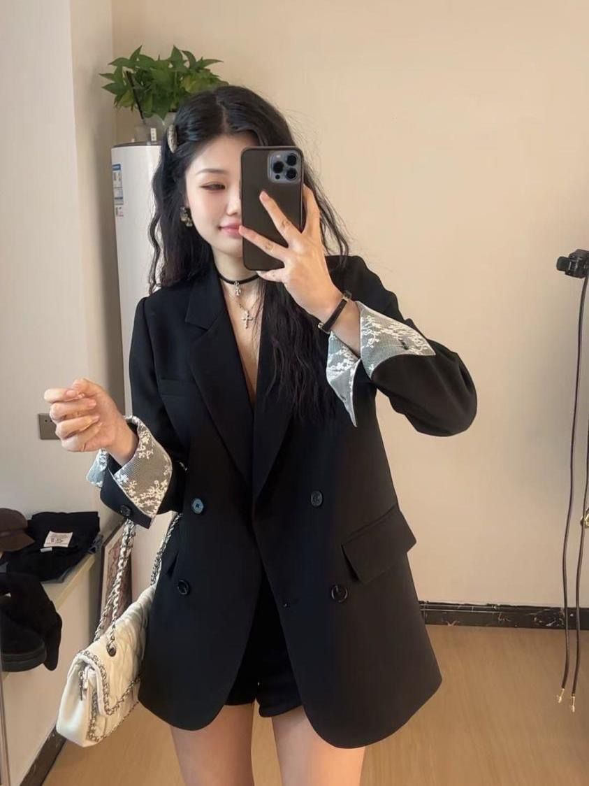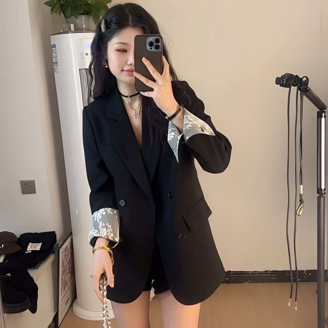 소형 및 짧은 신장을 위한 고급 블레이저 2025 새로운 한국식 루즈 캐주얼 틈새 레이스 스플라이싱 슈트스토어 가기