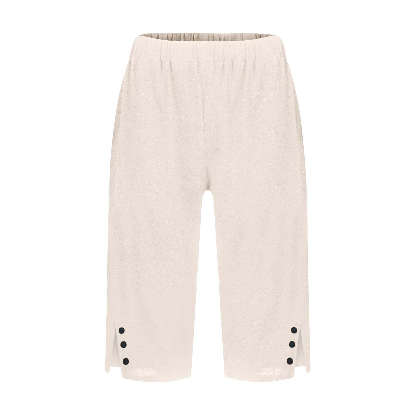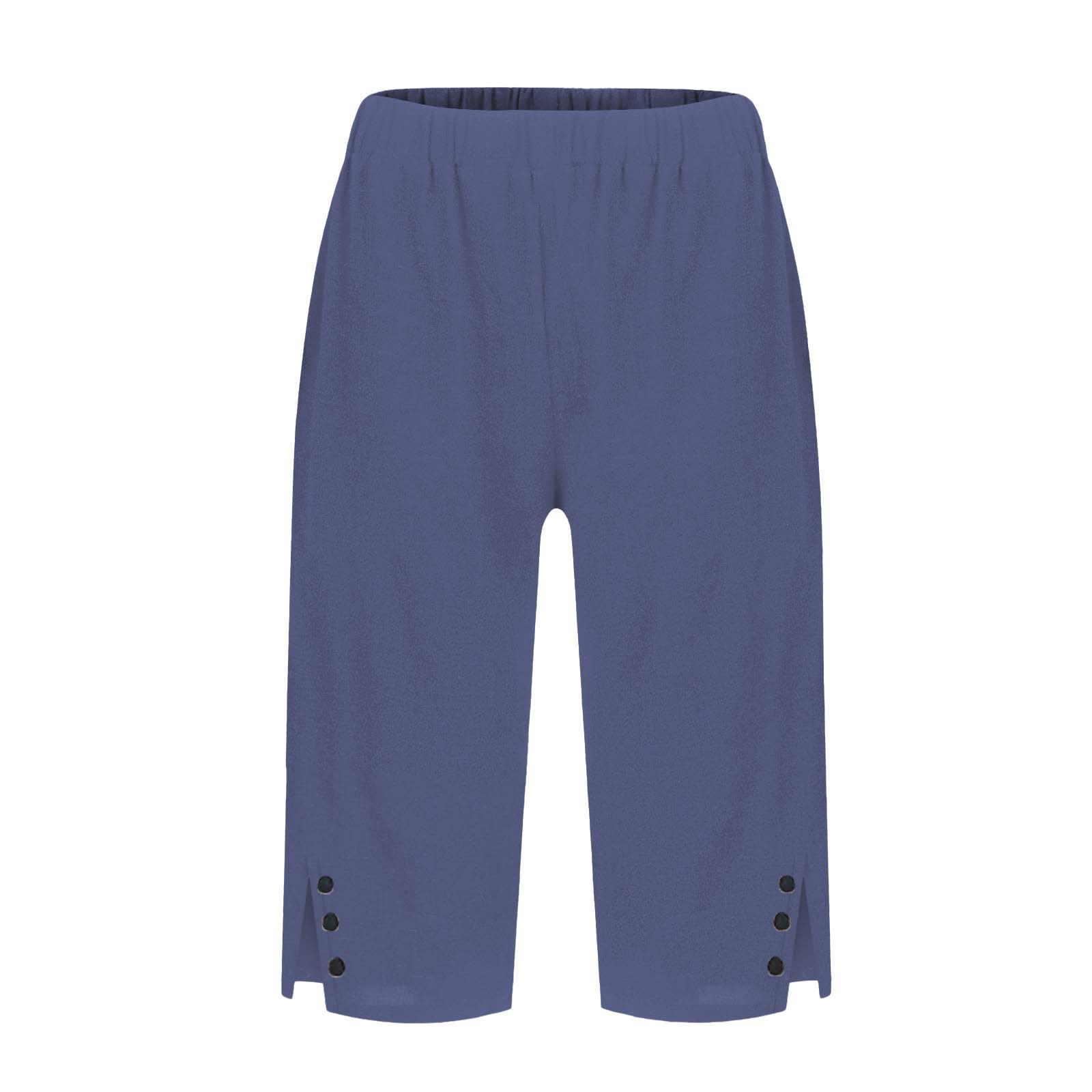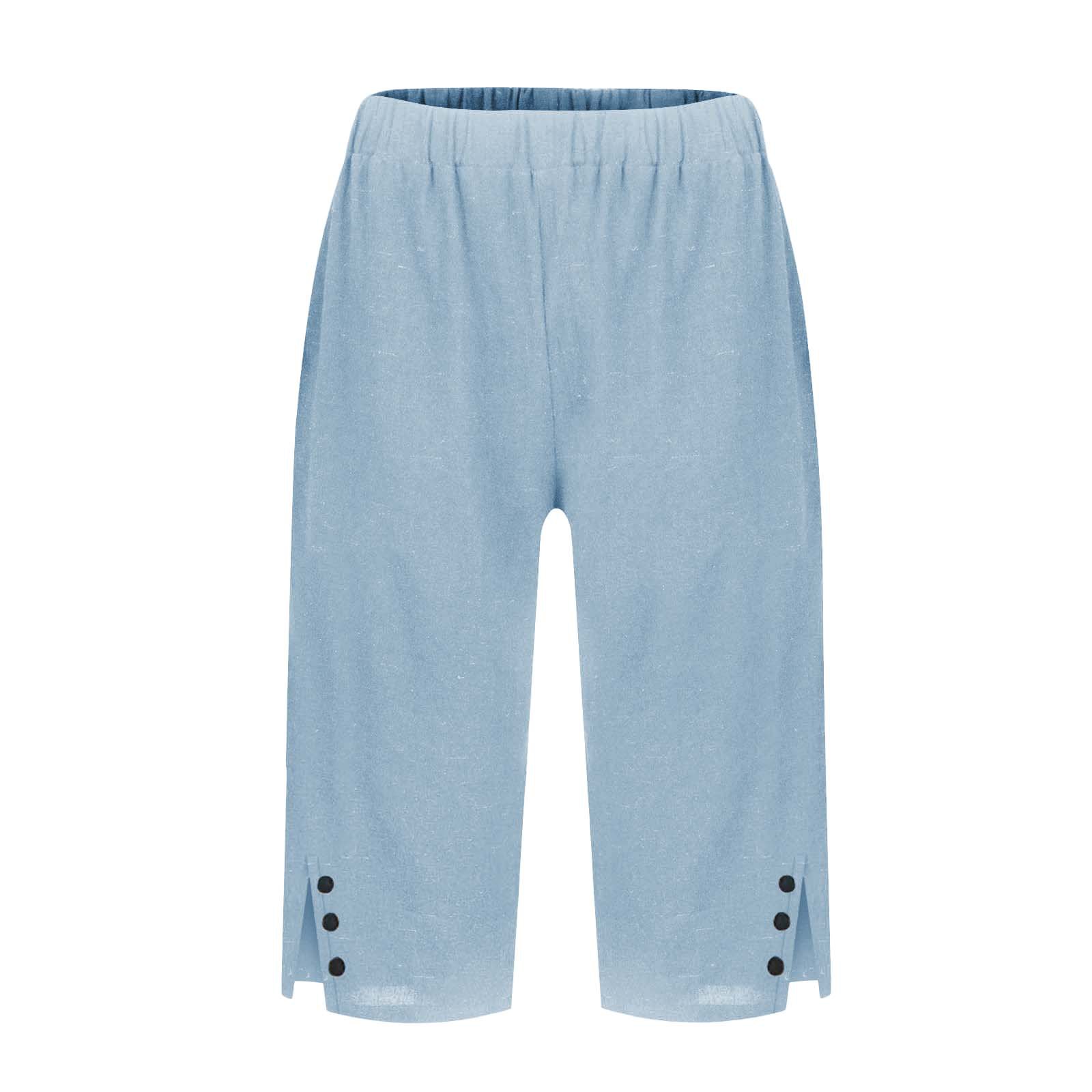 2024 유럽과 미국 아마존 국경 새로운 여성 캐주얼 느슨한 포켓면과 린넨 탄성 캐주얼 바지 반바지스토어 가기