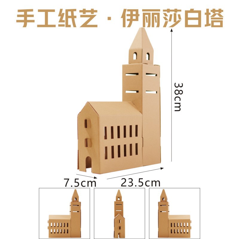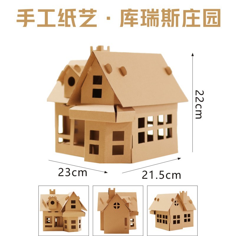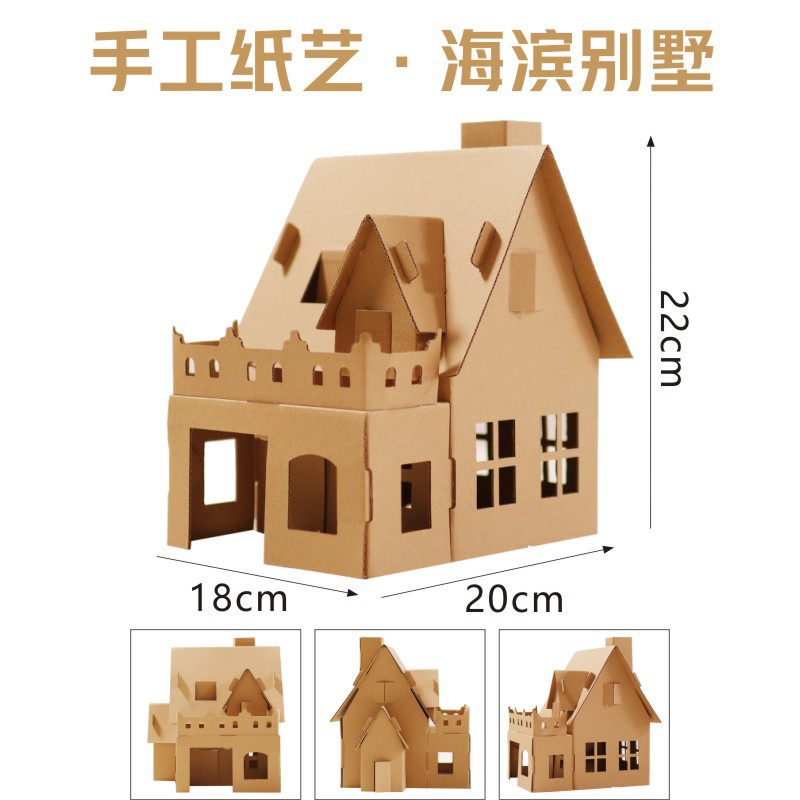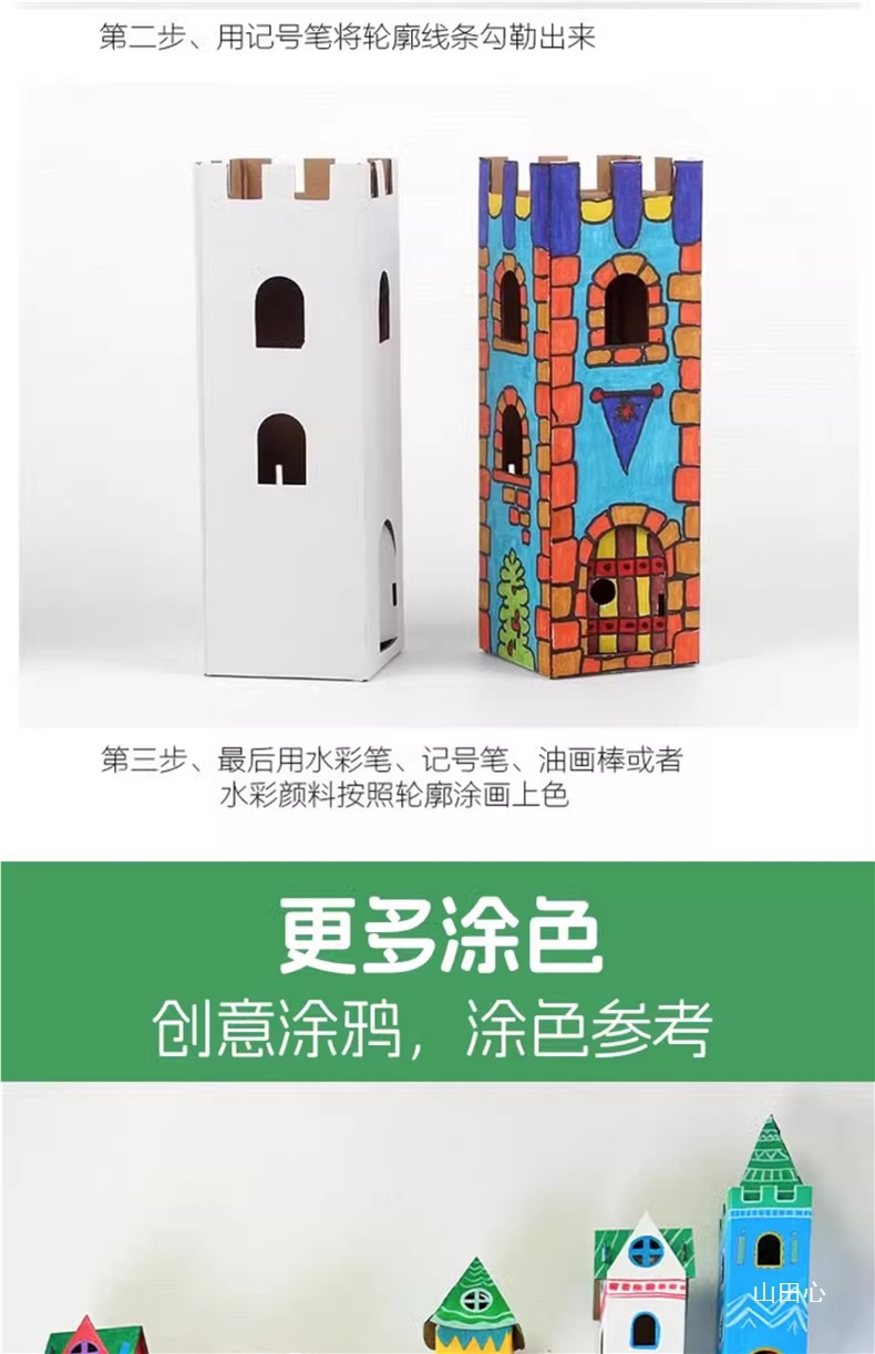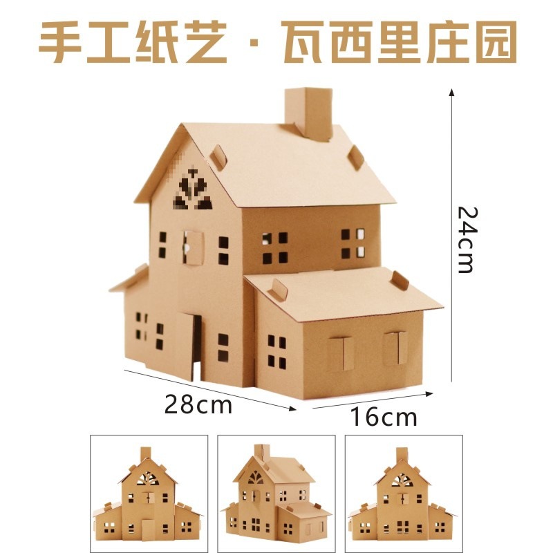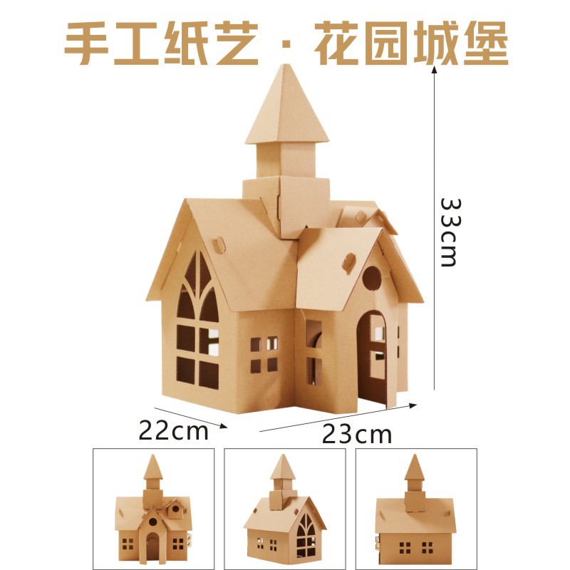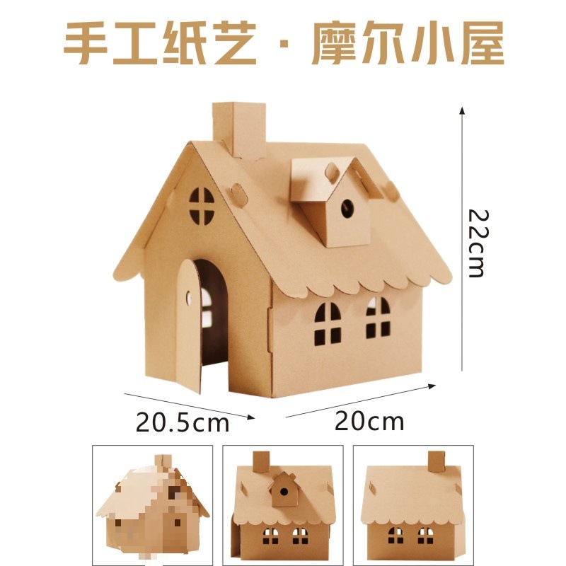 유치원 어린이 수제 diy 흰색 종이 상자 성 색칠 크리 에이 티브 페인트 골판지 작은 집 부모-자식 장난감스토어 가기