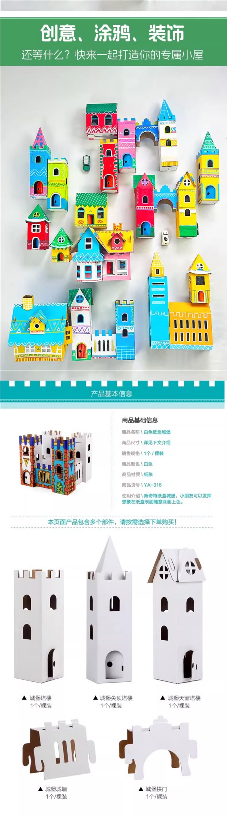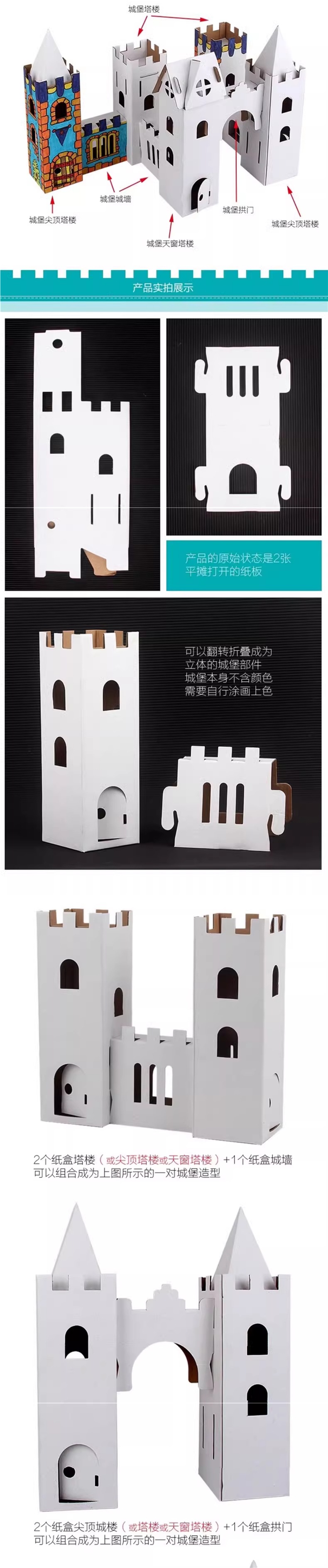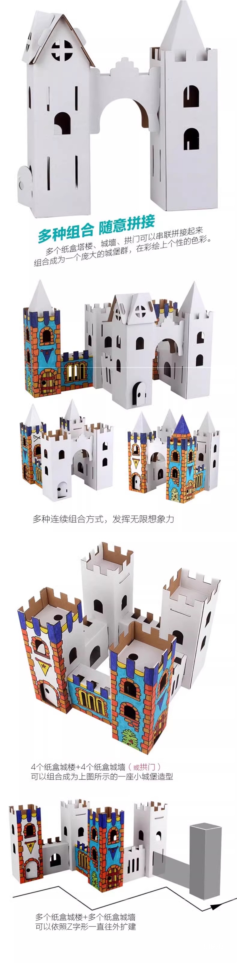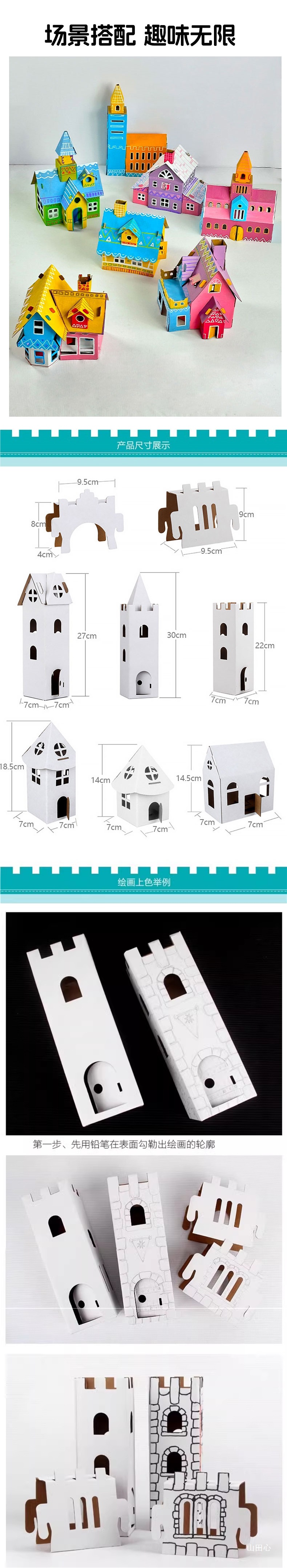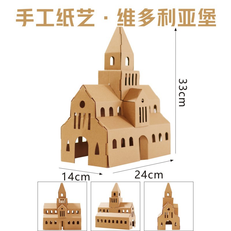 유치원 어린이 수제 diy 흰색 종이 상자 성 색칠 크리 에이 티브 페인트 골판지 작은 집 부모-자식 장난감스토어 가기
