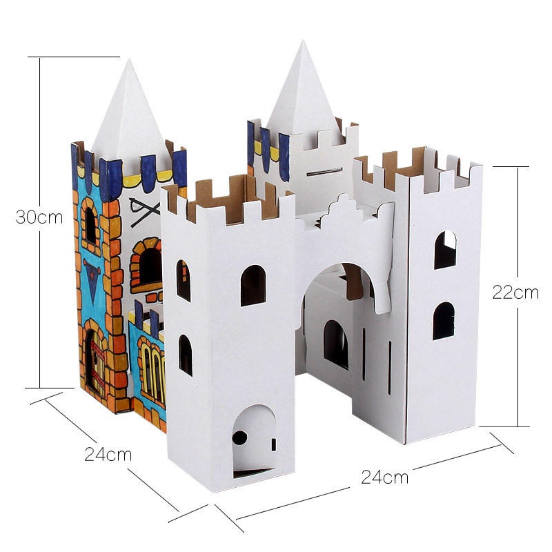 유치원 어린이 수제 diy 흰색 종이 상자 성 색칠 크리 에이 티브 페인트 골판지 작은 집 부모-자식 장난감