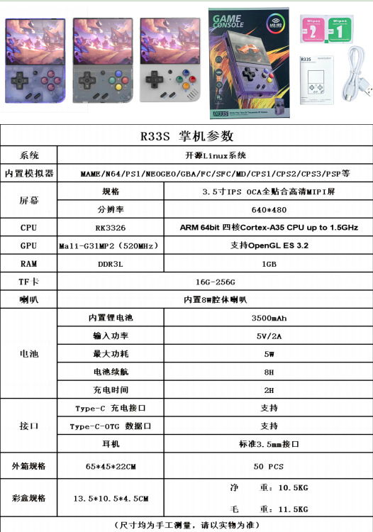 오픈 소스 휴대용 게임기 R33S, 휴대용 레트로 아케이드 게임, 향수를 불러일으키는 3D 듀얼 시스템 휴대용 게임기, 해외 판매