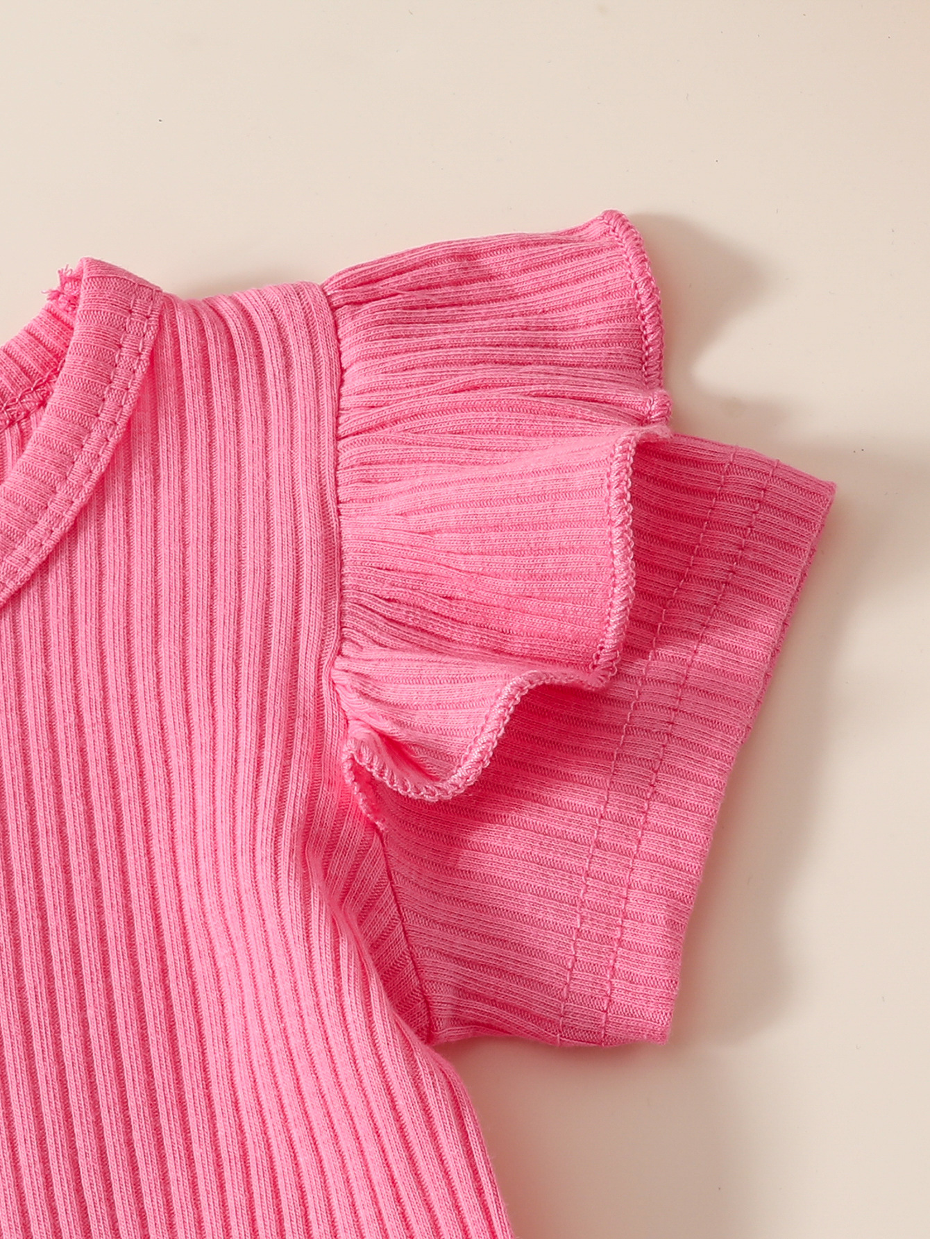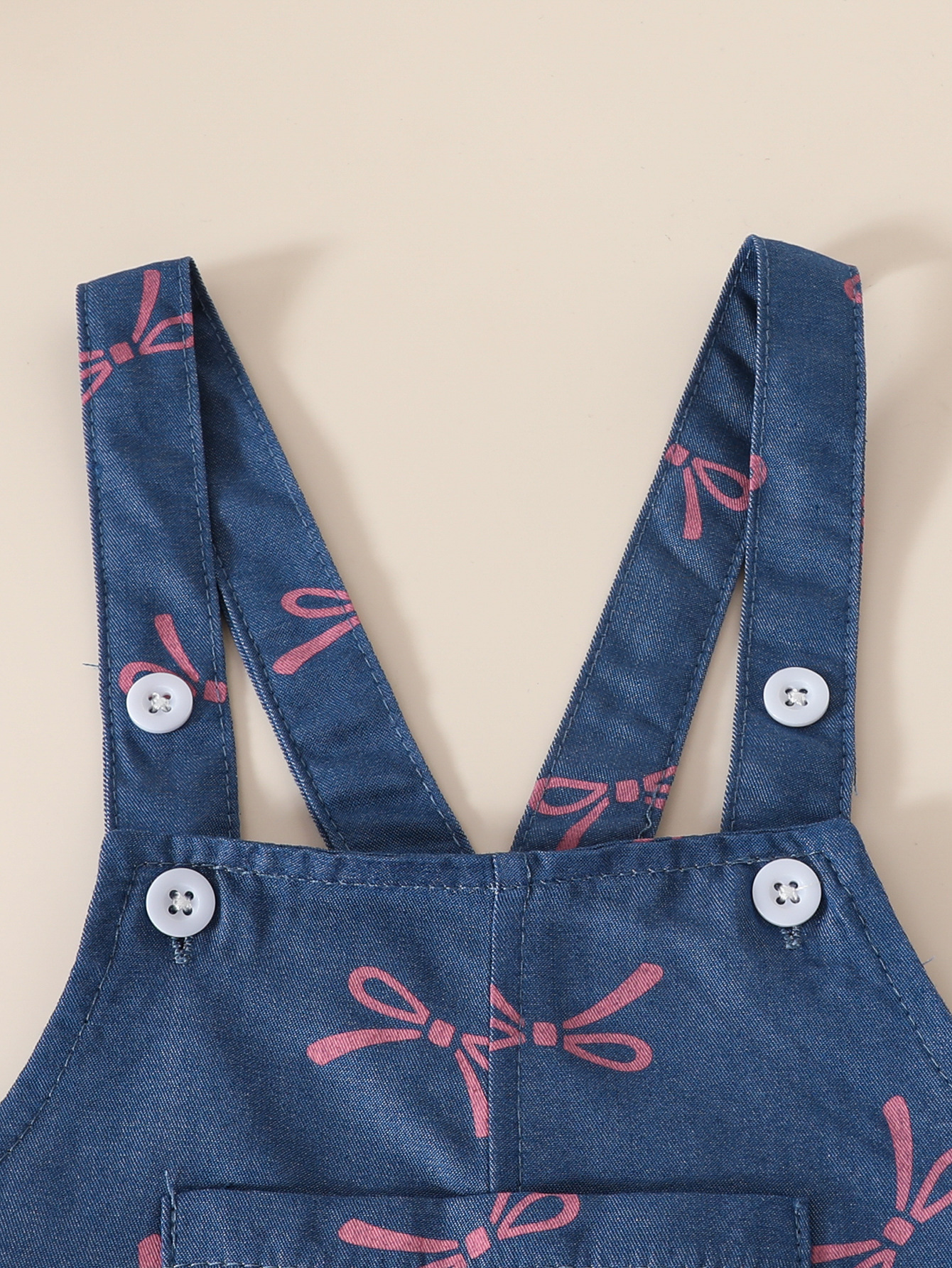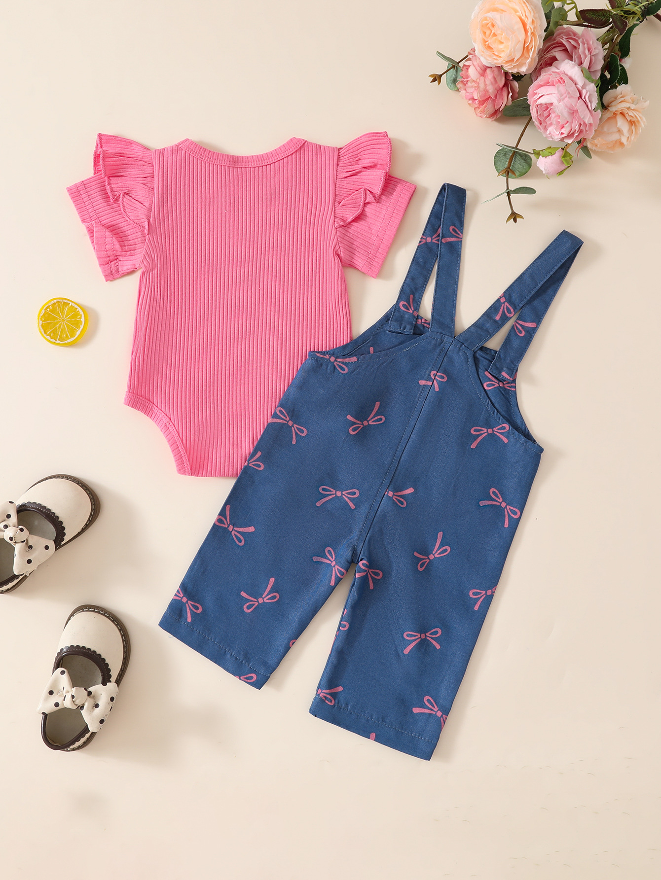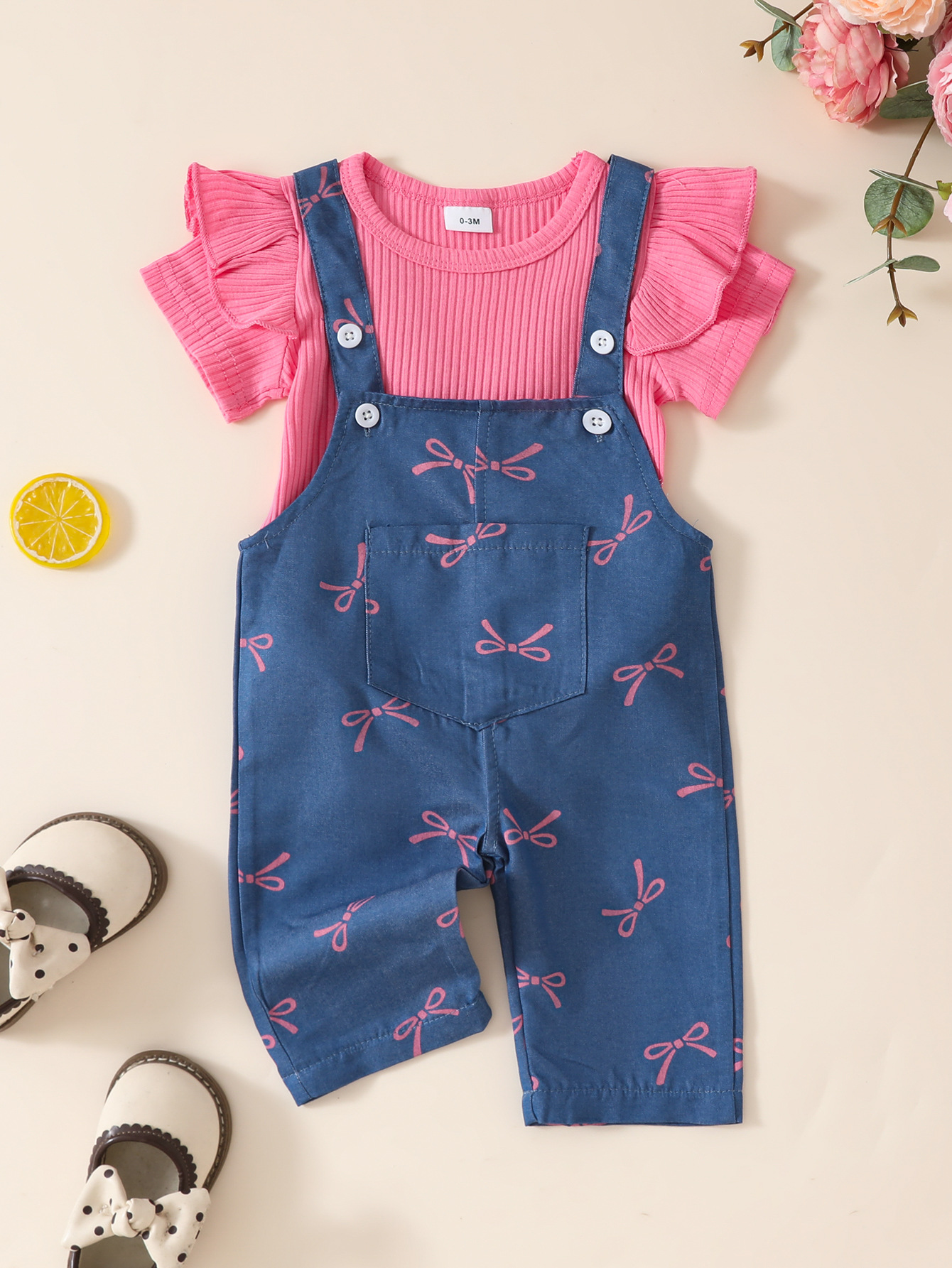 유아 여아 봄 여름 솔리드 컬러 반팔 탑 + 모조 데님 점프 슈트 바느질 프린트 슈트스토어 가기