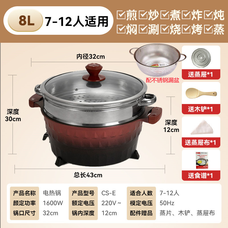 • 8L 대용량에는 찜기 + 배수통 + 찜기 * (7~12인, 다기능/장작밥)이 함께 제공됩니다.