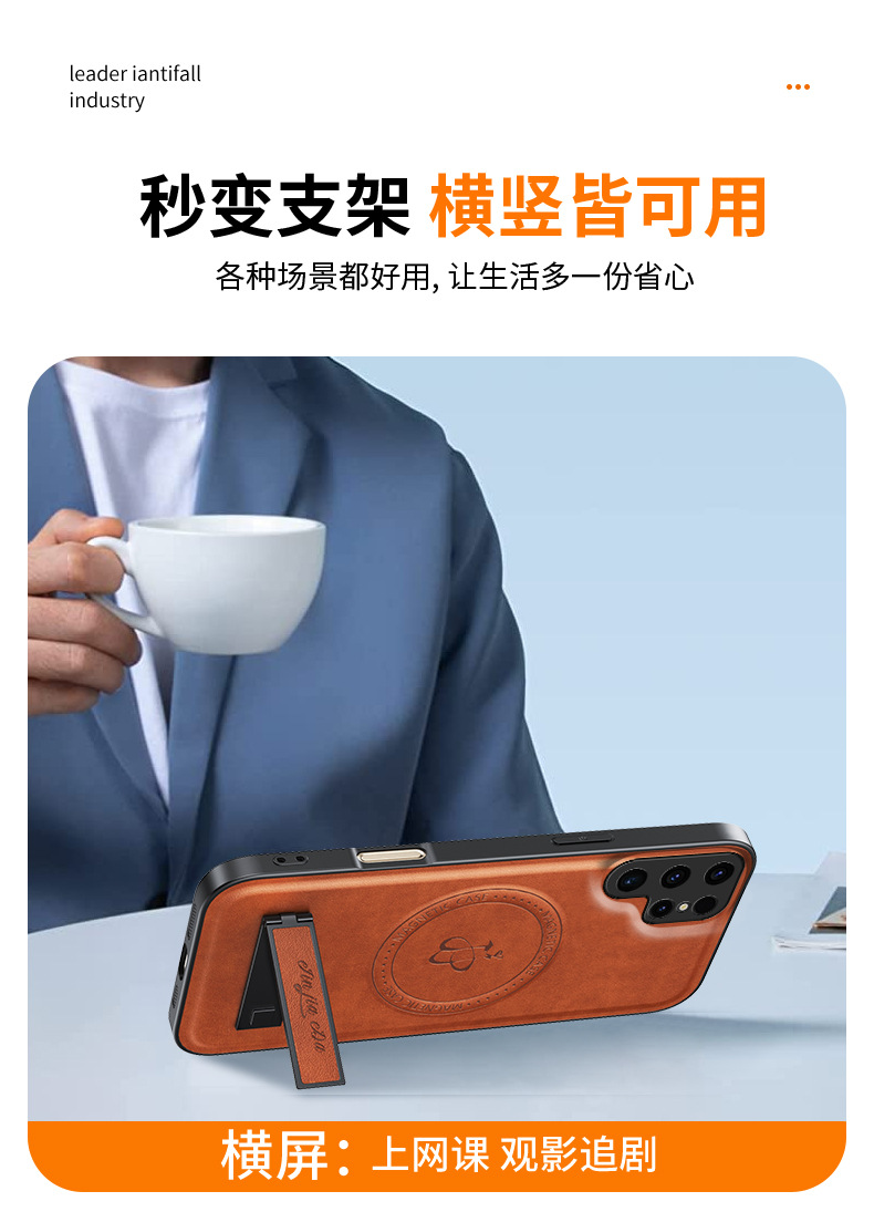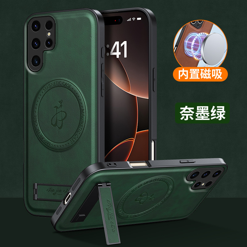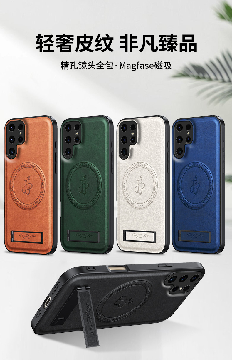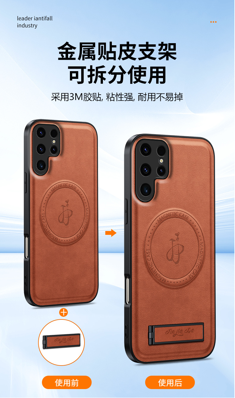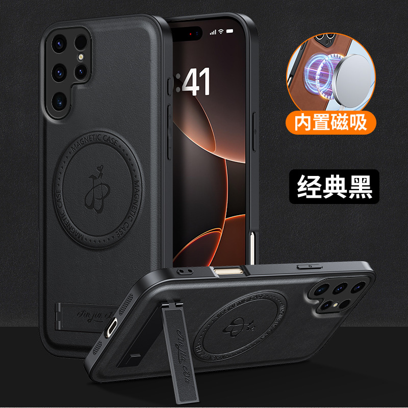 삼성 S26Ultra 휴대폰 케이스 A37 자석 가죽 질감 A56 금속 스탠드 S25FE 보호 케이스에 적합