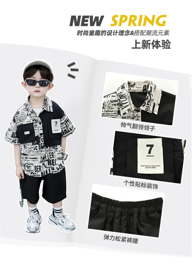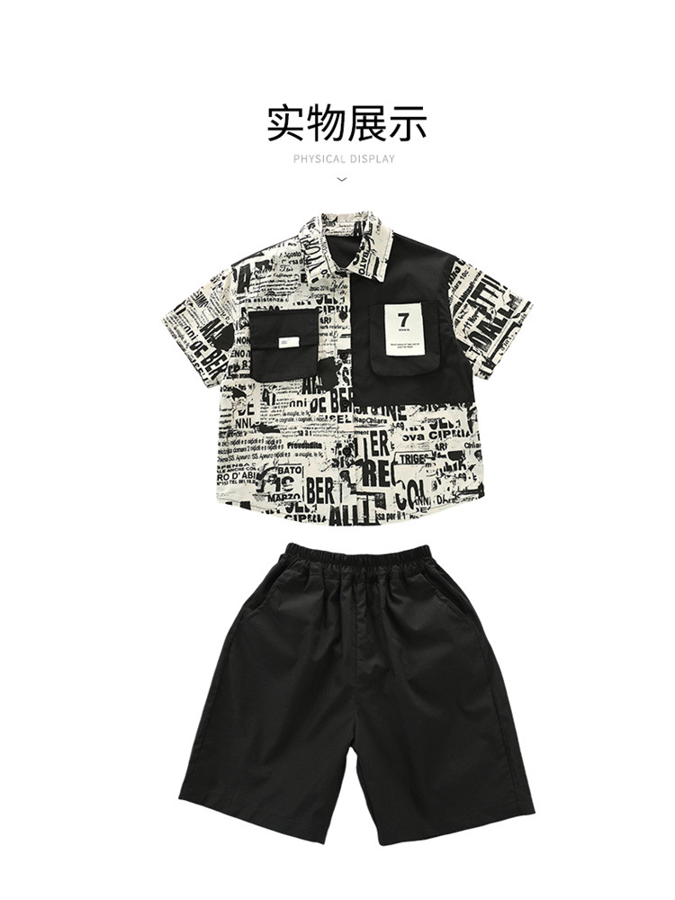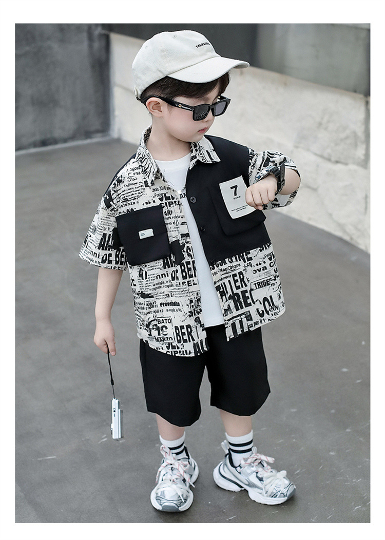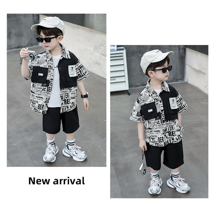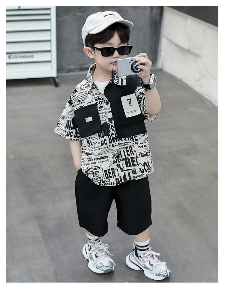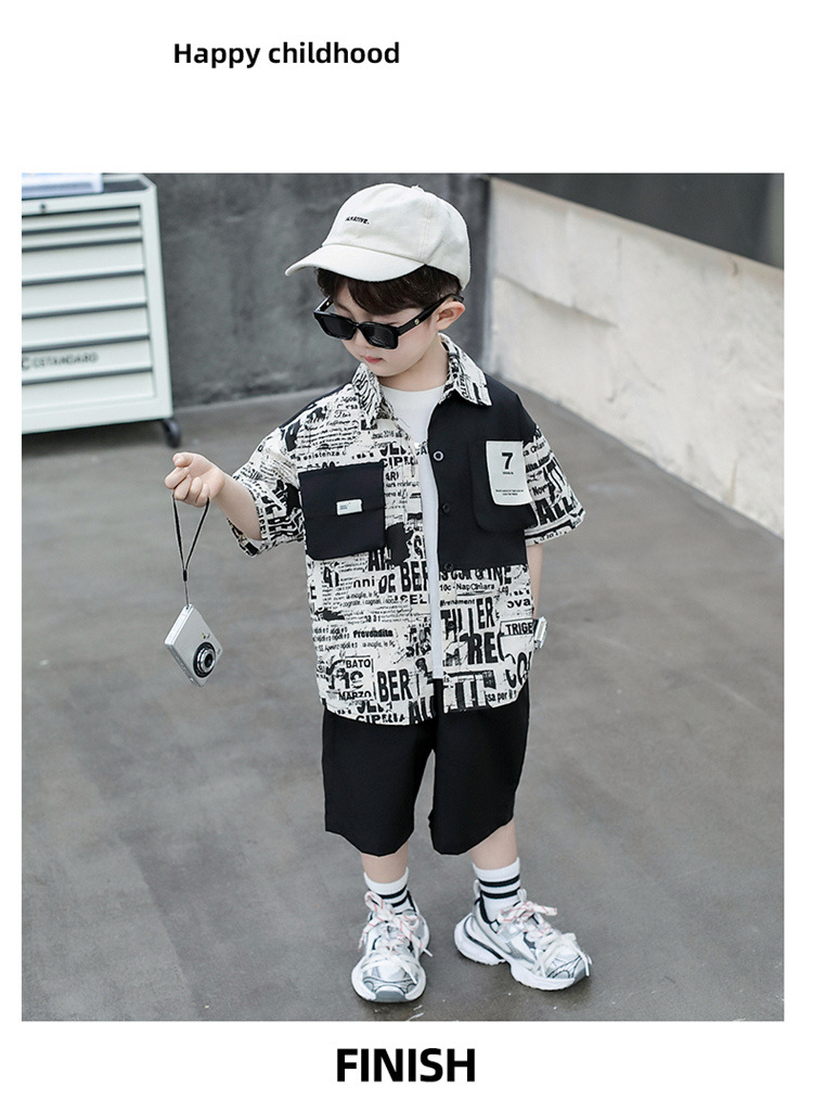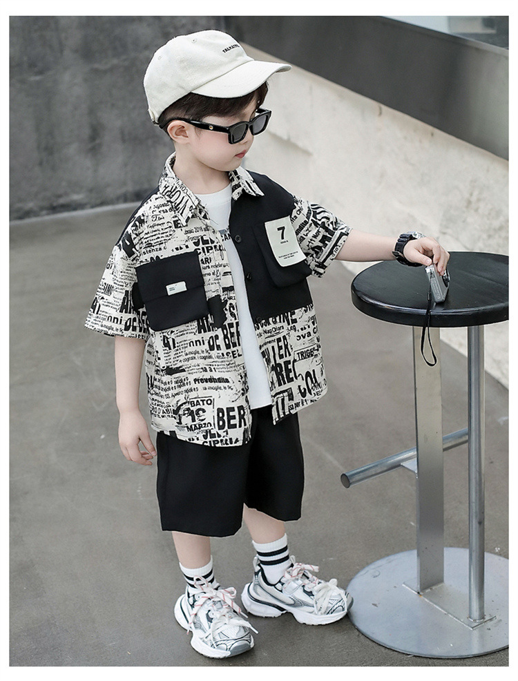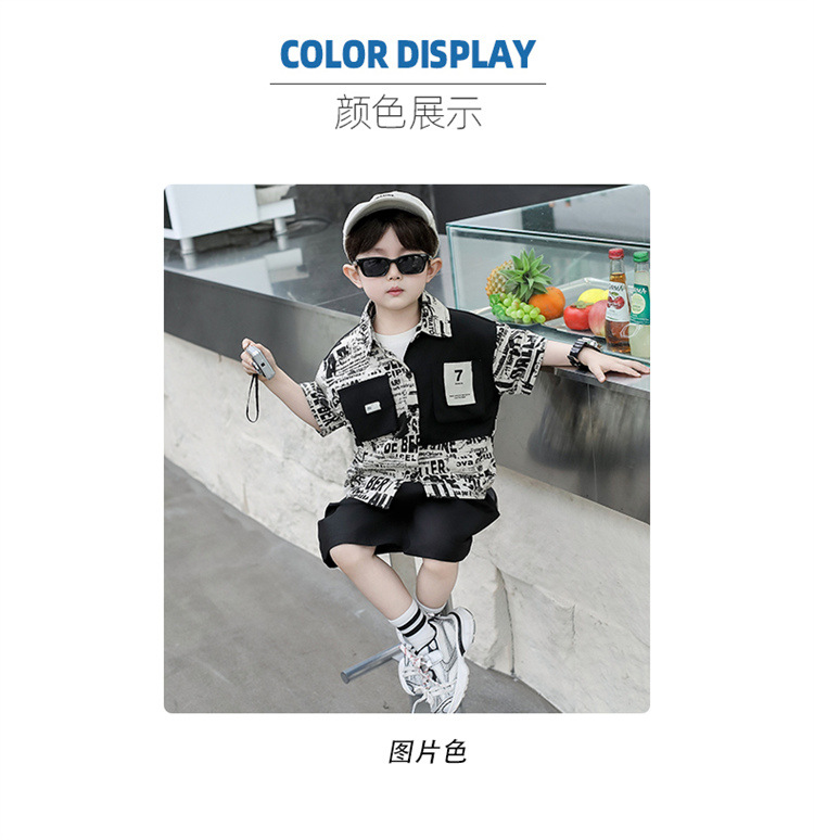 소년 여름 반팔 컬러 셔츠 정장 2025 새로운 스타일 중소 어린이 여름 어린이 바지 소년 투피스 세트스토어 가기
