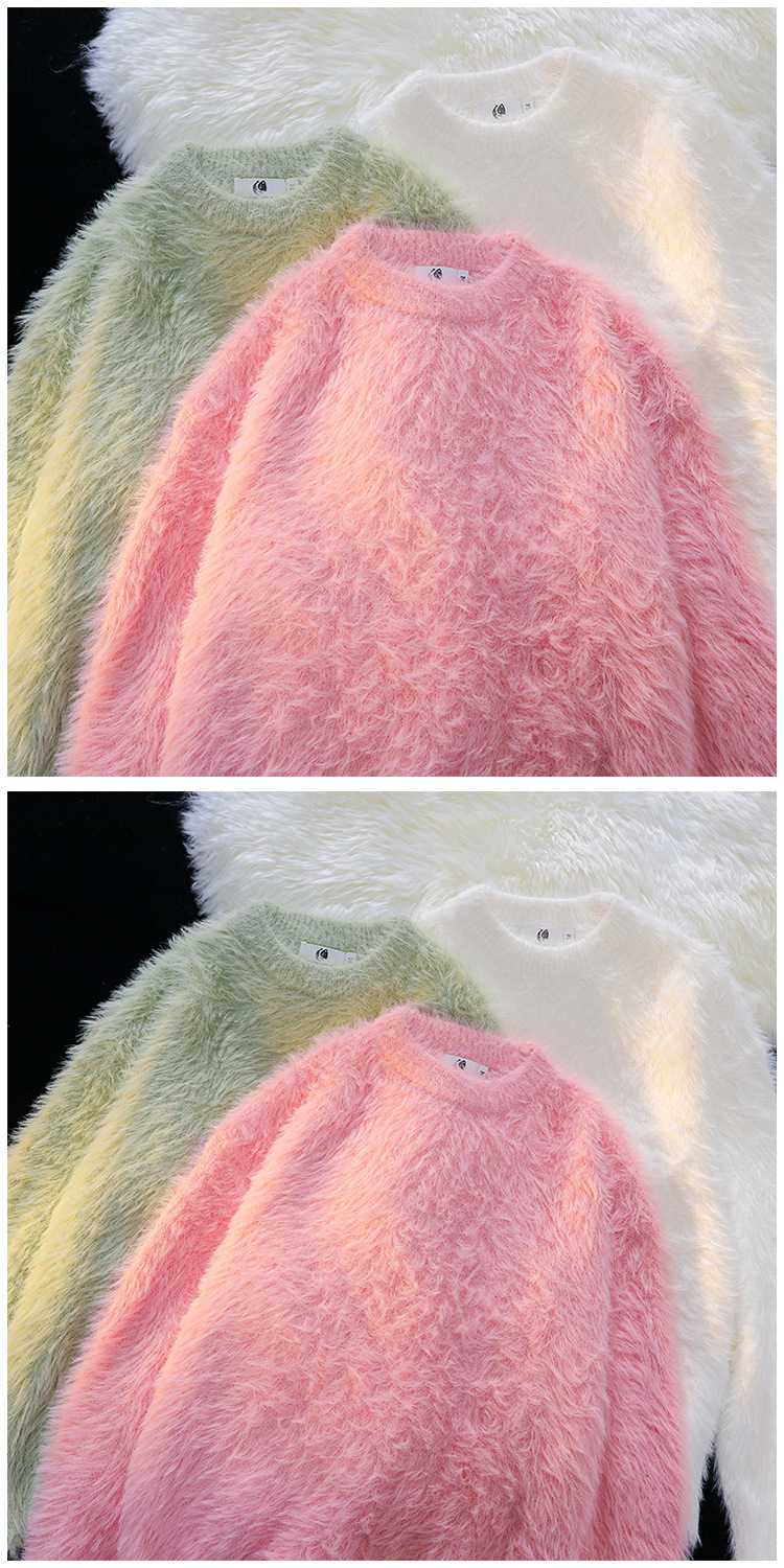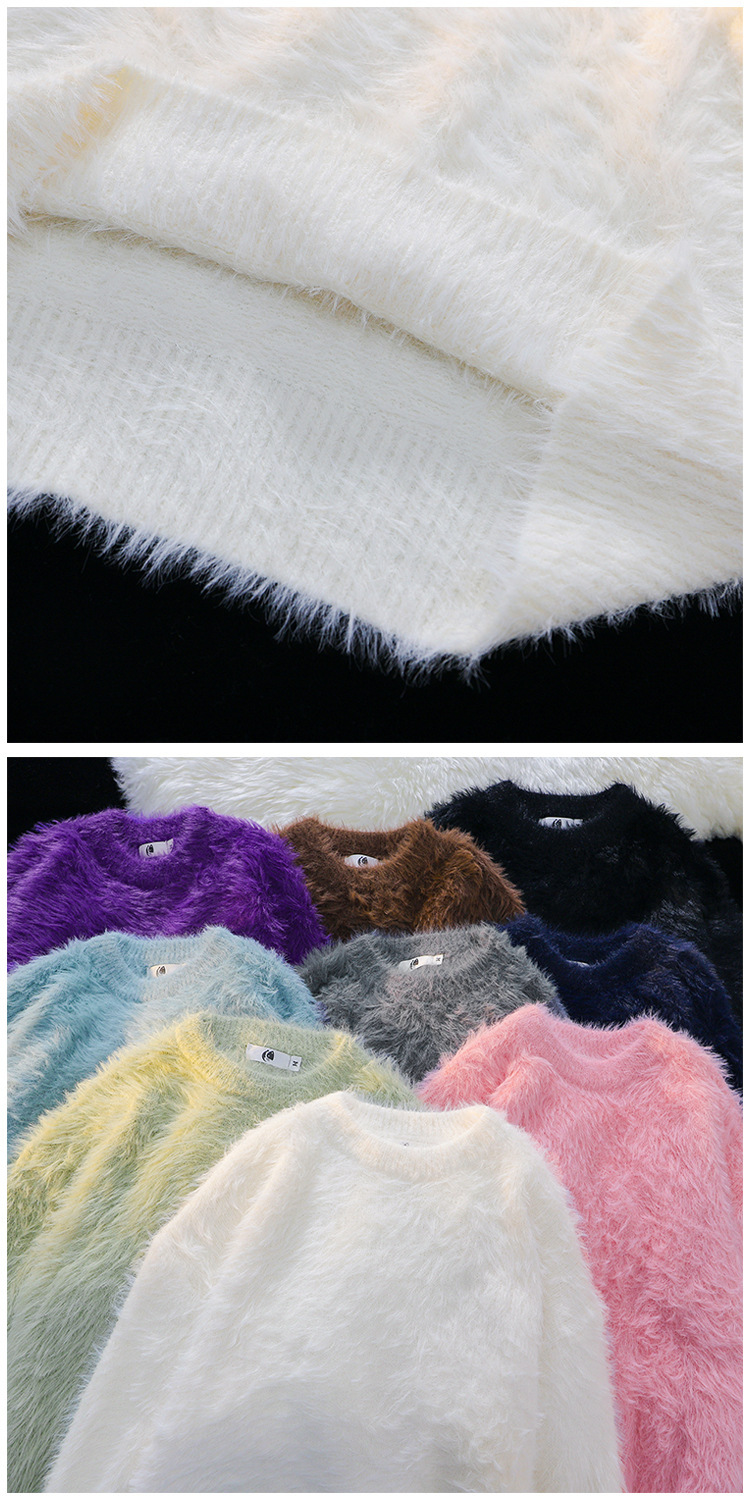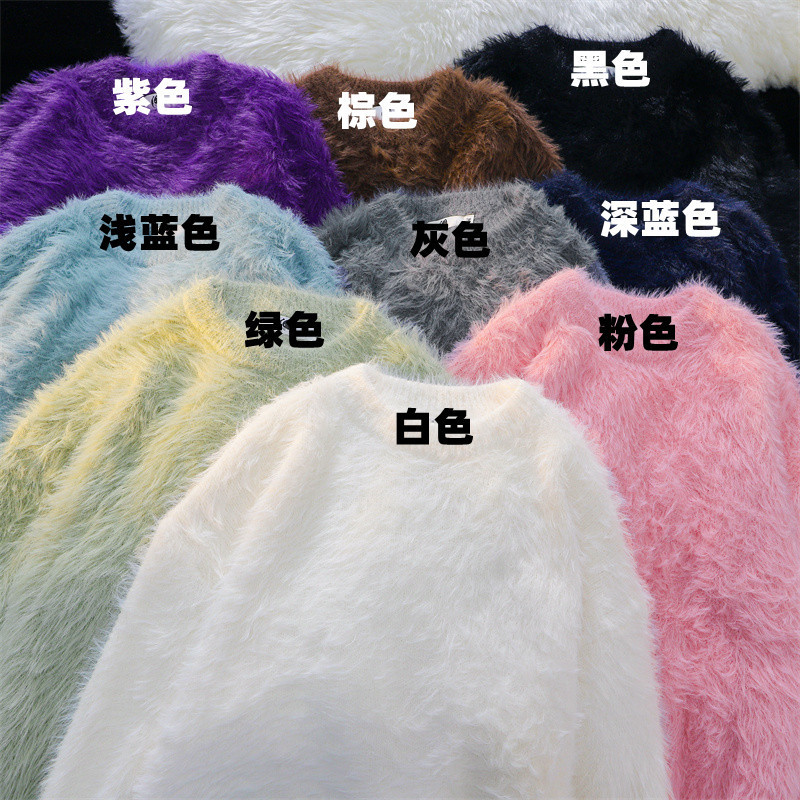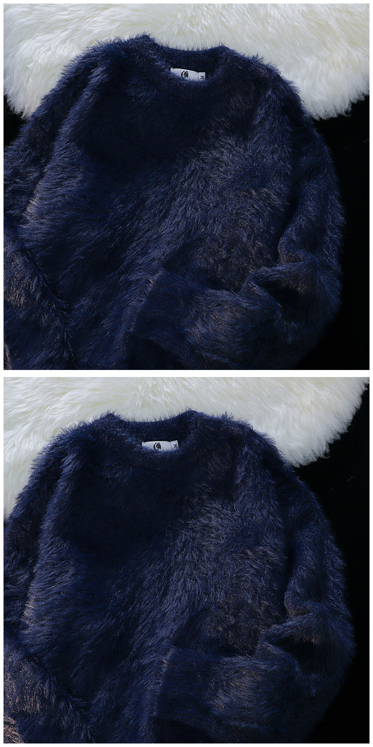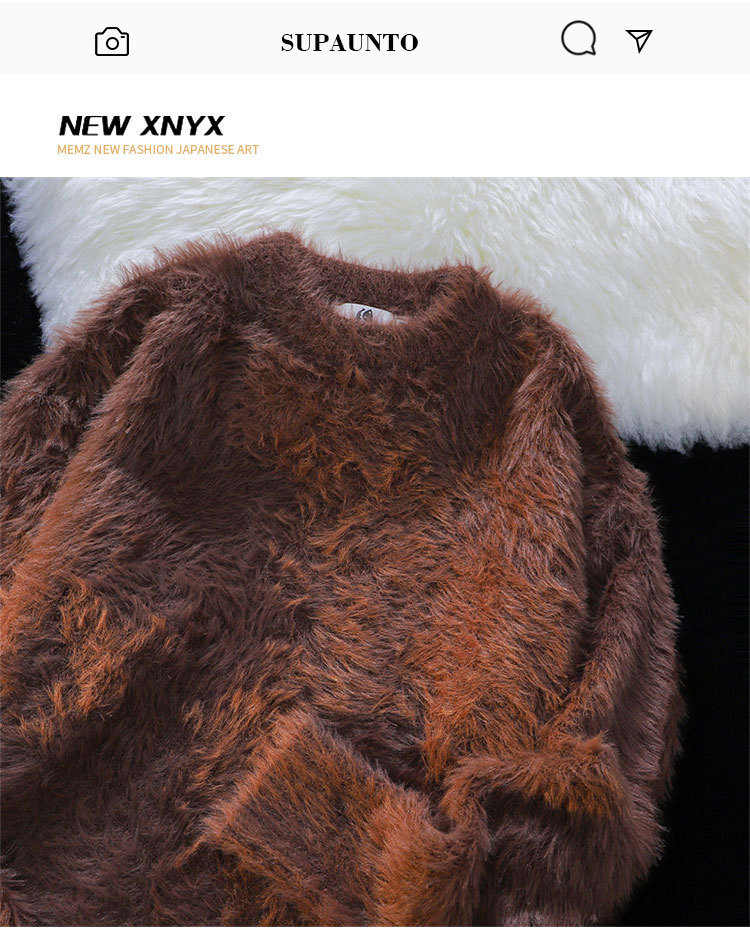 단색 따뜻한 니트 스웨터 크루 넥 스웨터 남자 가을 겨울 하라주쿠 스타일 Ins 느슨한 유행 브랜드 커플 의류 라인스토어 가기