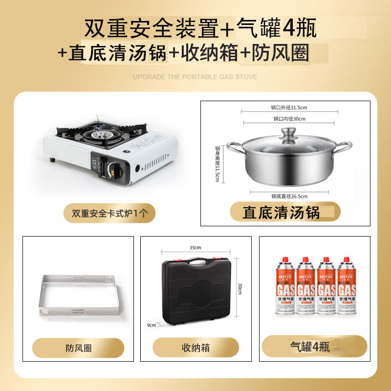 • 스토브 + 가스 4병 + 방풍링 + 바닥이 일자형 맑은 수프 냄비 + 보관함
