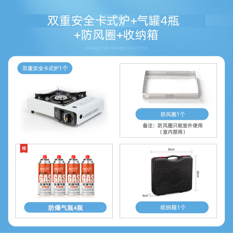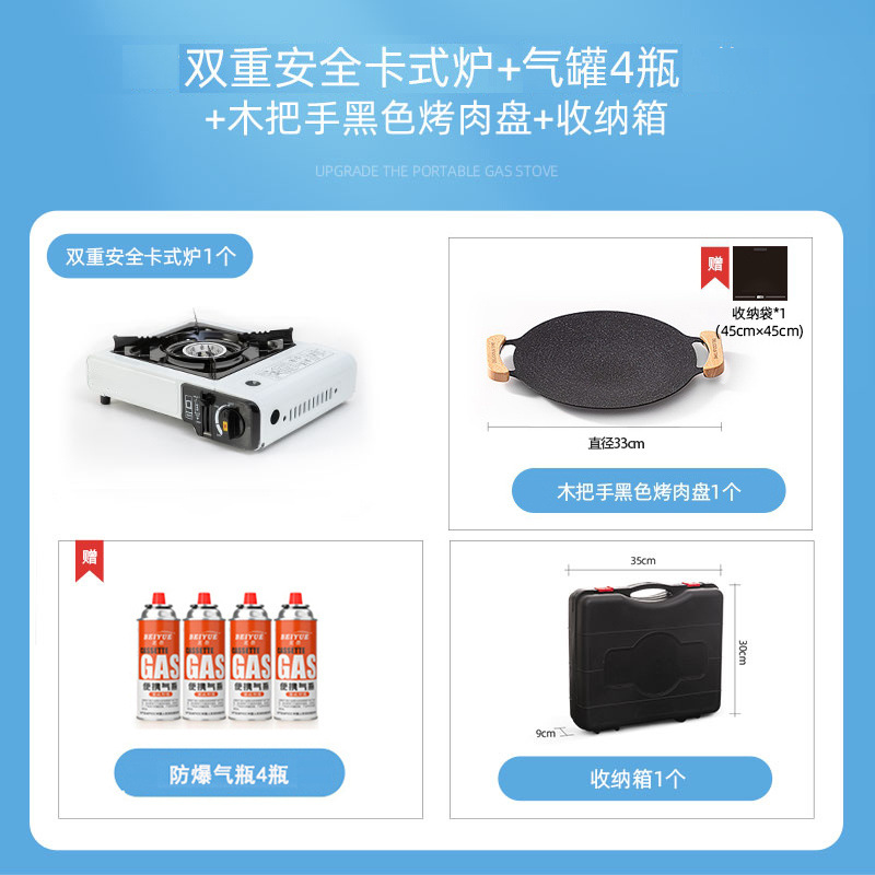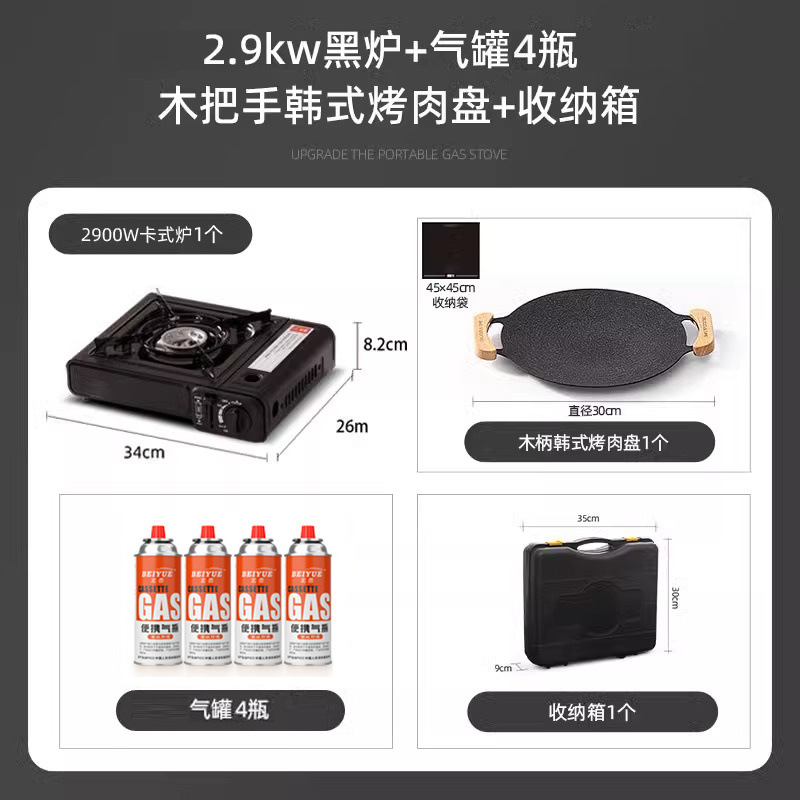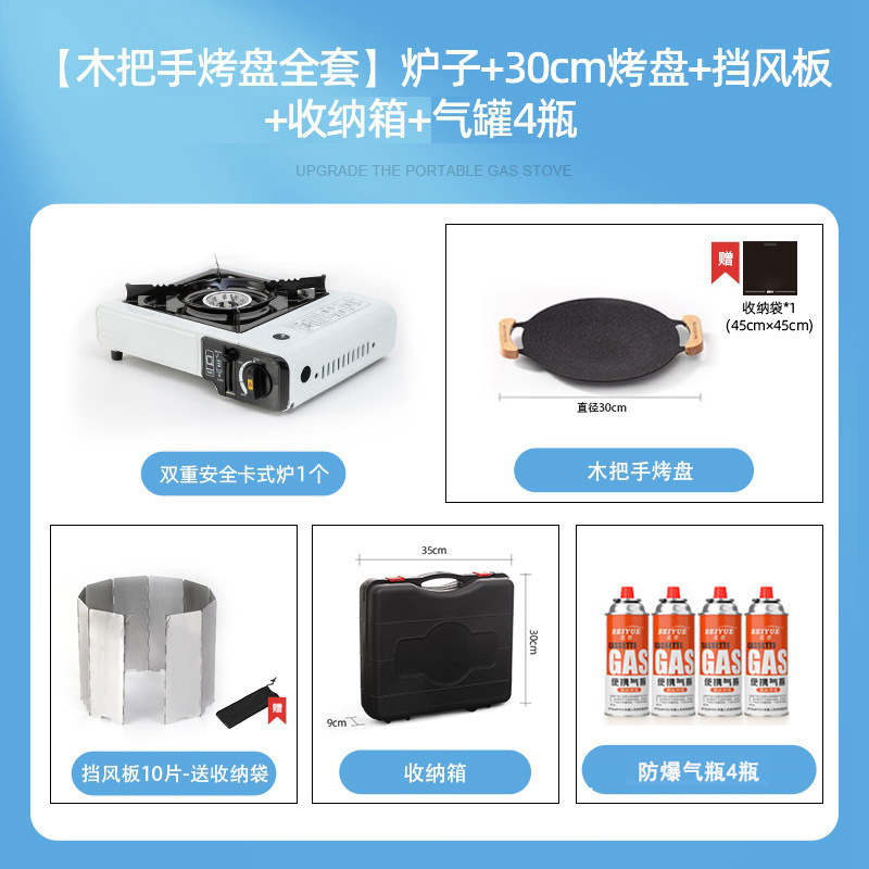 • 카세트 스토브 + 가스 4병 + 나무 손잡이 베이킹 팬 + 보관함