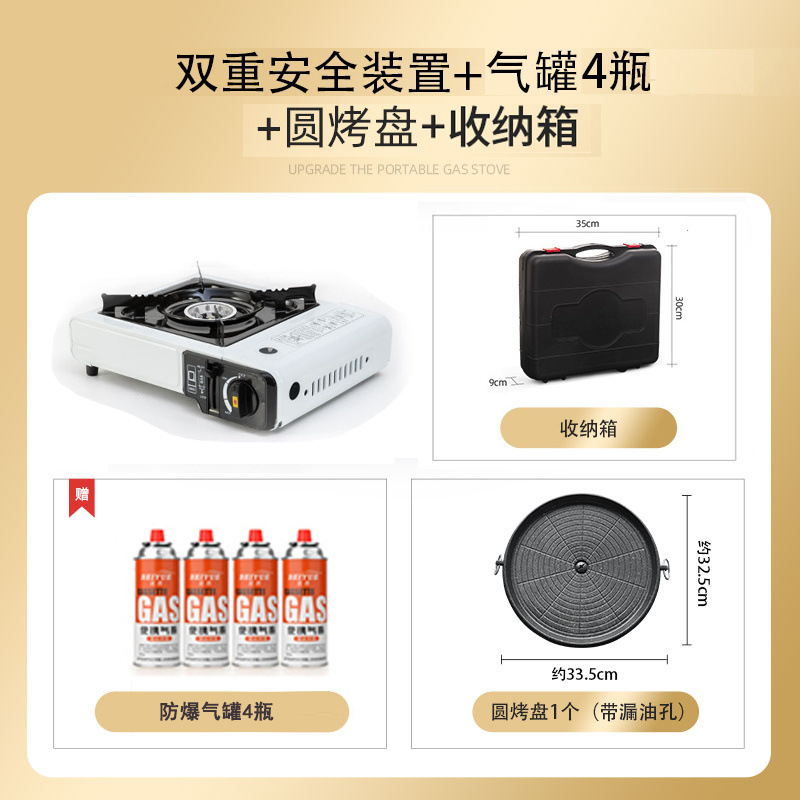 • 스토브 + 나무 손잡이 베이킹 팬 + 앞 유리 + 보관 상자 + 가스 4개