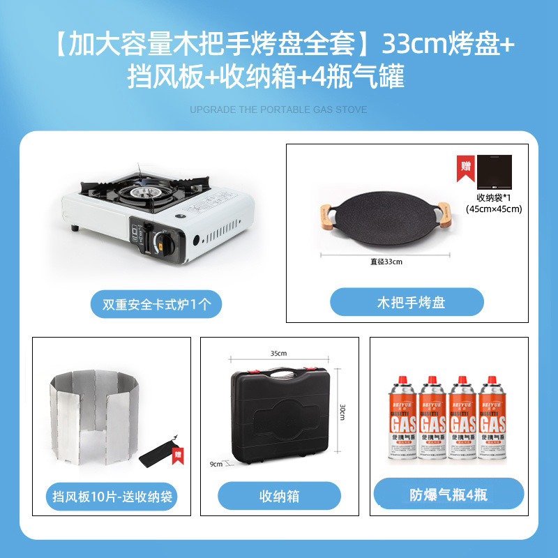 • 카세트 스토브 + 가스 4병 + 확대된 나무 손잡이 베이킹 팬 + 보관함