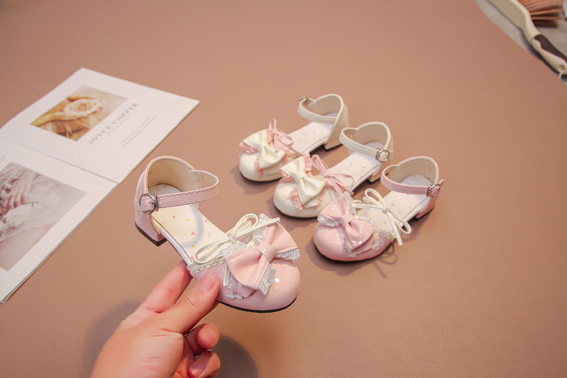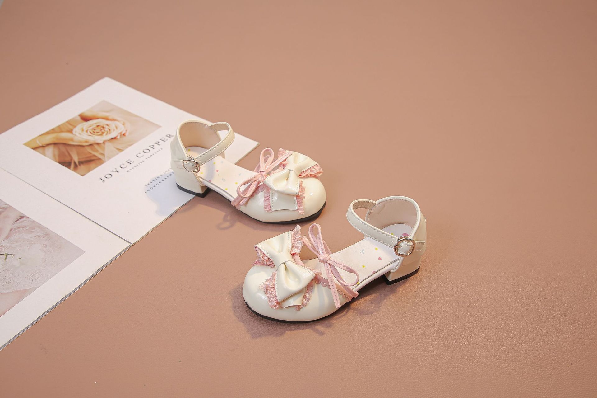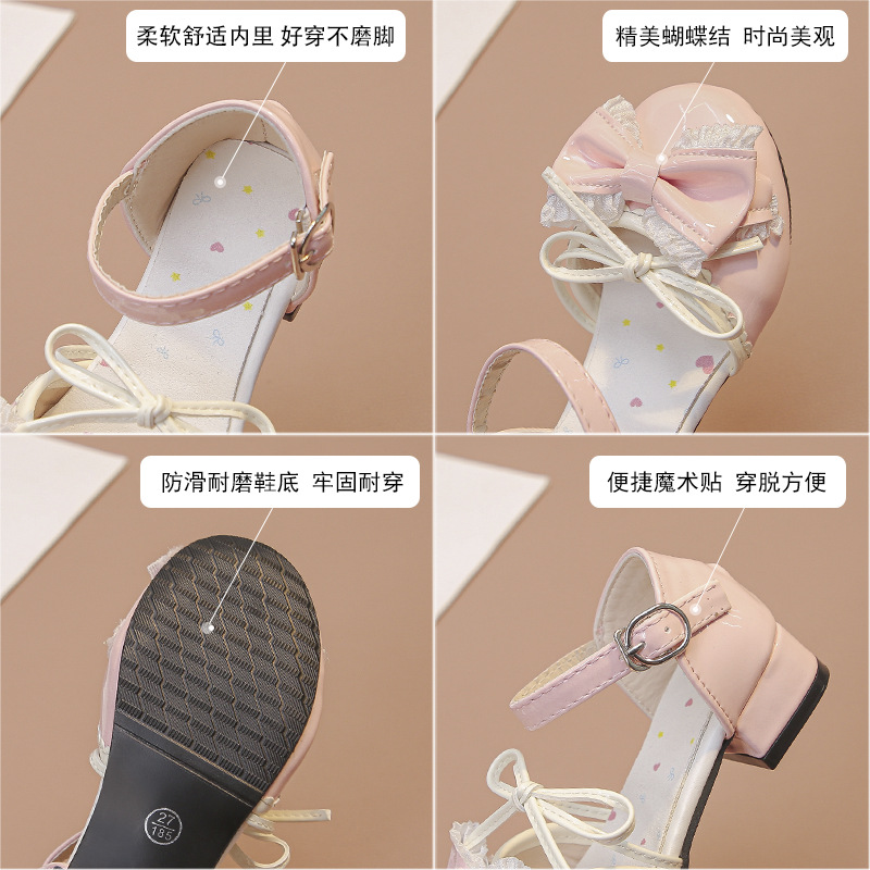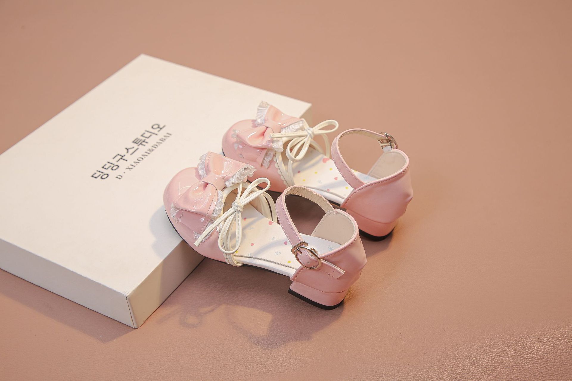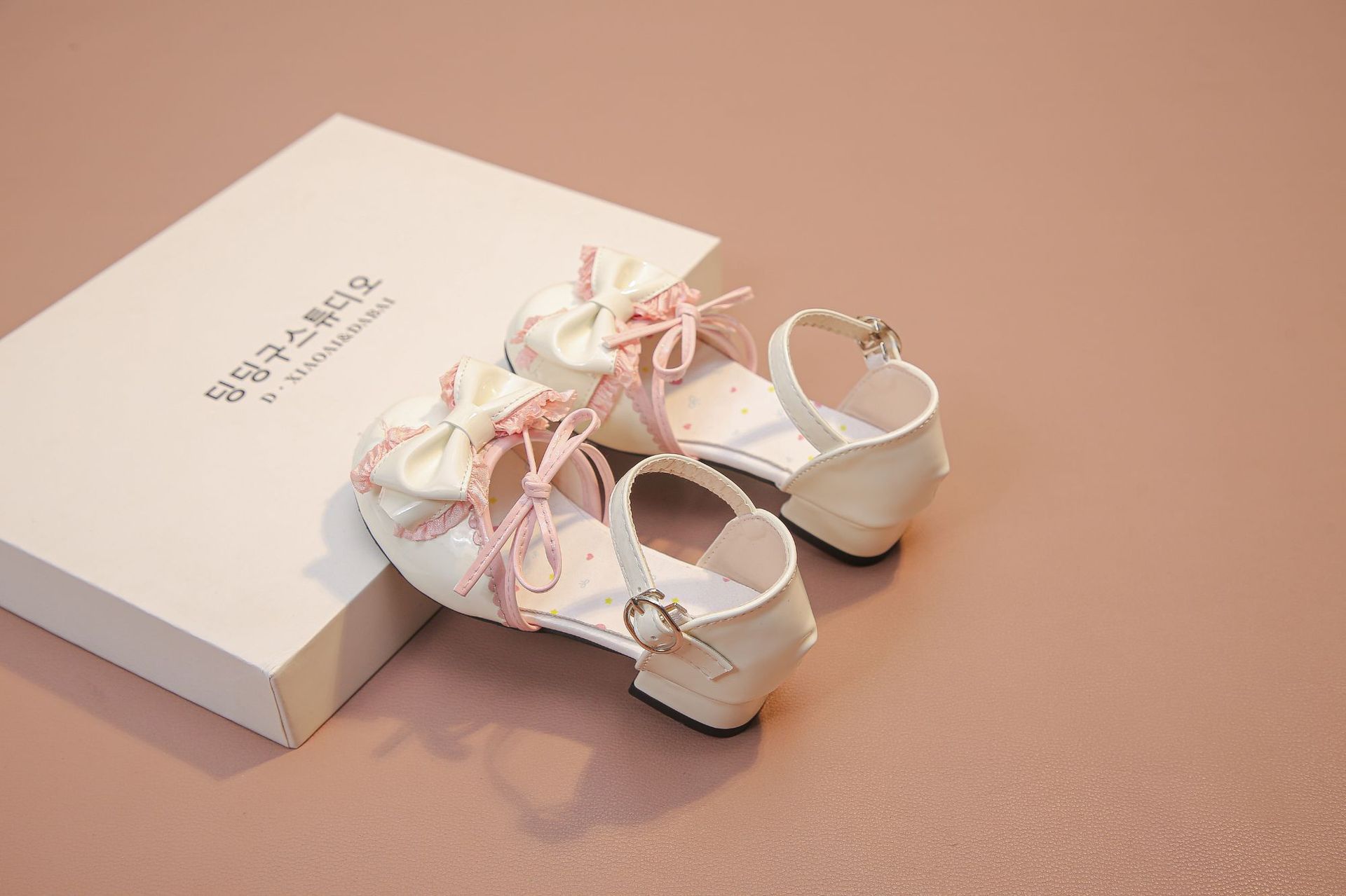 2025 여름 어린이 신발 작은 소녀 달콤한 활 공주 신발 한국 스타일 소녀의 하이힐 가죽 신발 발가락 샌들
