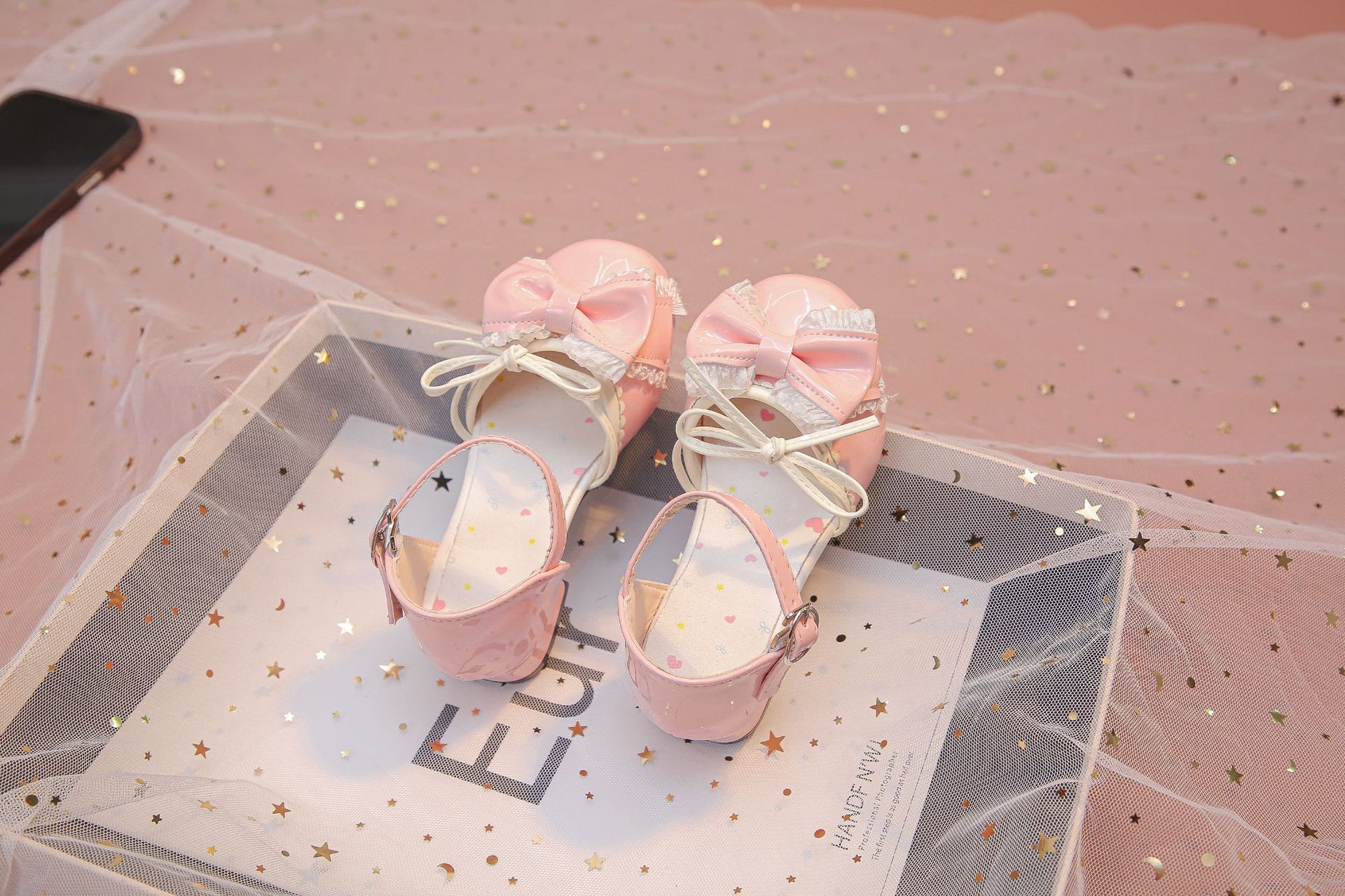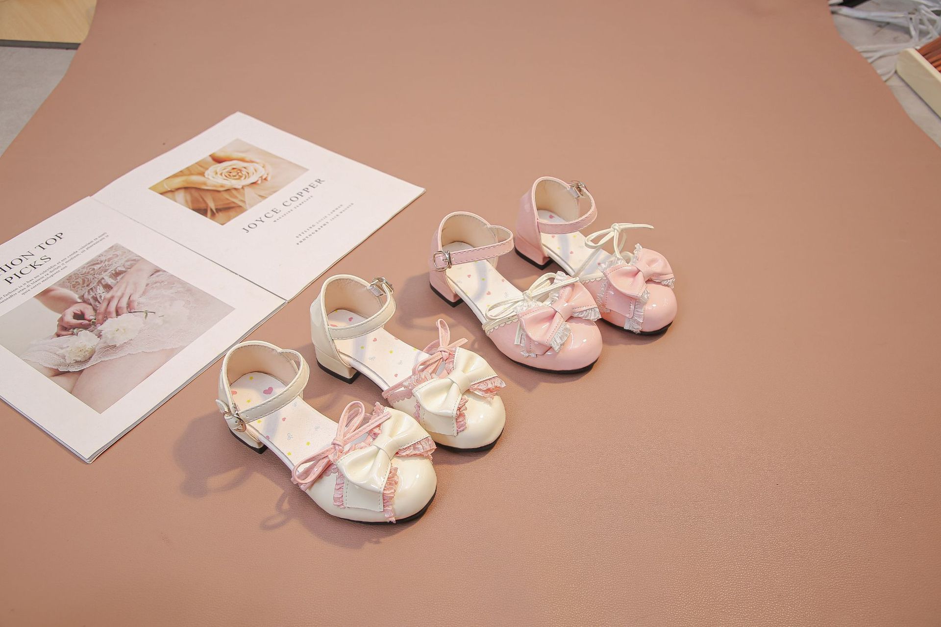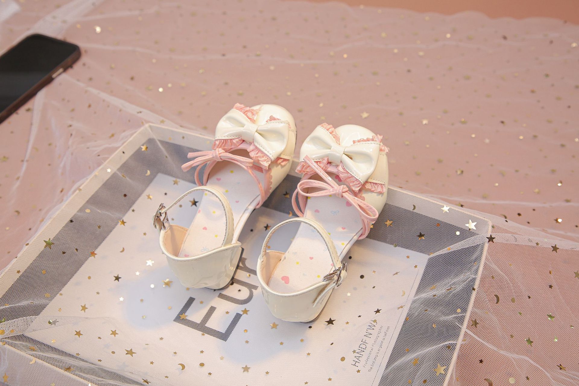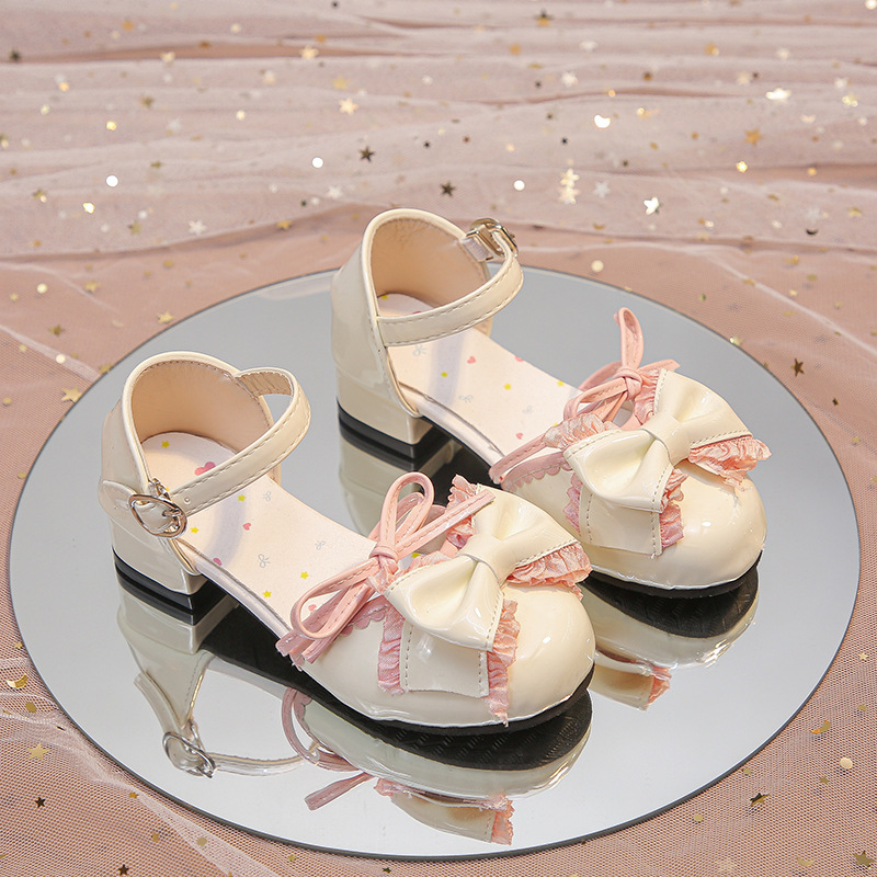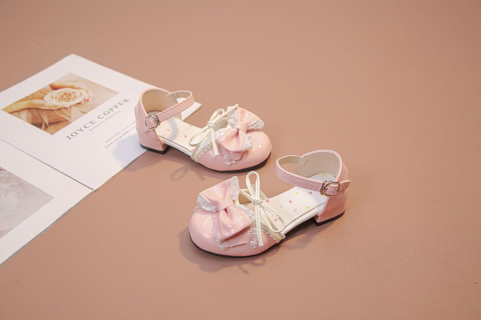 2025 여름 어린이 신발 작은 소녀 달콤한 활 공주 신발 한국 스타일 소녀의 하이힐 가죽 신발 발가락 샌들