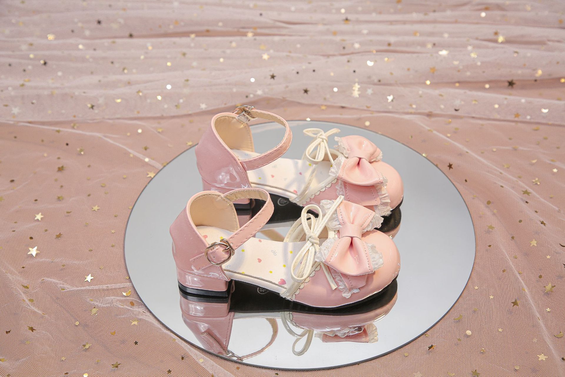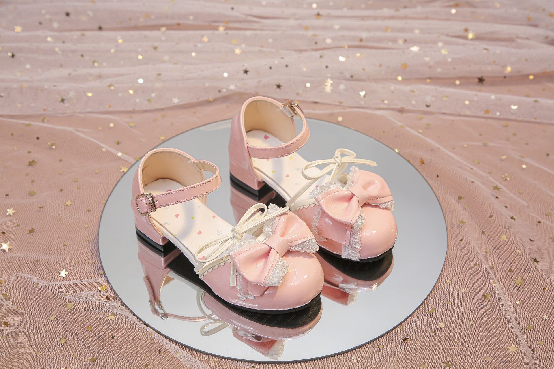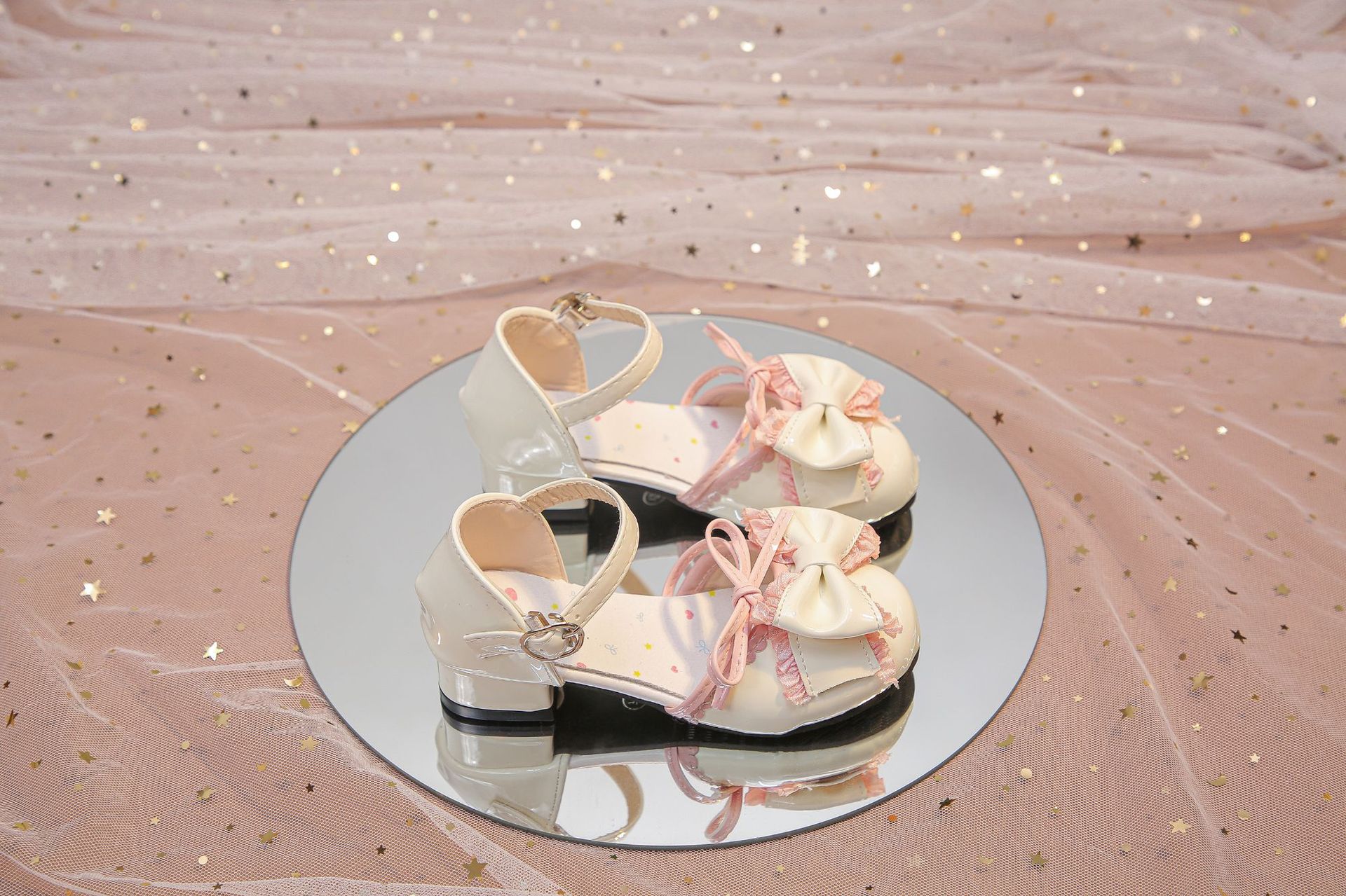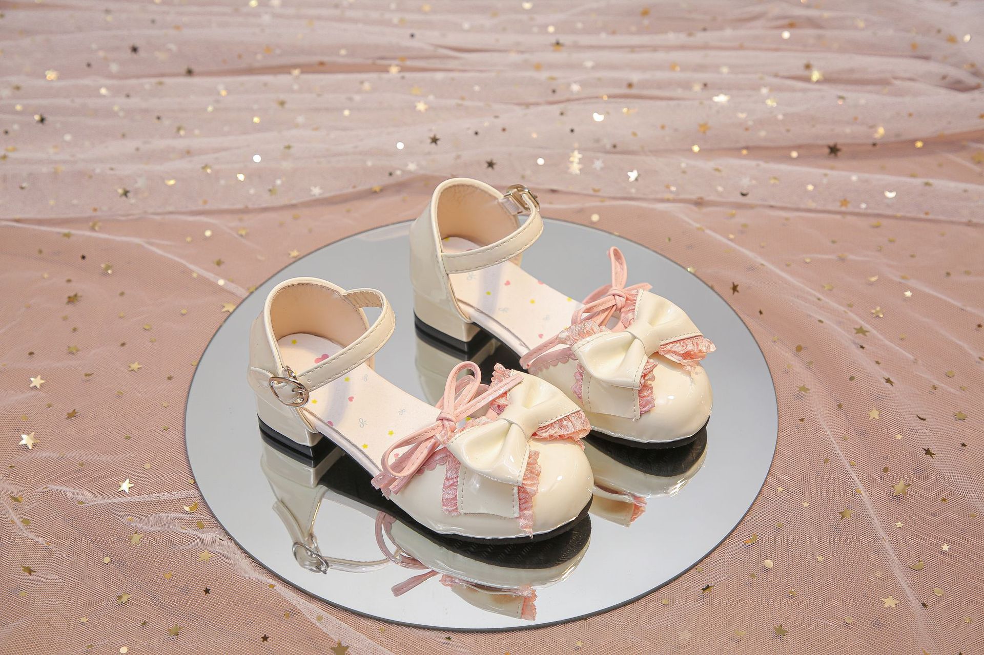 2025 여름 어린이 신발 작은 소녀 달콤한 활 공주 신발 한국 스타일 소녀의 하이힐 가죽 신발 발가락 샌들