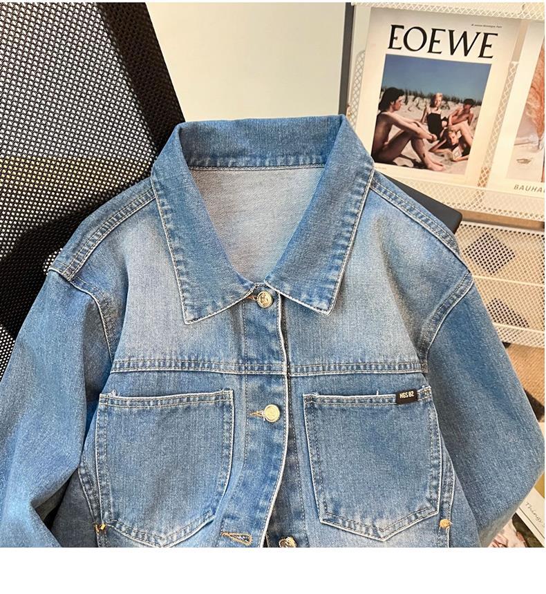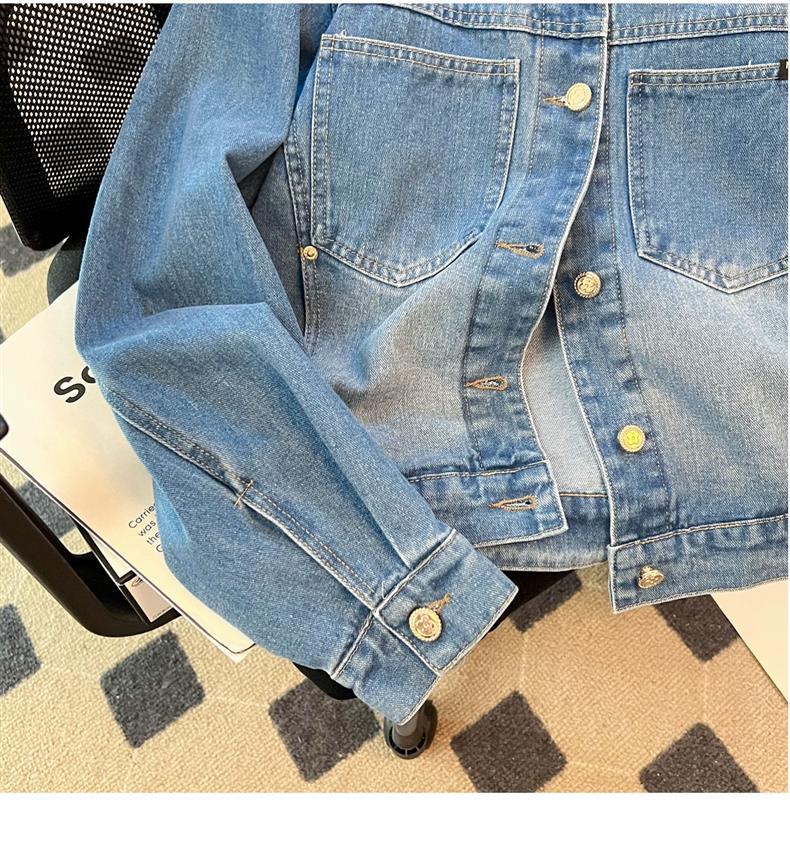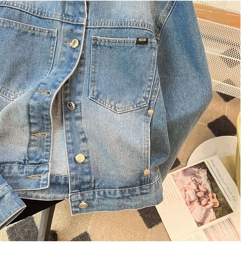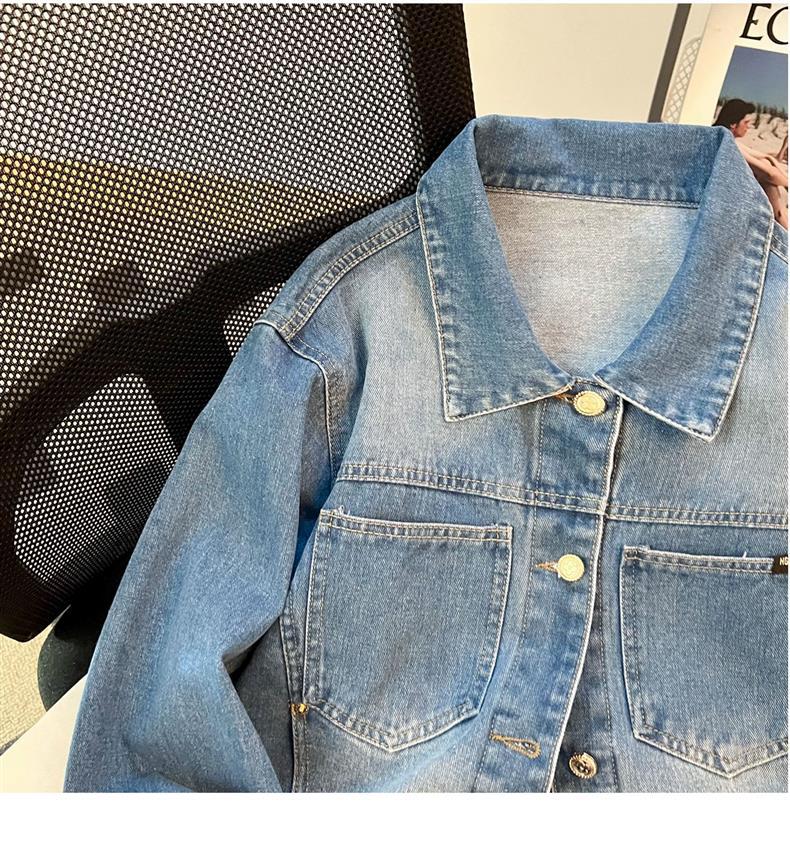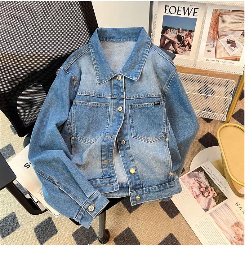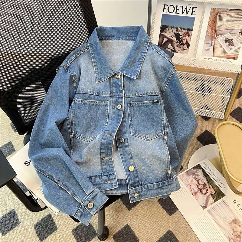 다홍 같은 단락 [제때] 25 봄 느슨한 옷깃 한국 슬림 데님 코트 여성 자켓 탑