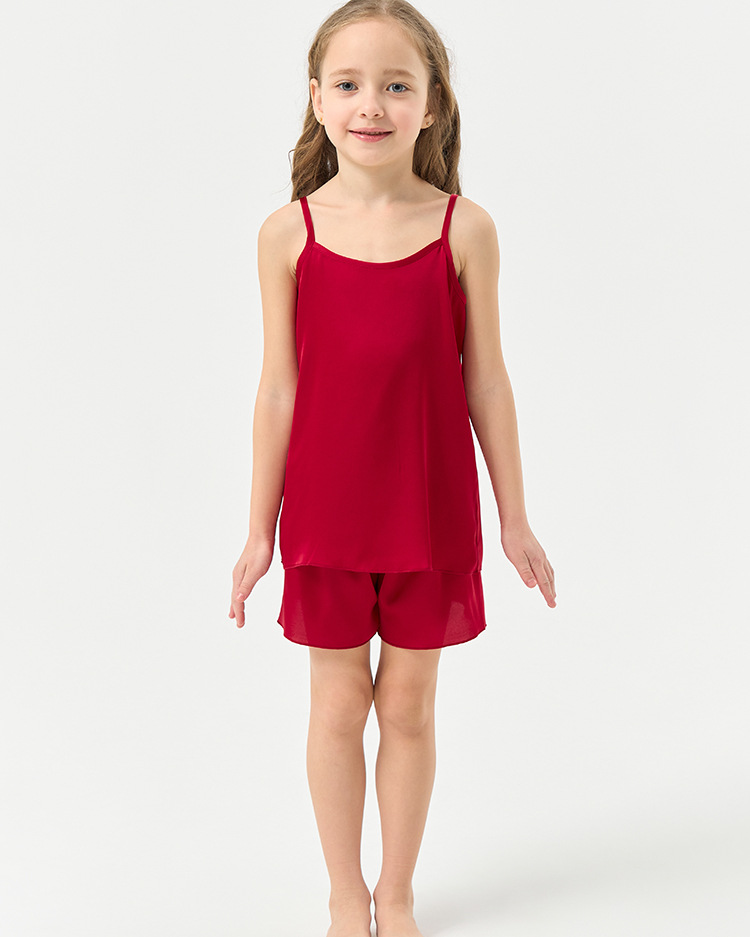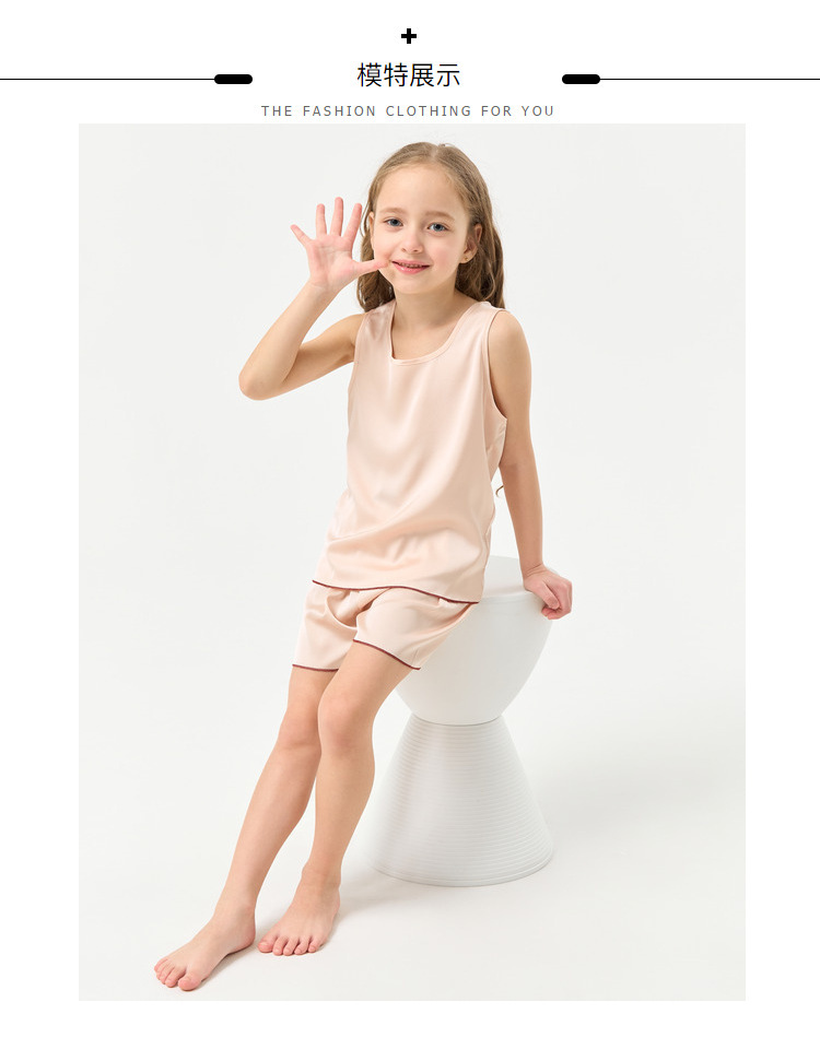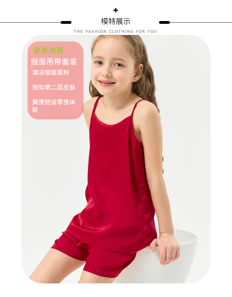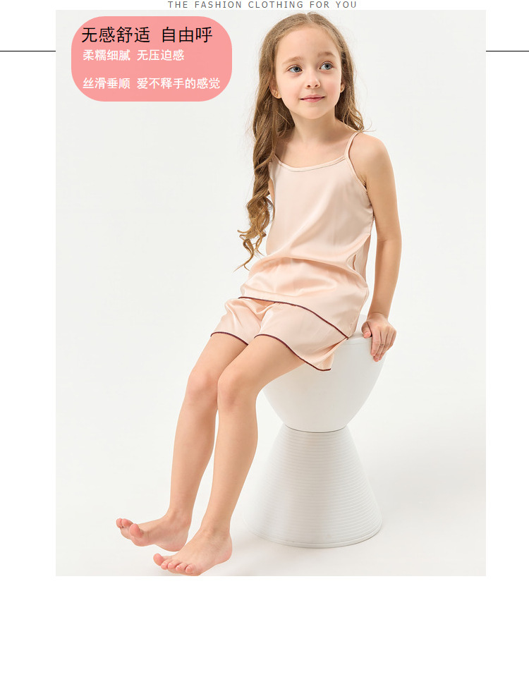 새틴 어린이 잠옷 여름 캐미솔 반바지 정장 시뮬레이션 실크 소녀 가정 의류 아마존 대외 무역스토어 가기