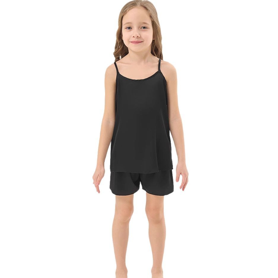 새틴 어린이 잠옷 여름 캐미솔 반바지 정장 시뮬레이션 실크 소녀 가정 의류 아마존 대외 무역