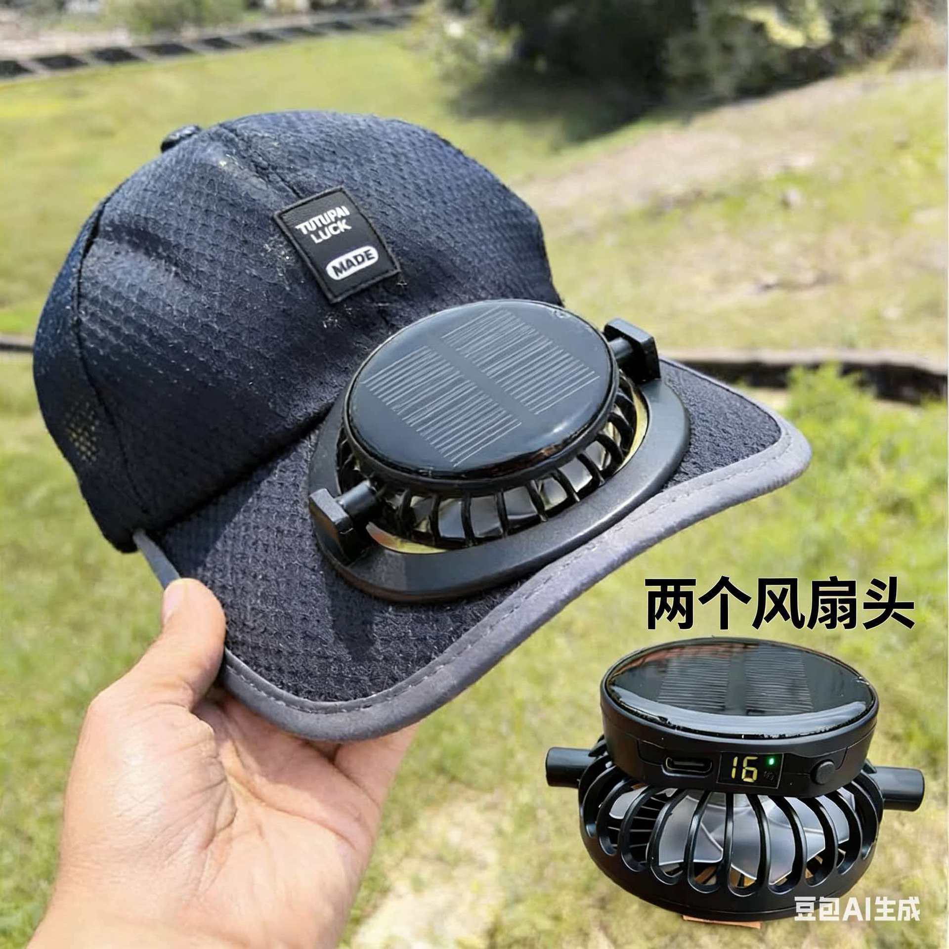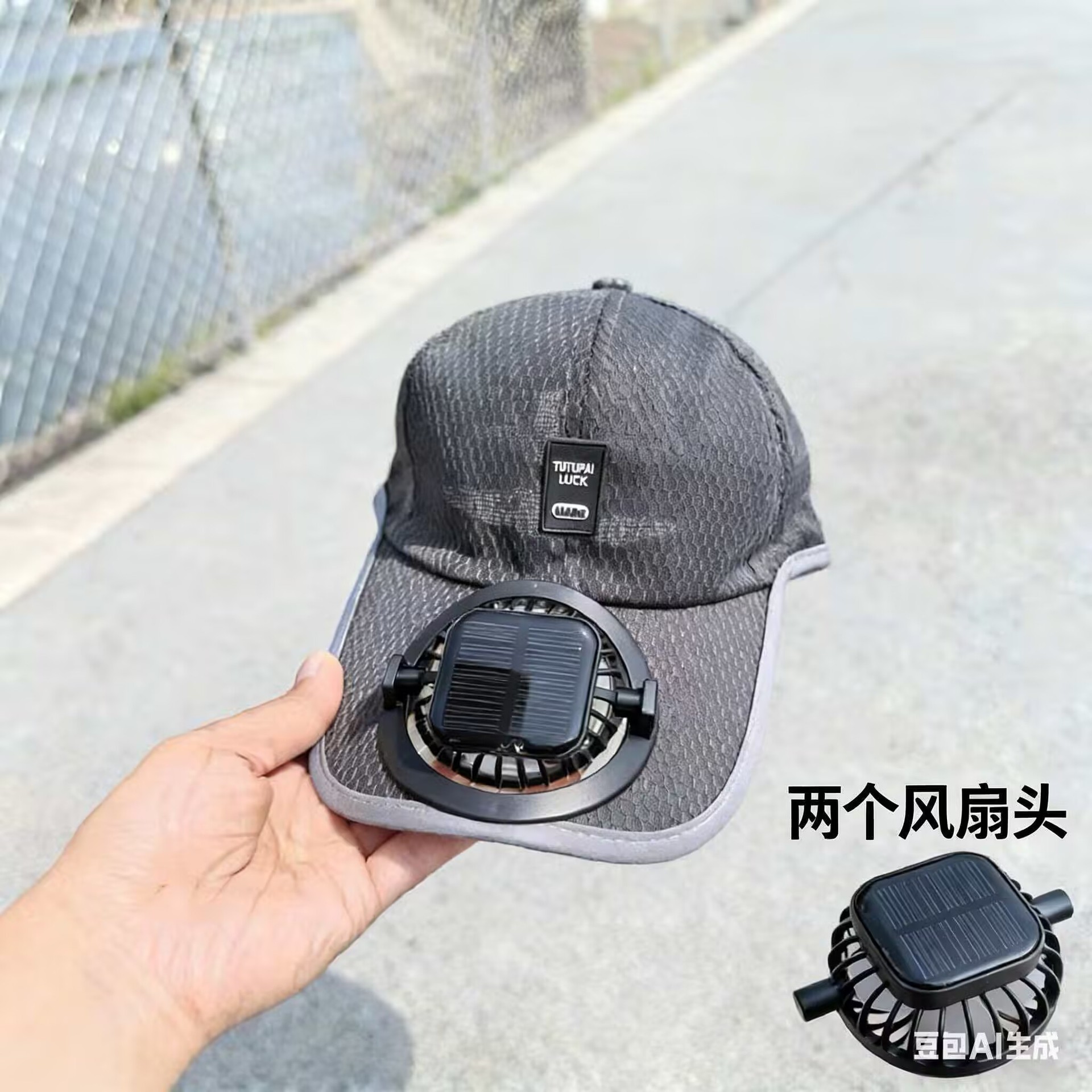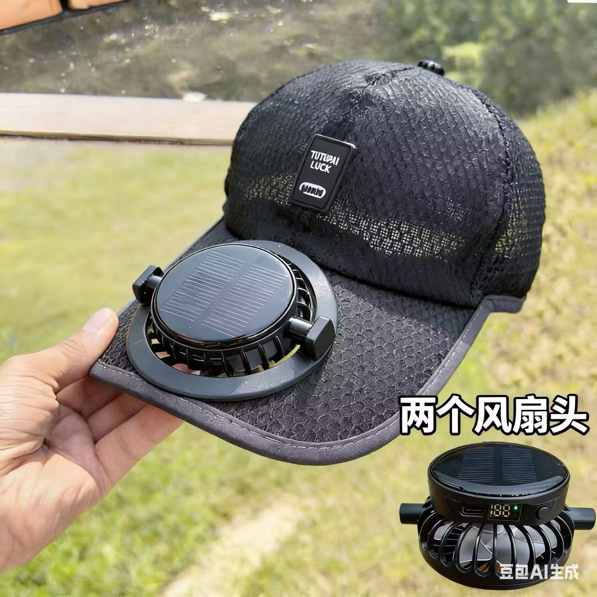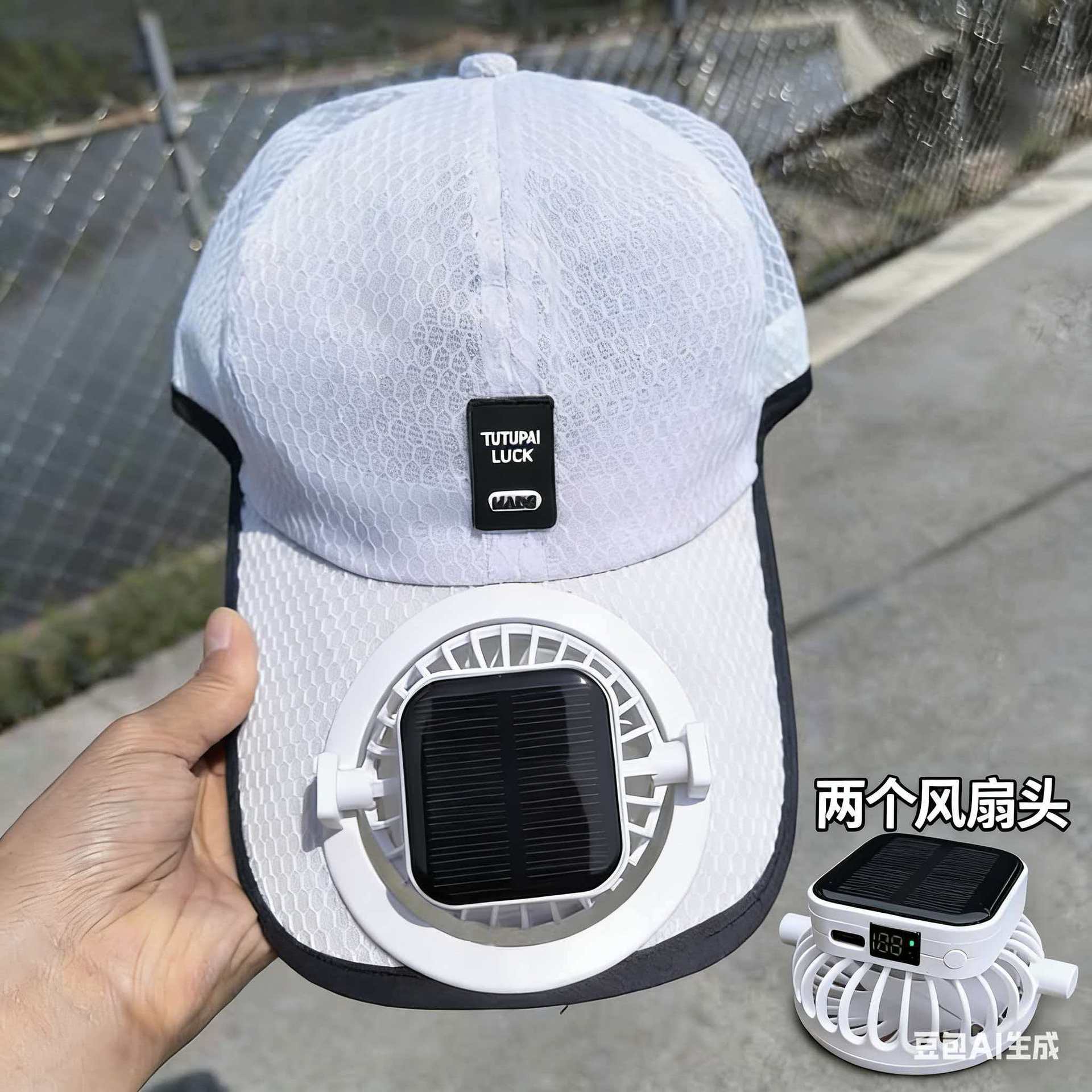 红砖头夏季太阳能风扇充电款男女士防晒防紫外线加长檐钓鱼遮阳帽