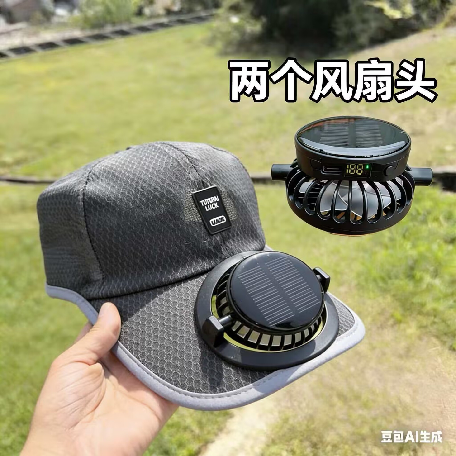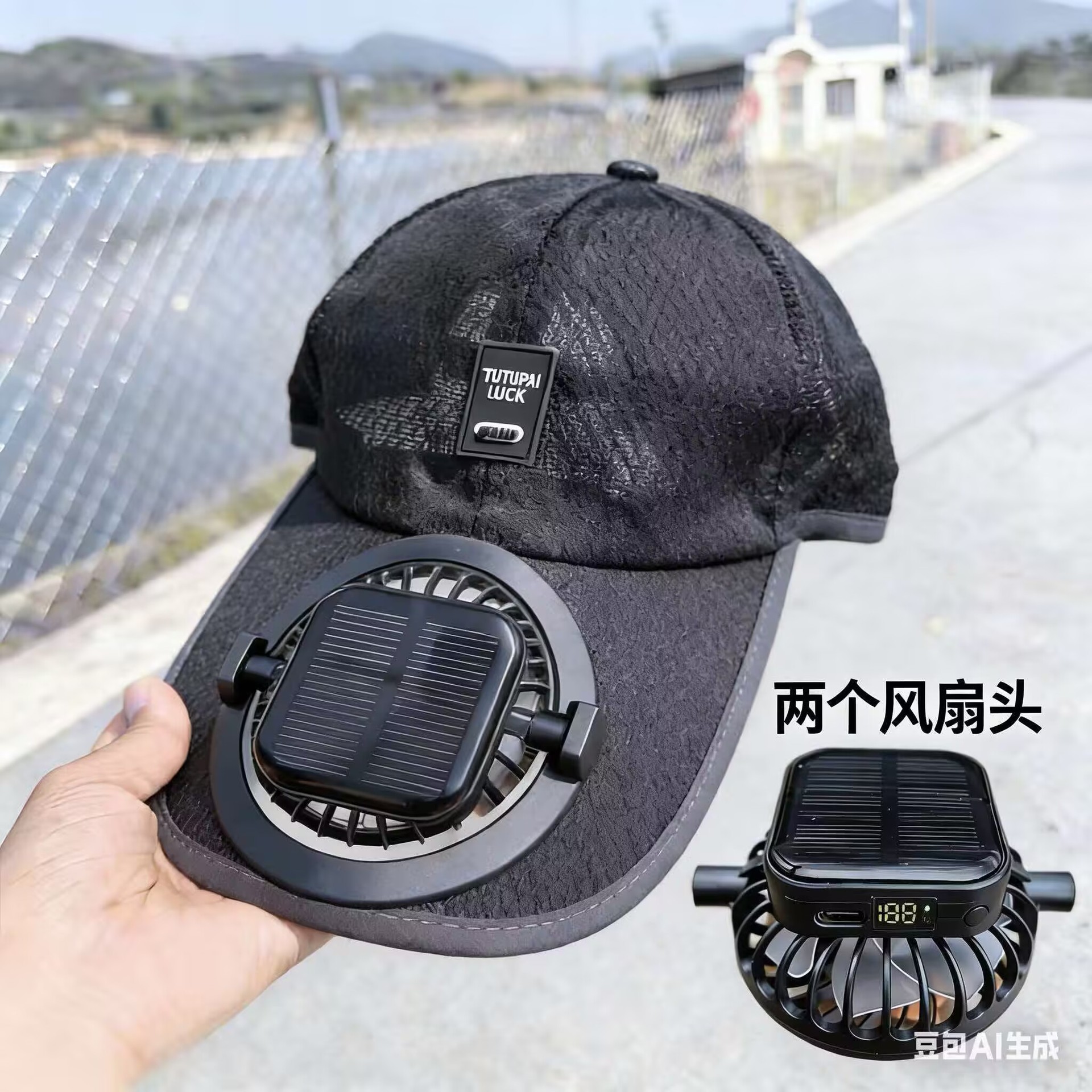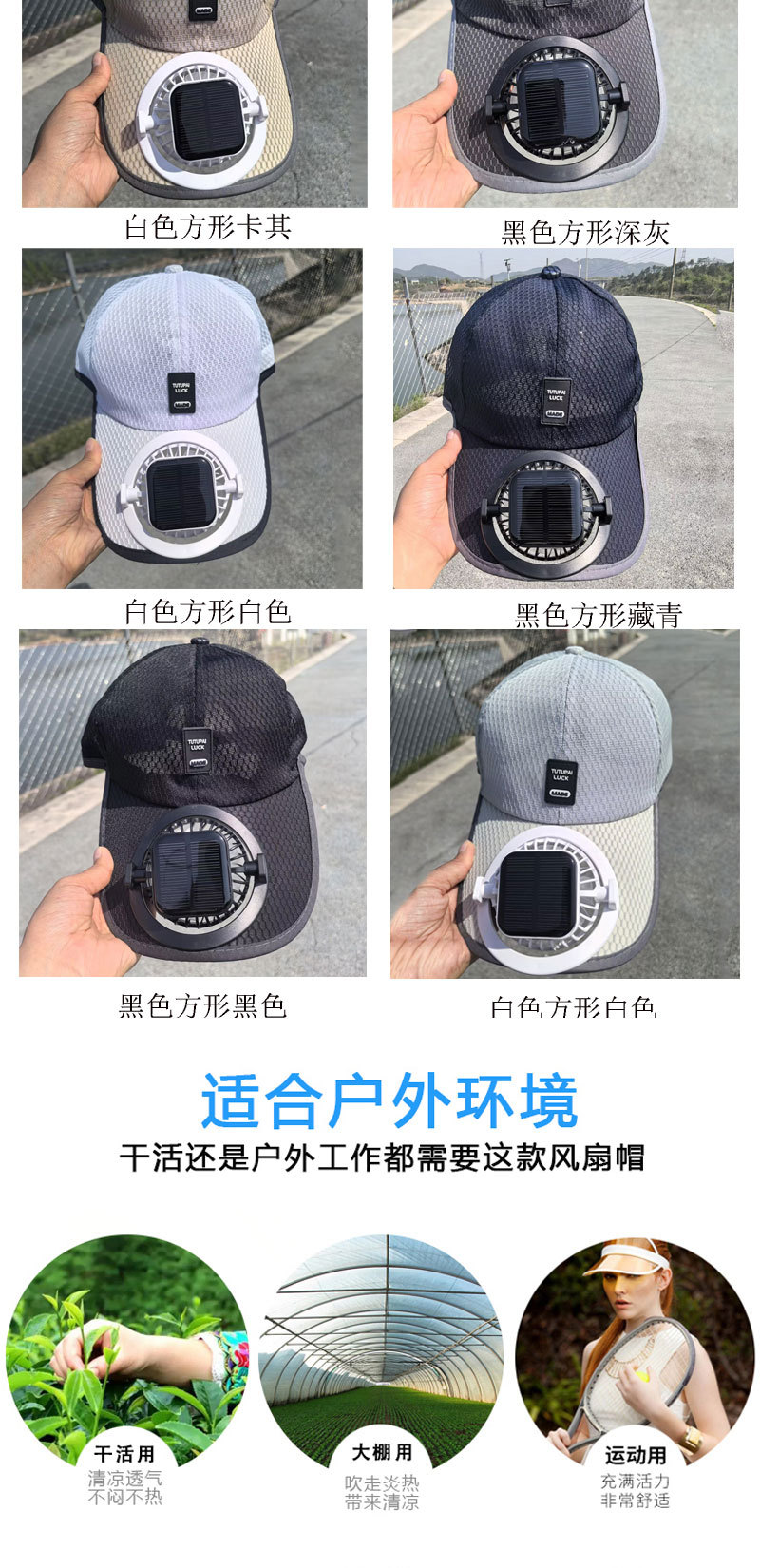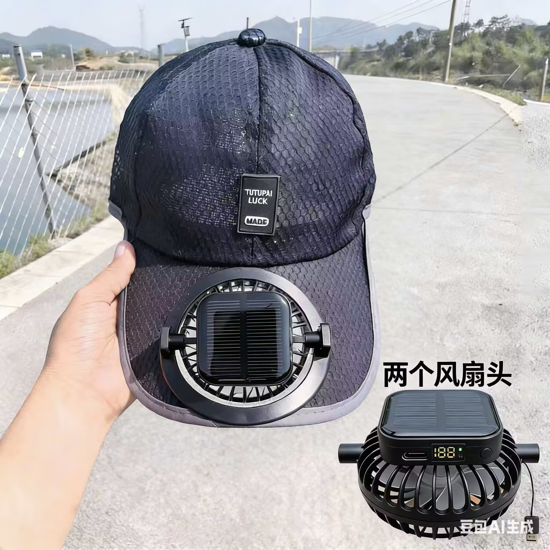 红砖头夏季太阳能风扇充电款男女士防晒防紫外线加长檐钓鱼遮阳帽