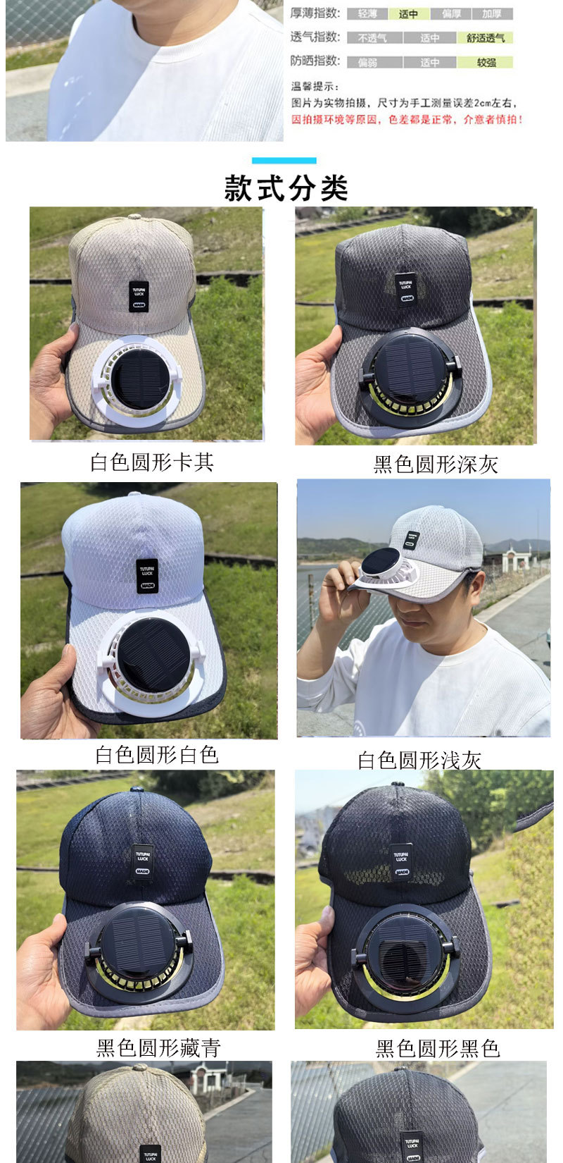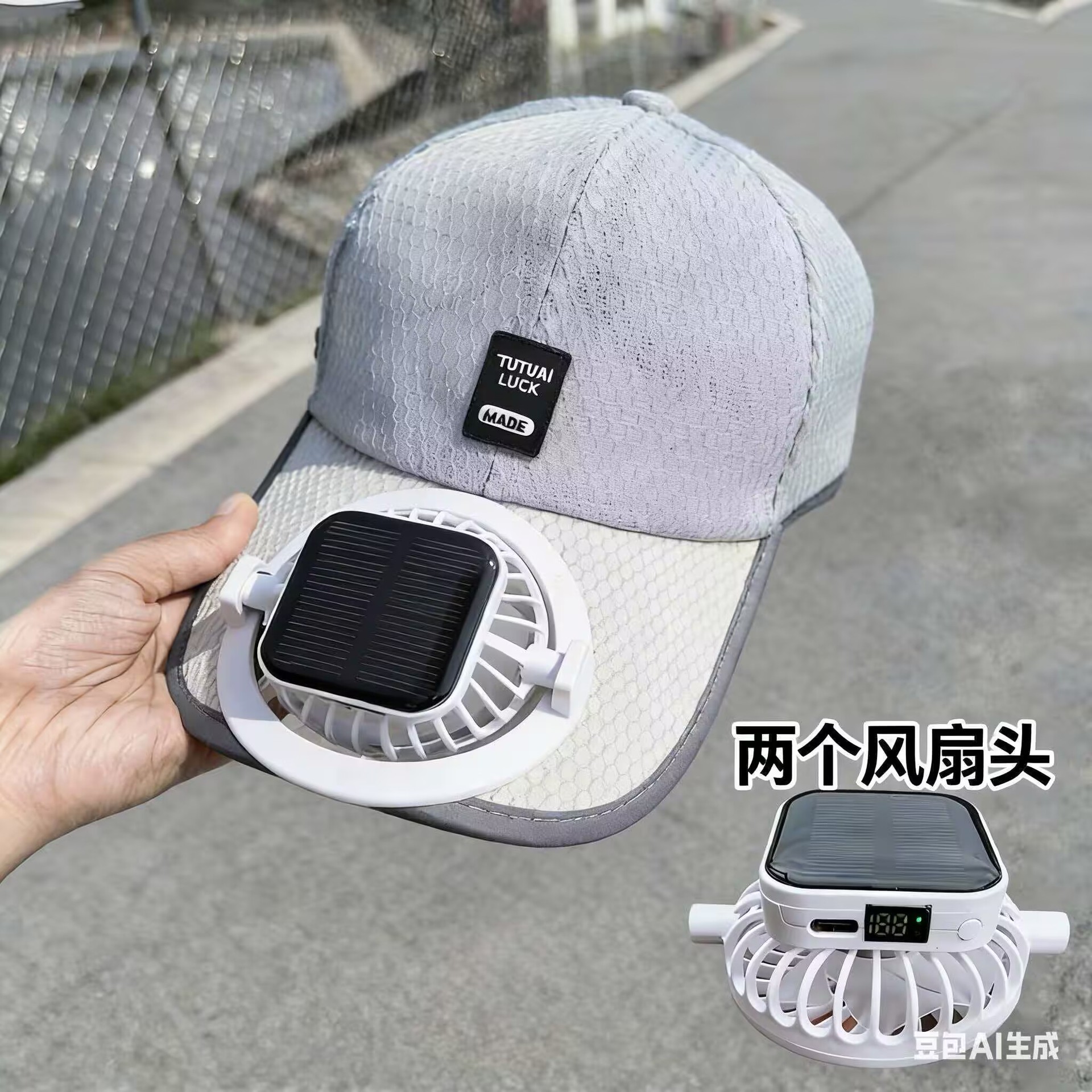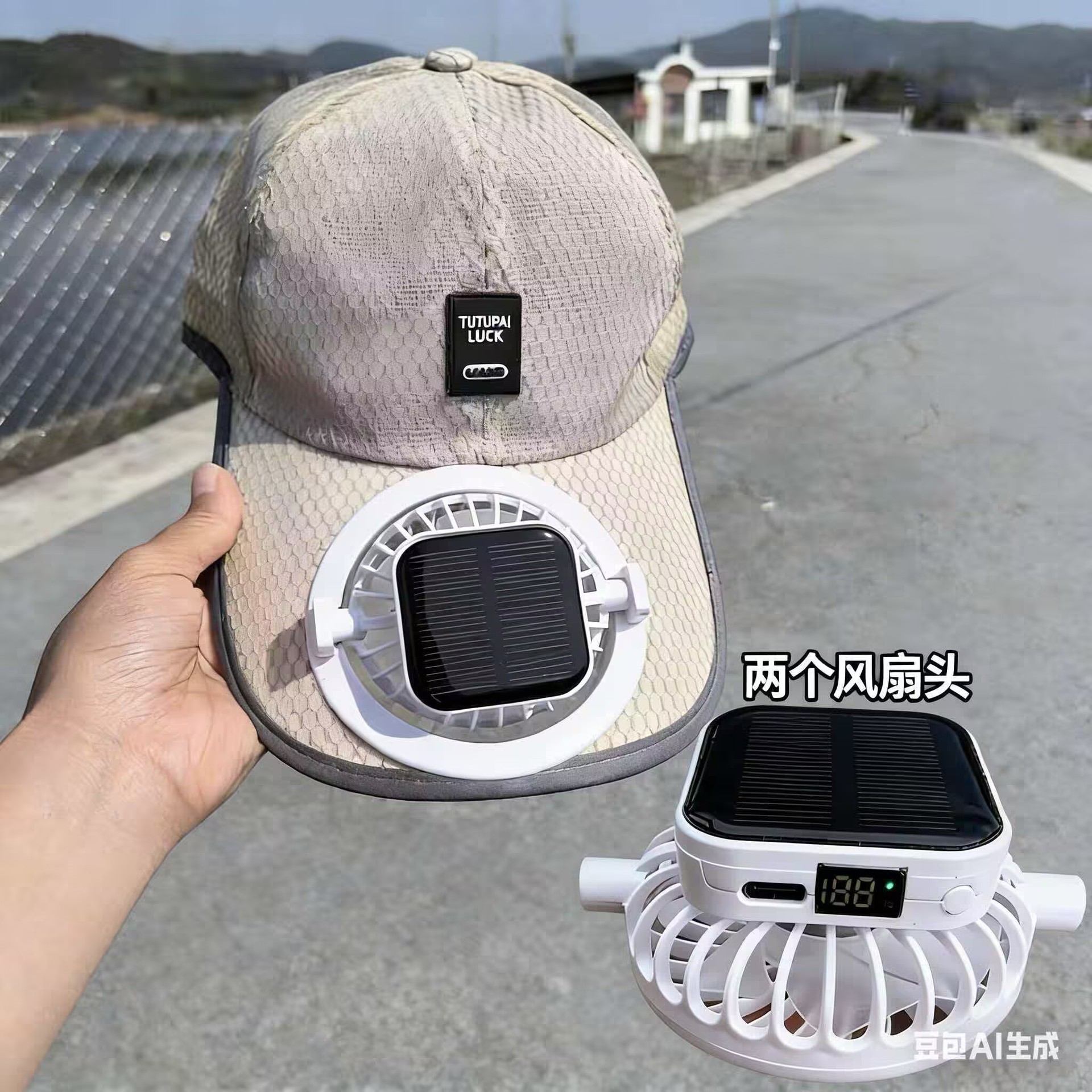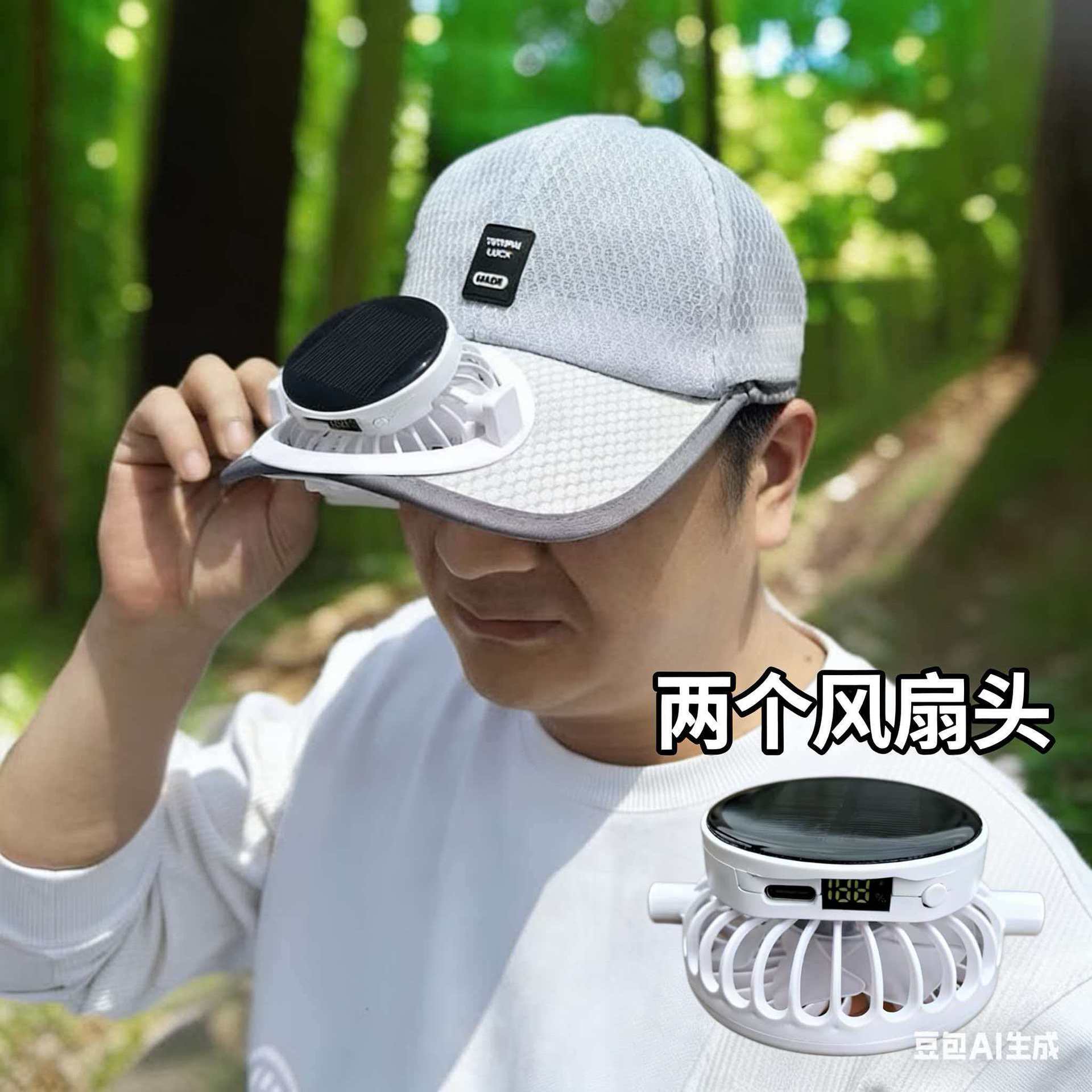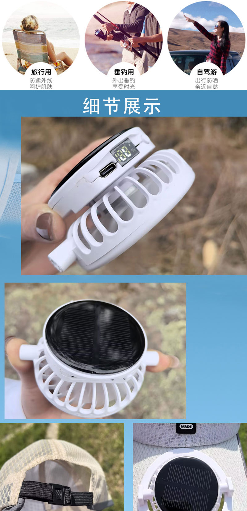 红砖头夏季太阳能风扇充电款男女士防晒防紫外线加长檐钓鱼遮阳帽
