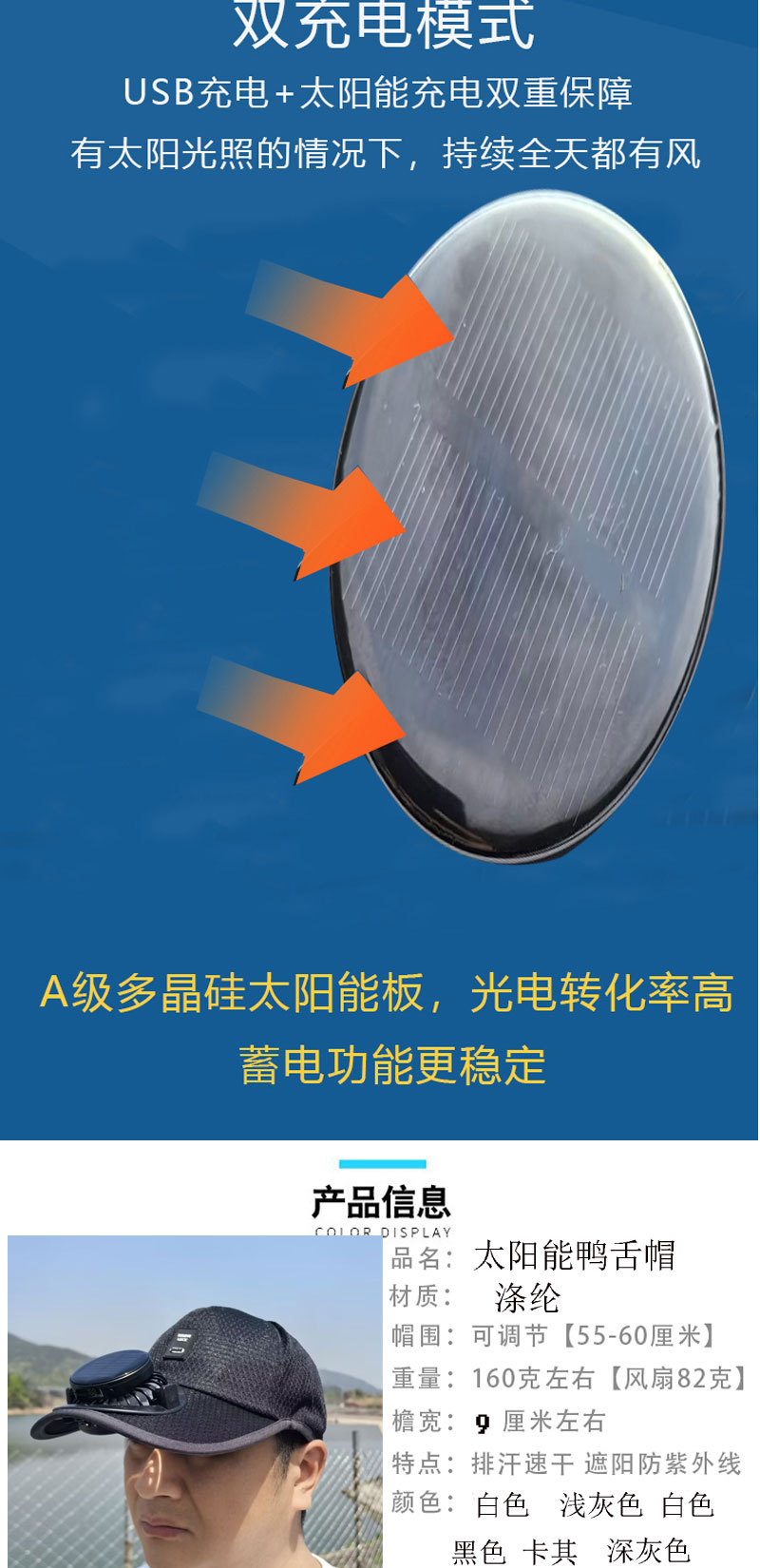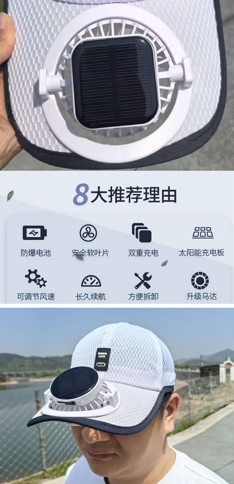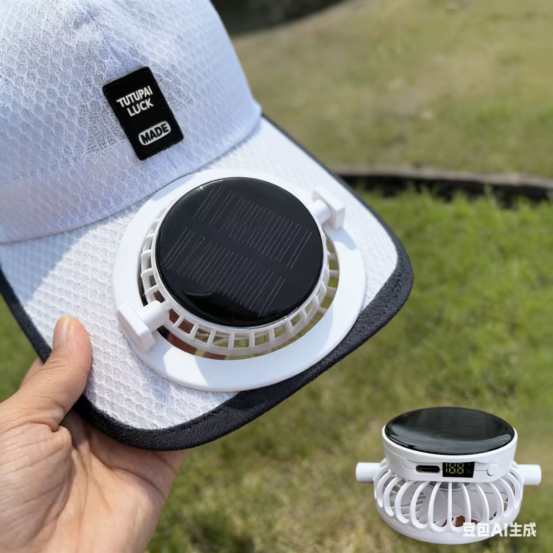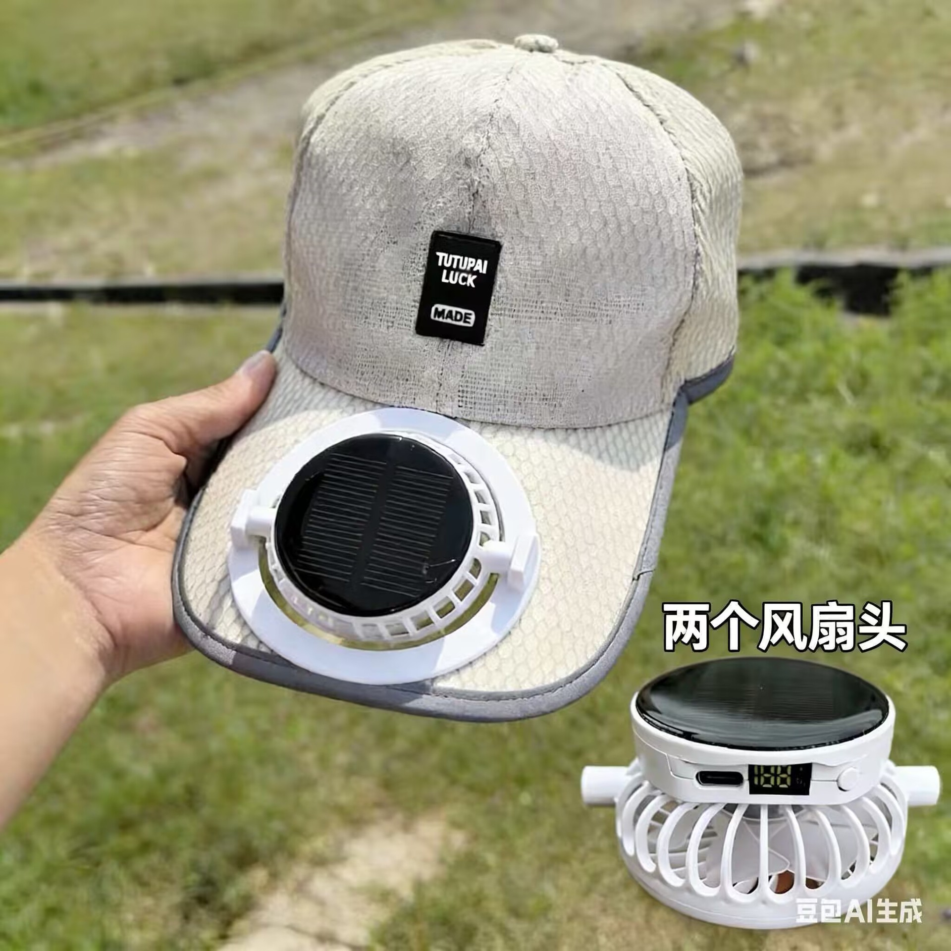 红砖头夏季太阳能风扇充电款男女士防晒防紫外线加长檐钓鱼遮阳帽