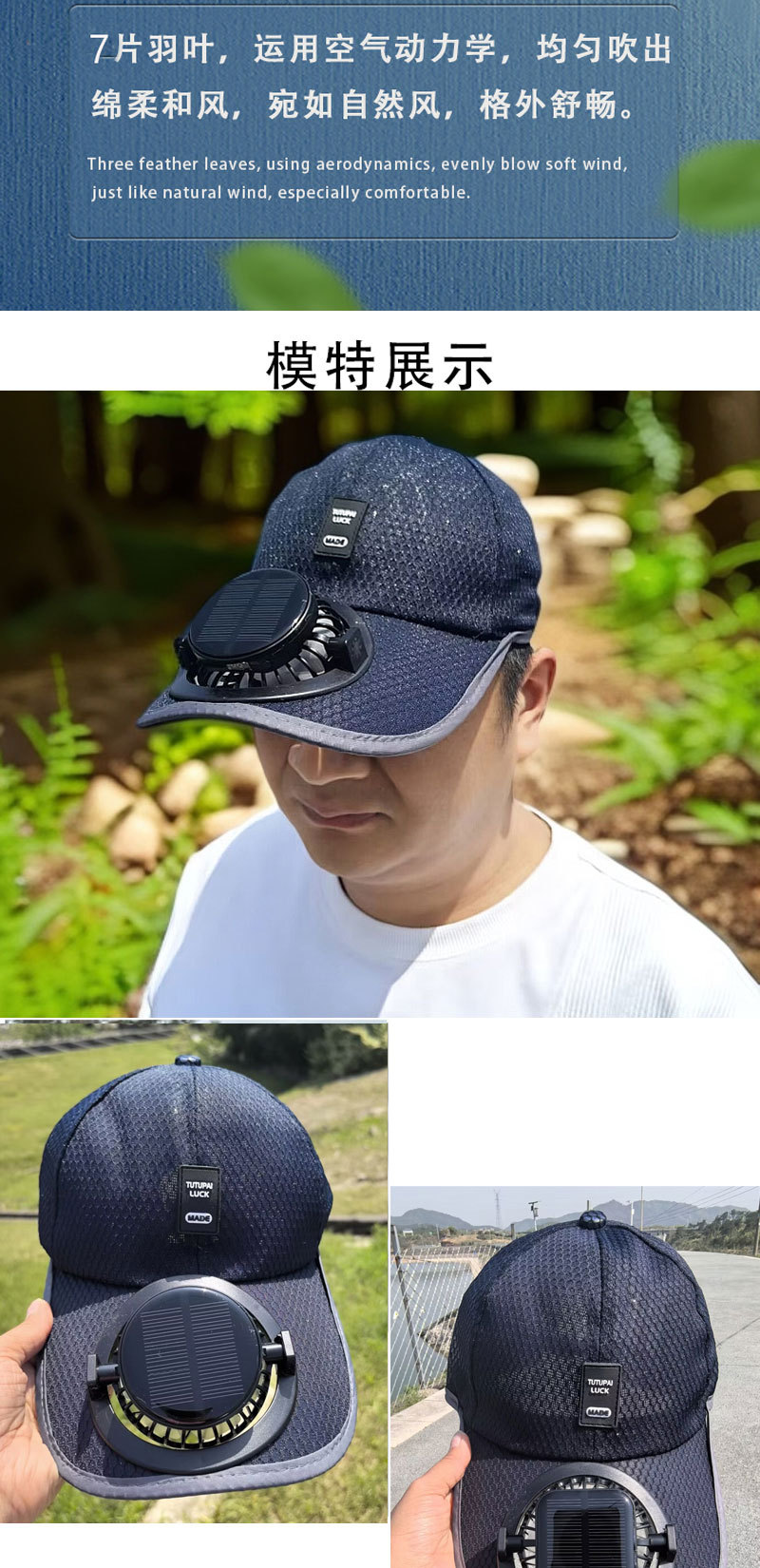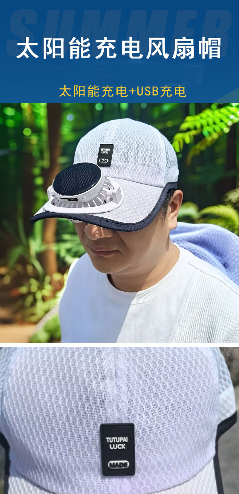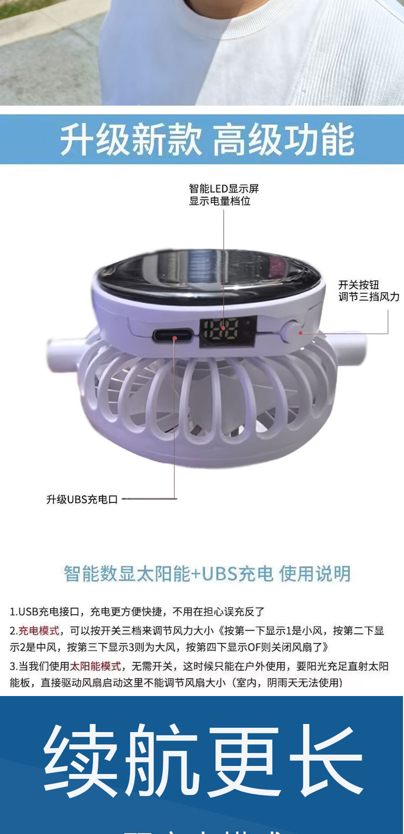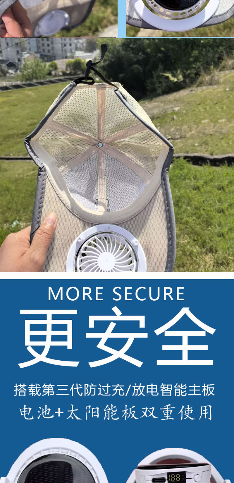 红砖头夏季太阳能风扇充电款男女士防晒防紫外线加长檐钓鱼遮阳帽
