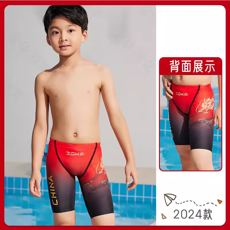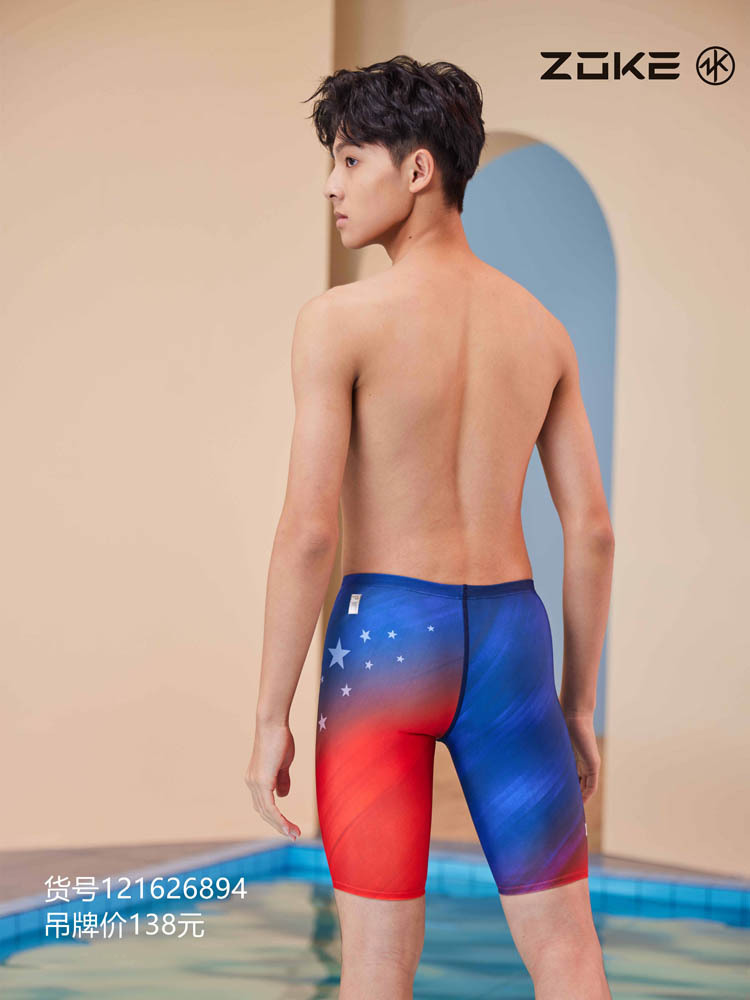 • 파란색과 빨간색 중국 스플래시 5점식 수영 트렁크