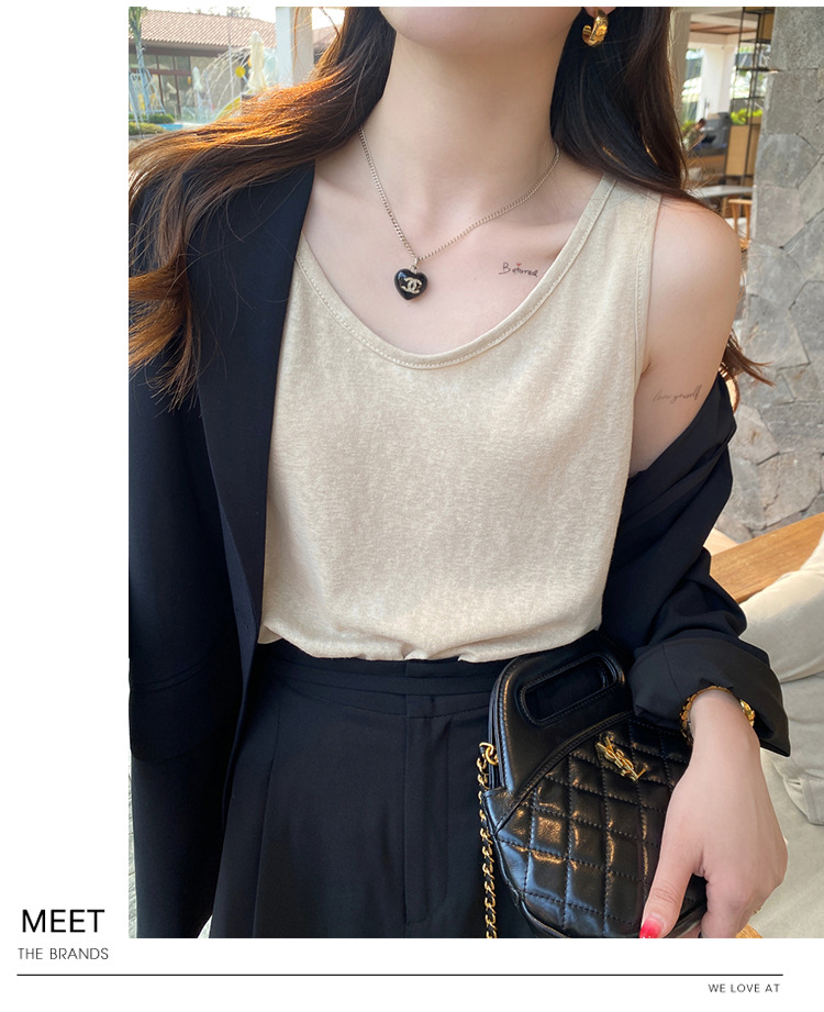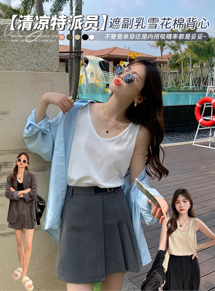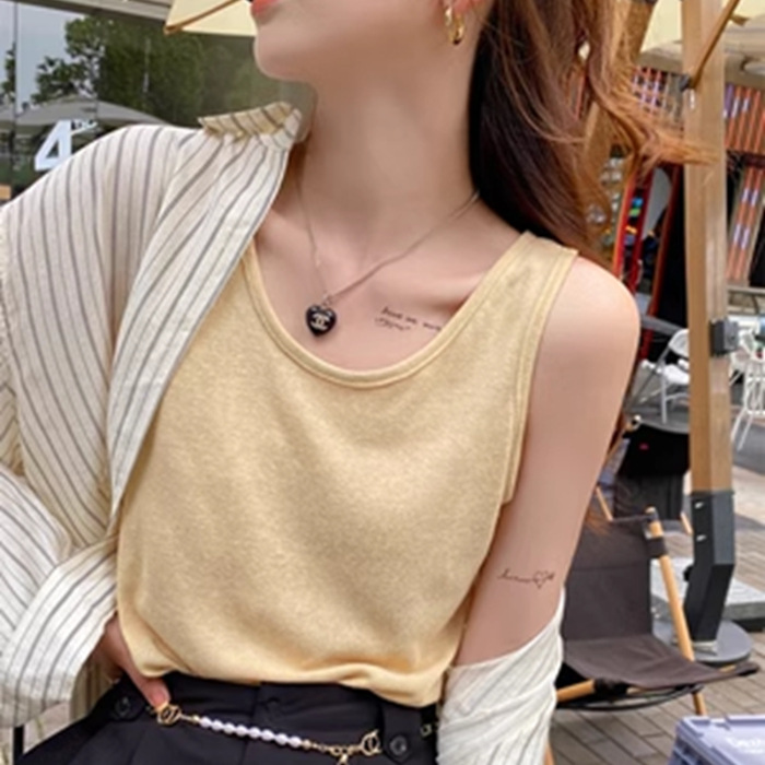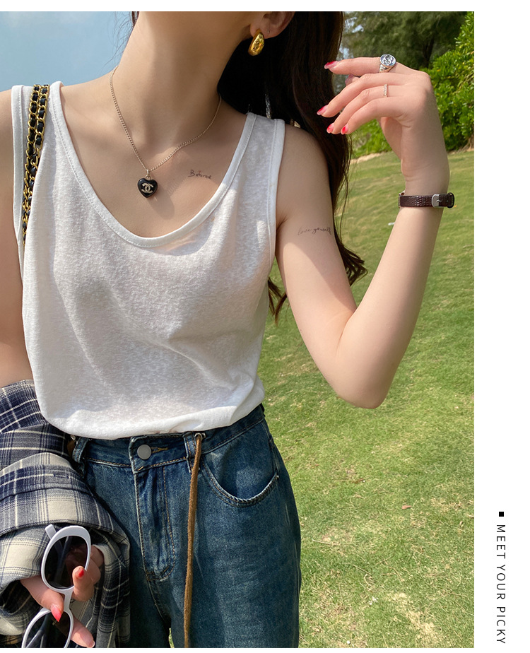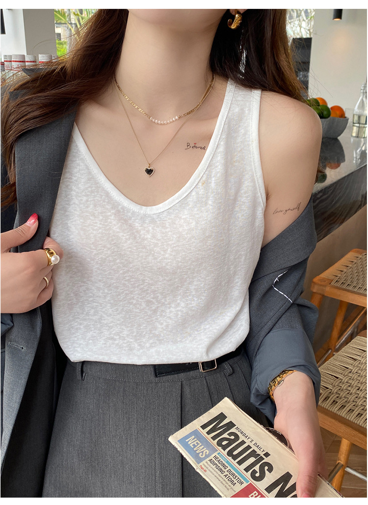 면 및 린넨 조끼 2025 새로운 아이스 실크 화이트 루즈 탑 슬럽 면화베이스 작은 슬링 여성용 여름 외복스토어 가기