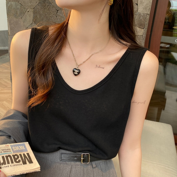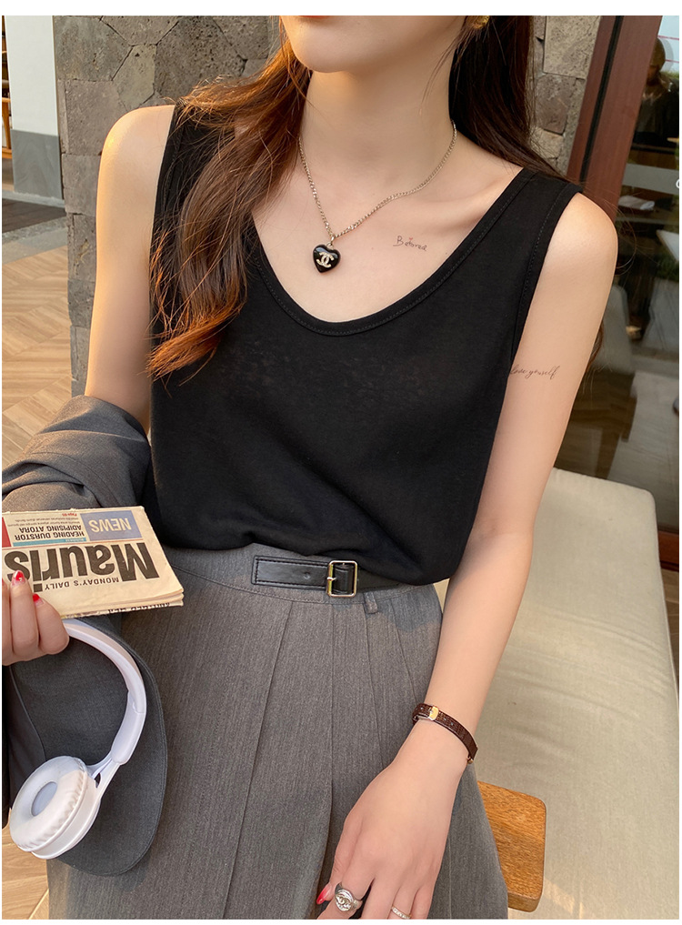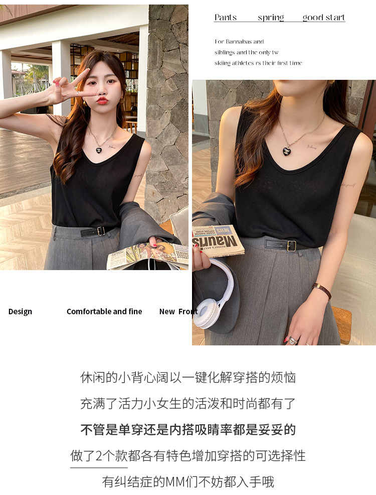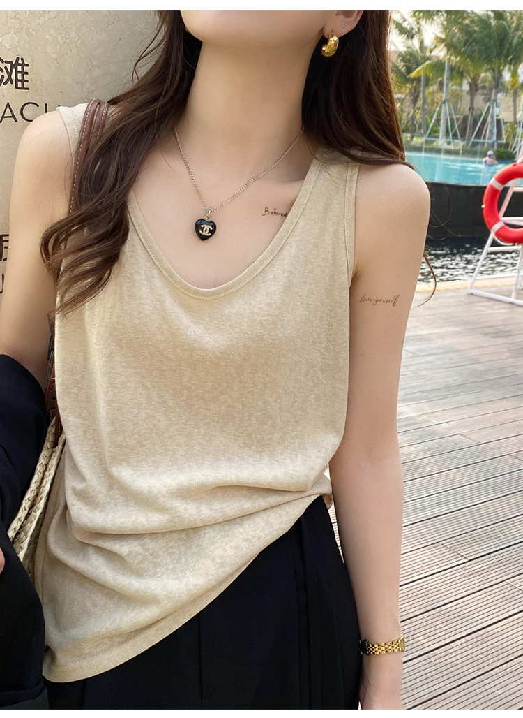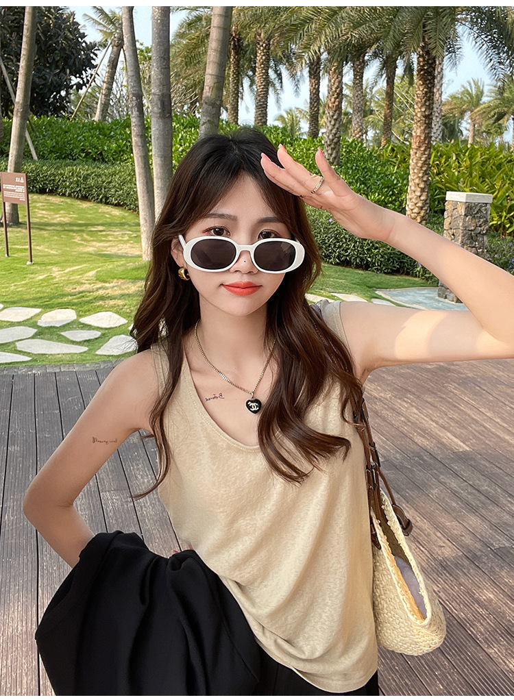 면 및 린넨 조끼 2025 새로운 아이스 실크 화이트 루즈 탑 슬럽 면화베이스 작은 슬링 여성용 여름 외복스토어 가기