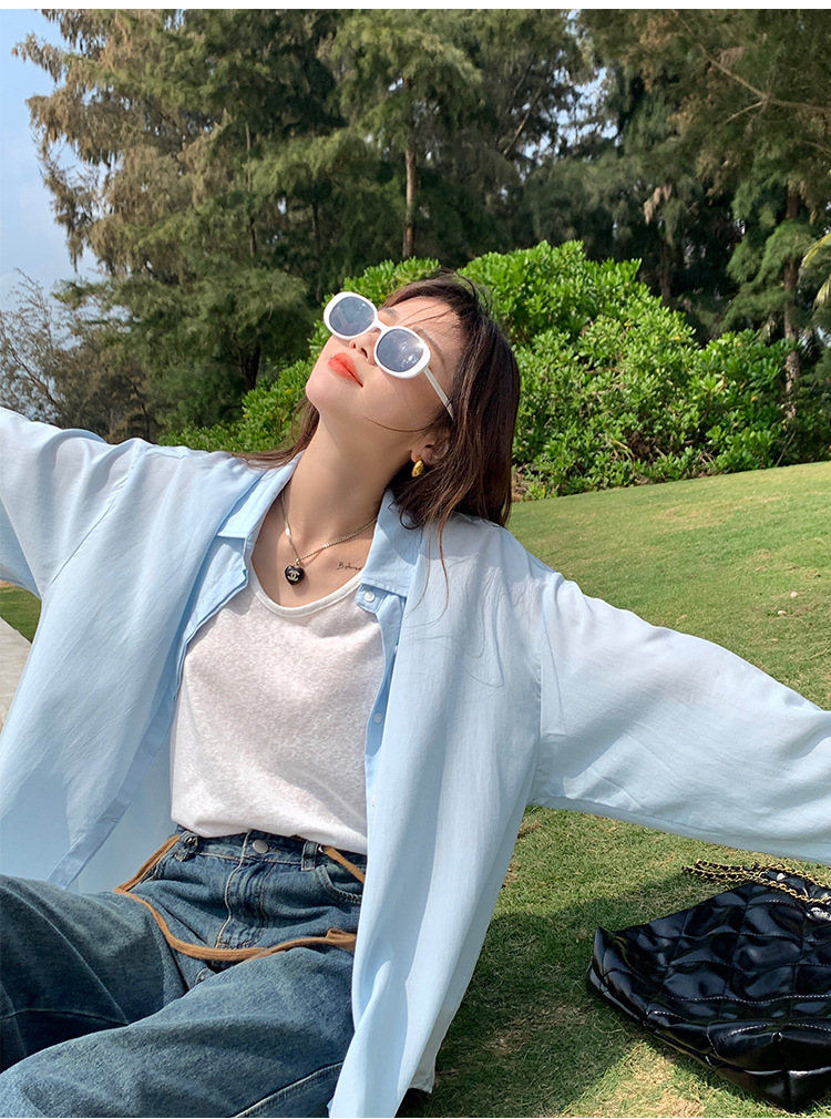 白色慵懒风长袖宽松T恤女秋季休闲薄款显瘦百搭纯欲上衣外贸批发