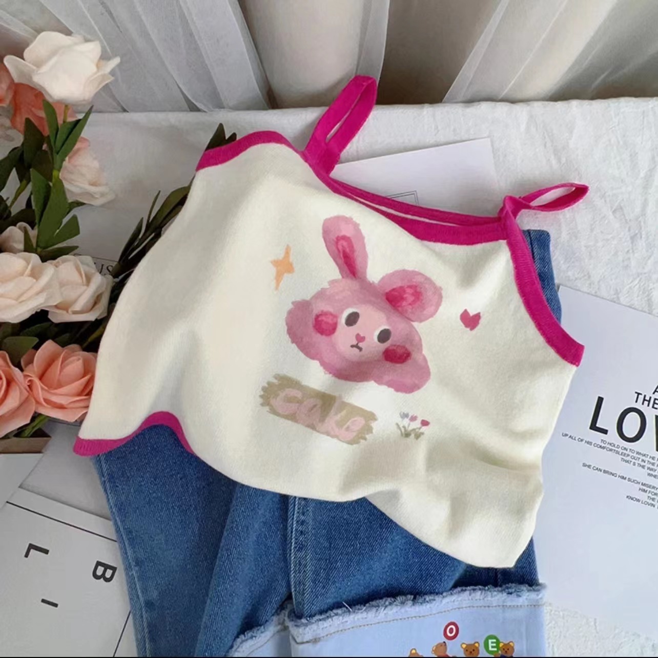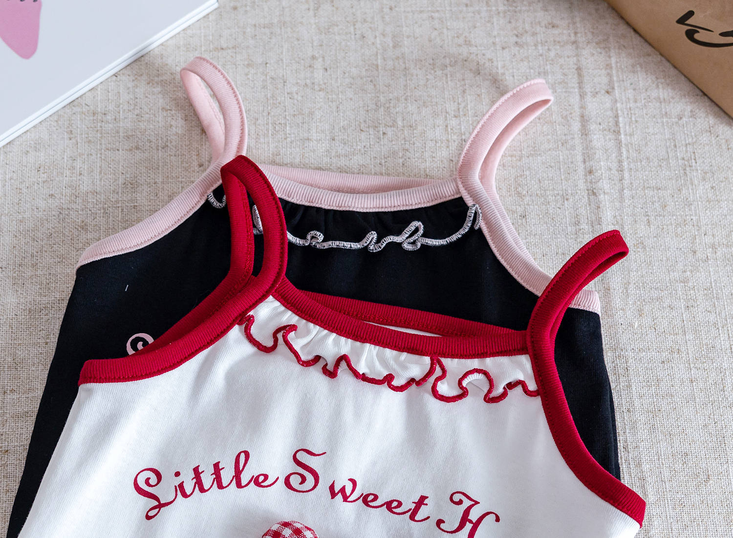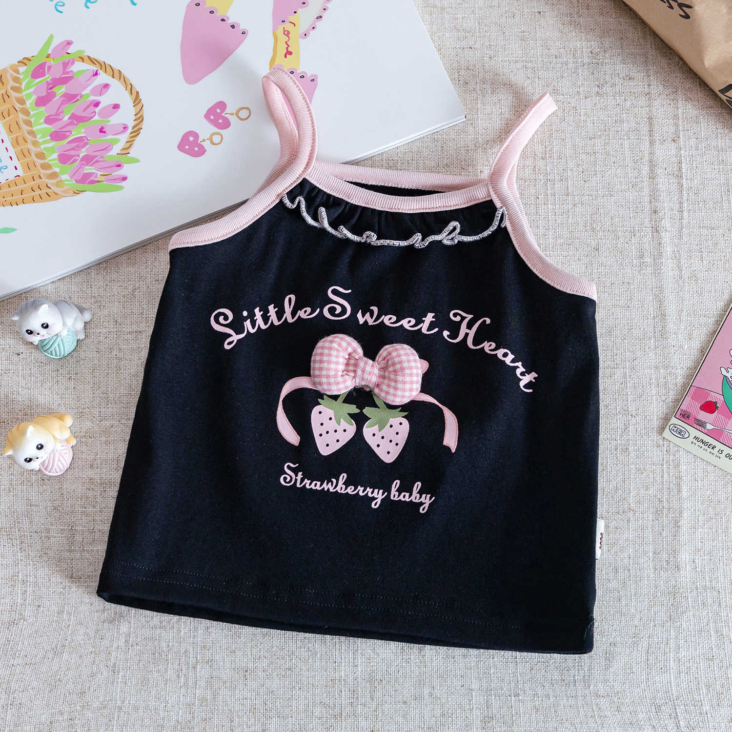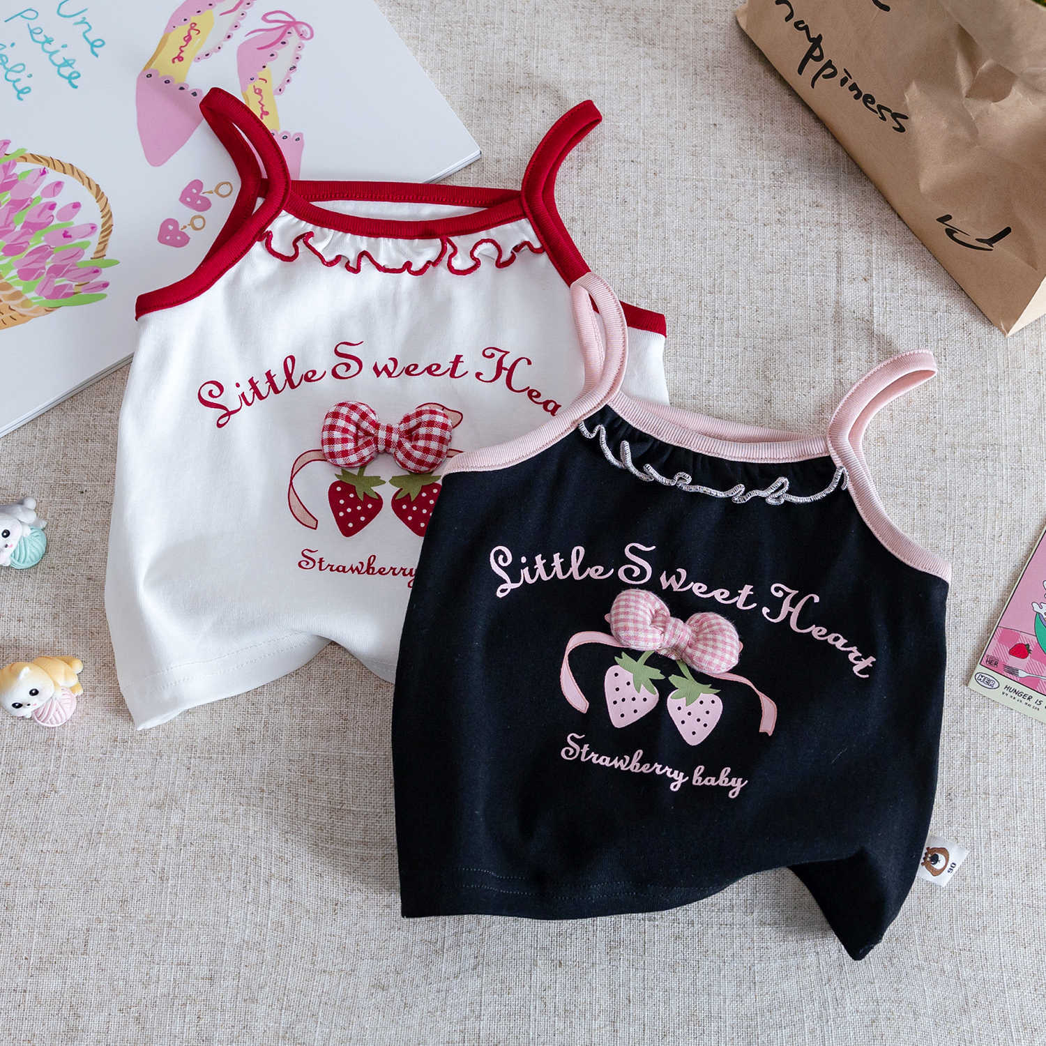 소녀 여름 달콤한 카미 솔 2025 새로운 아기 소녀 귀여운 민소매 티셔츠 어린이 탑스토어 가기