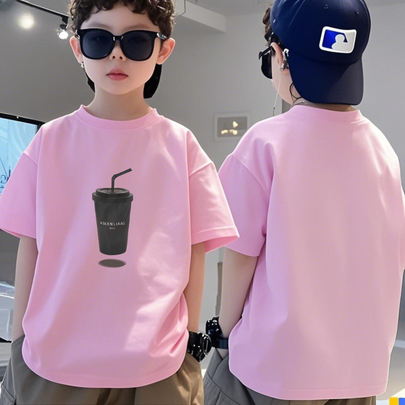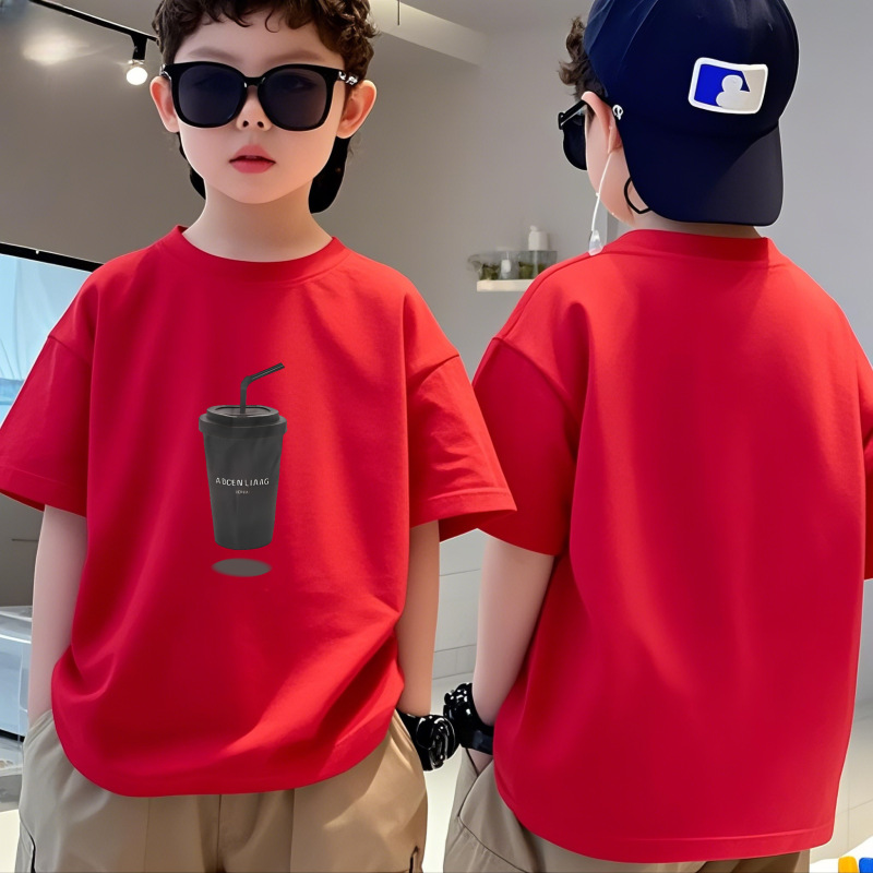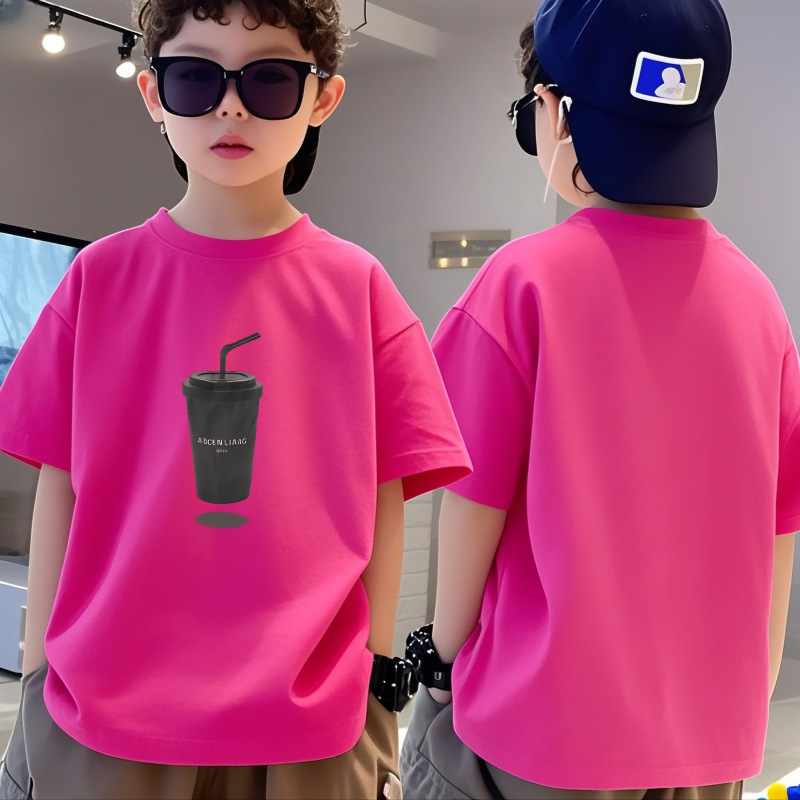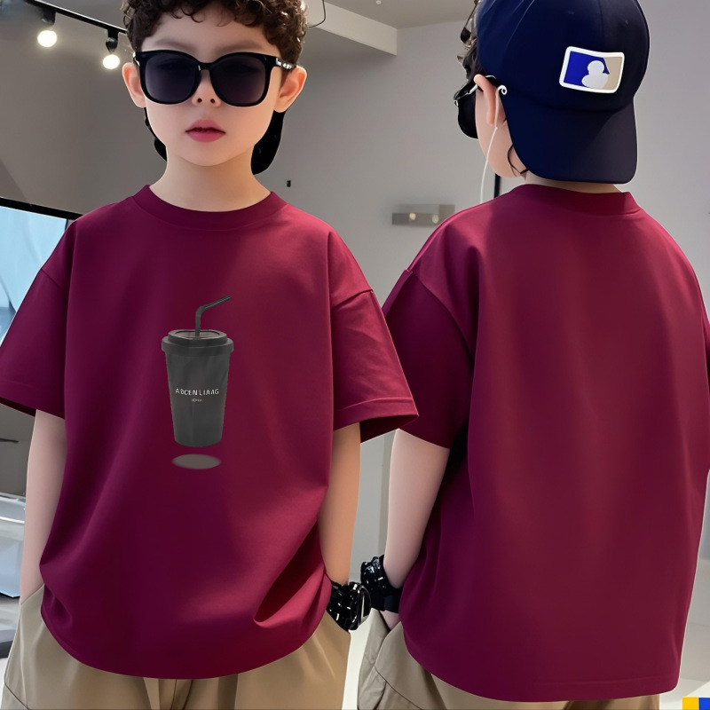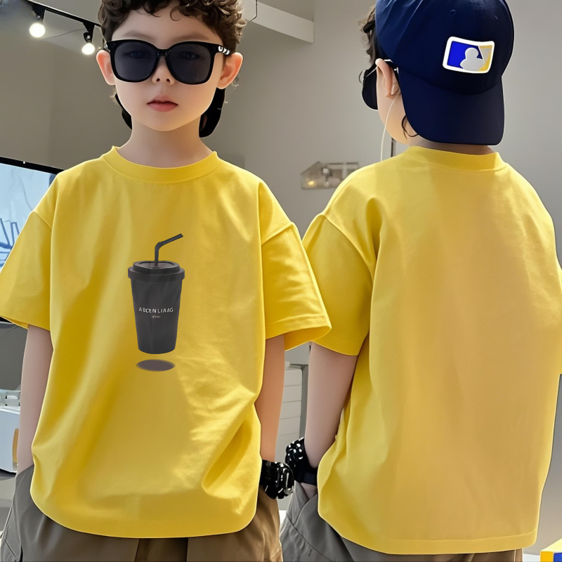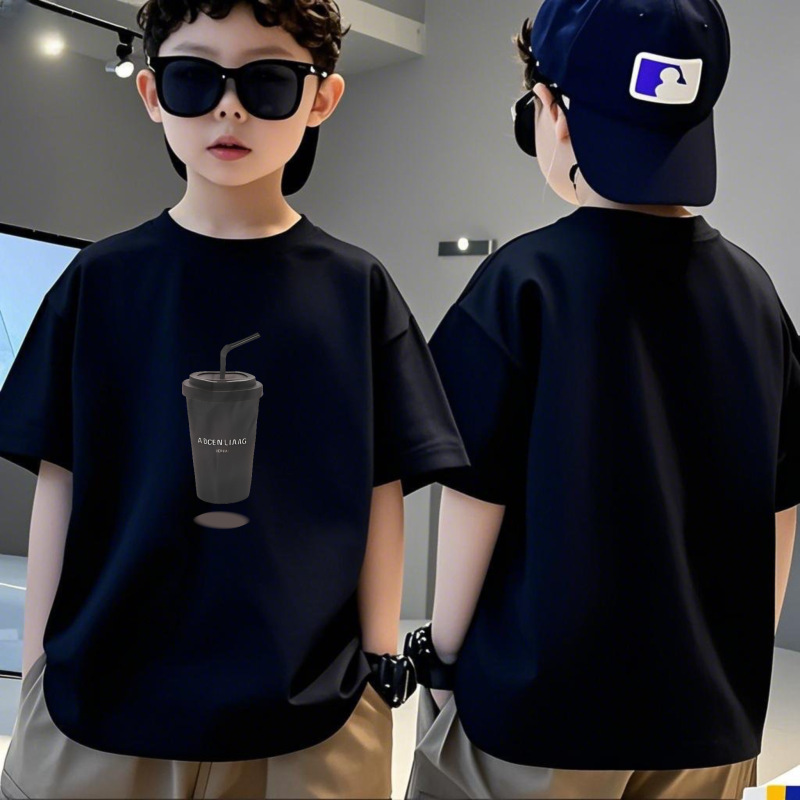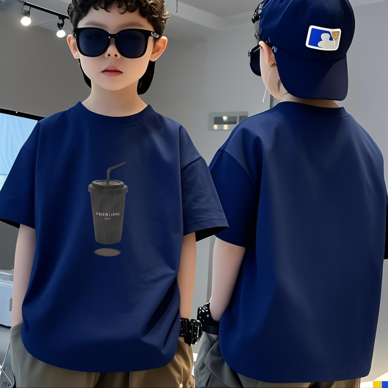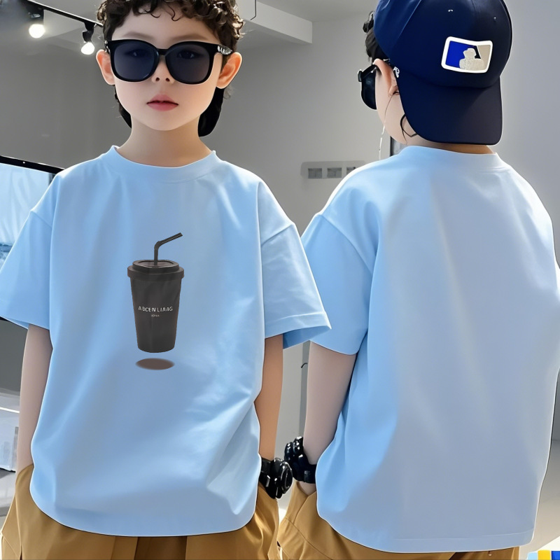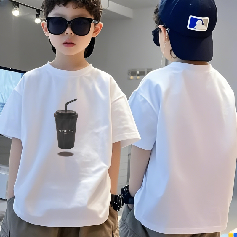 순수 코튼 소년 티셔츠 반팔 여름 어린이 멋진 잘 생긴 소년 느슨한 중대형 아동상의 반팔 여름 의류 트렌디 인스토어 가기