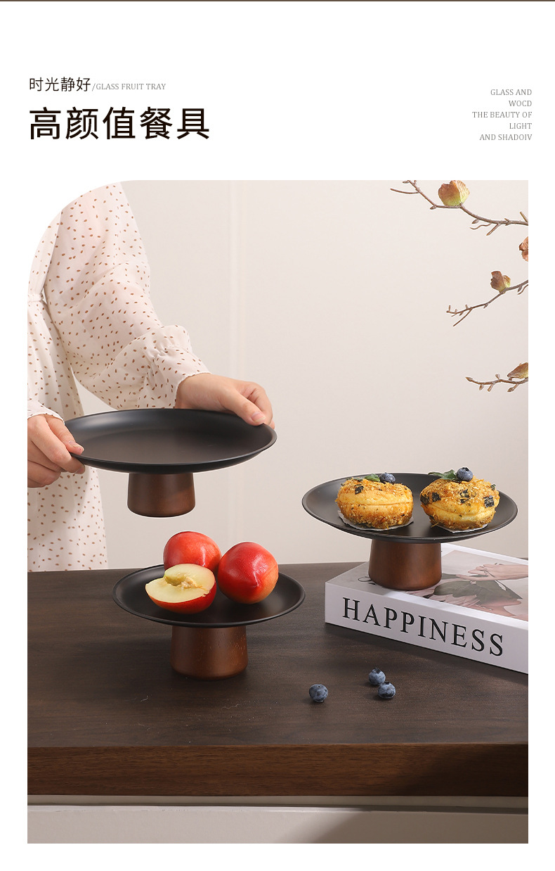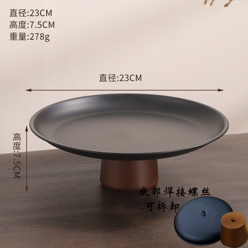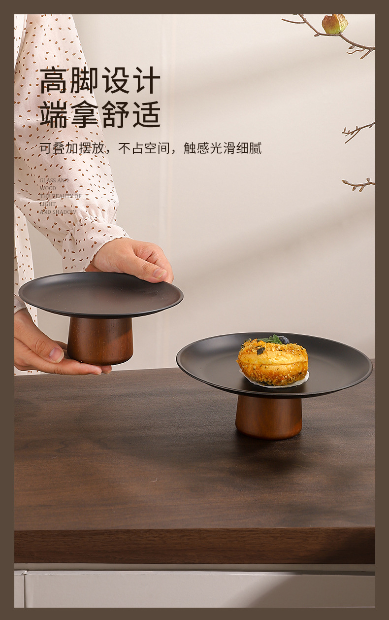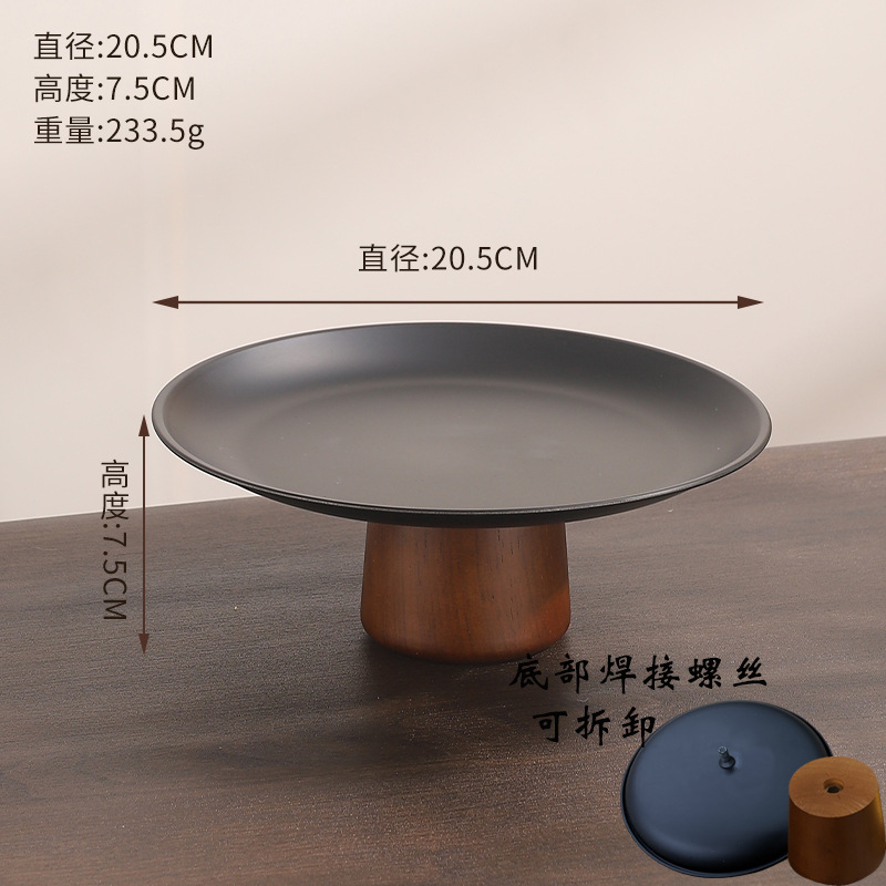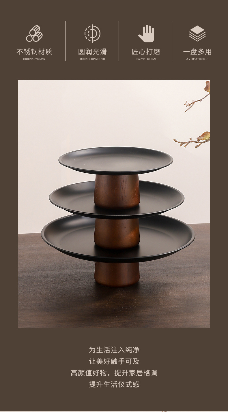 단단한 나무 높은 발 과일 플레이트 스테인레스 스틸 트레이 노르딕 애프터눈 티 트레이 프론트 데스크 캔디 플레이트 과일 케이크 디저트 플레이트