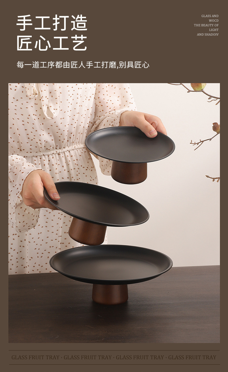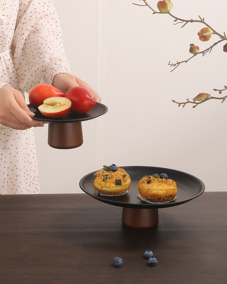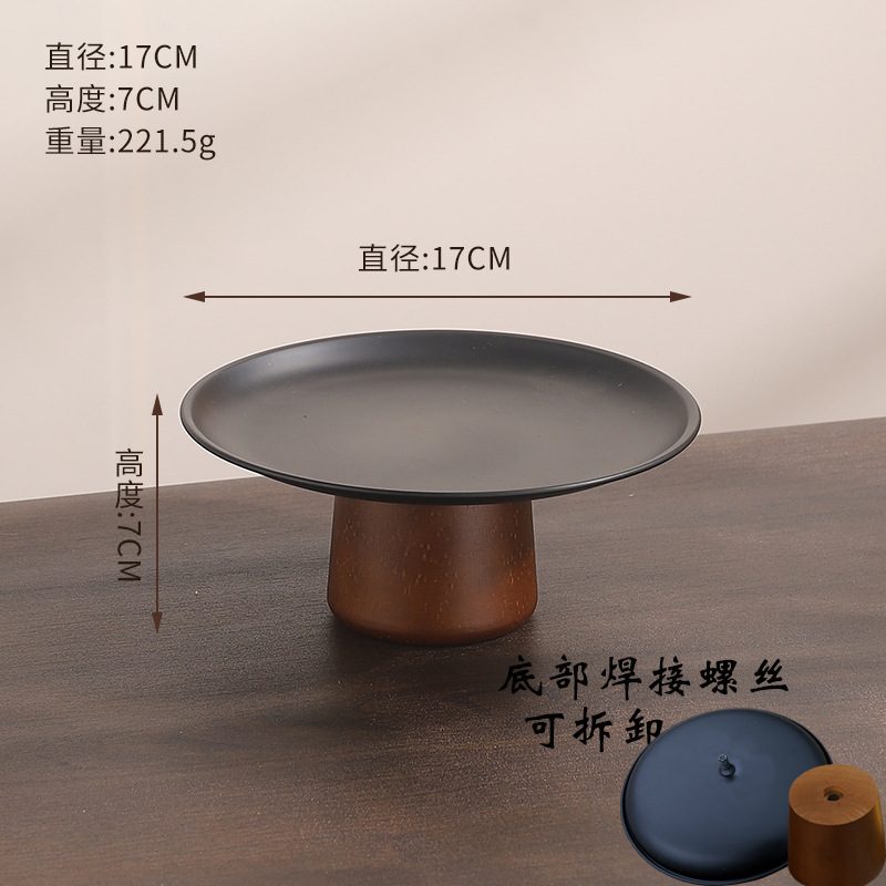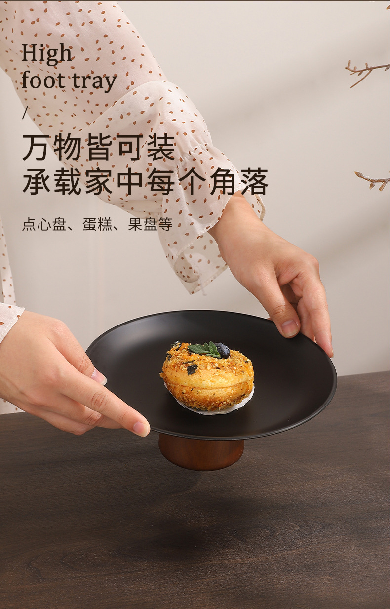 단단한 나무 높은 발 과일 플레이트 스테인레스 스틸 트레이 노르딕 애프터눈 티 트레이 프론트 데스크 캔디 플레이트 과일 케이크 디저트 플레이트
