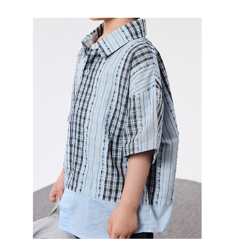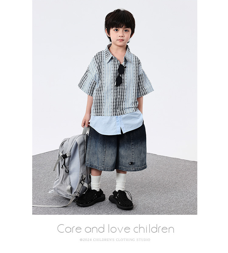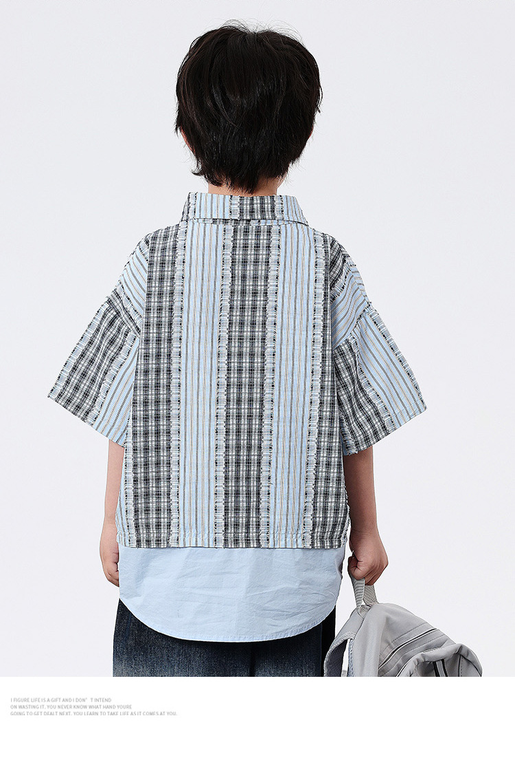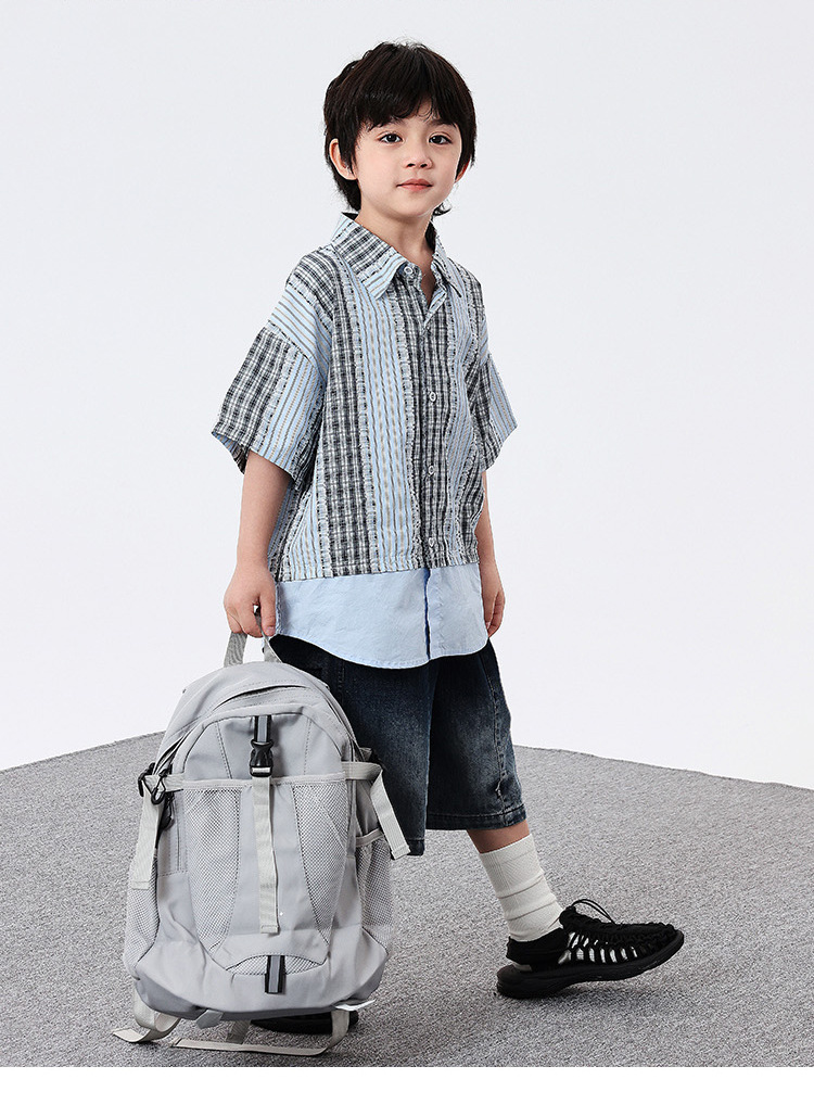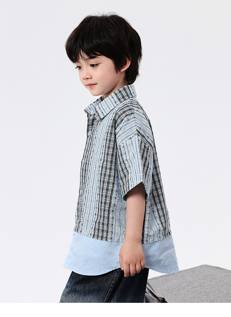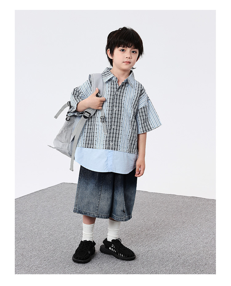 Pudding Haru 아동복 소년 디자인 탑 2025 여름 신작 중대형 아동 캐주얼 반팔 셔츠