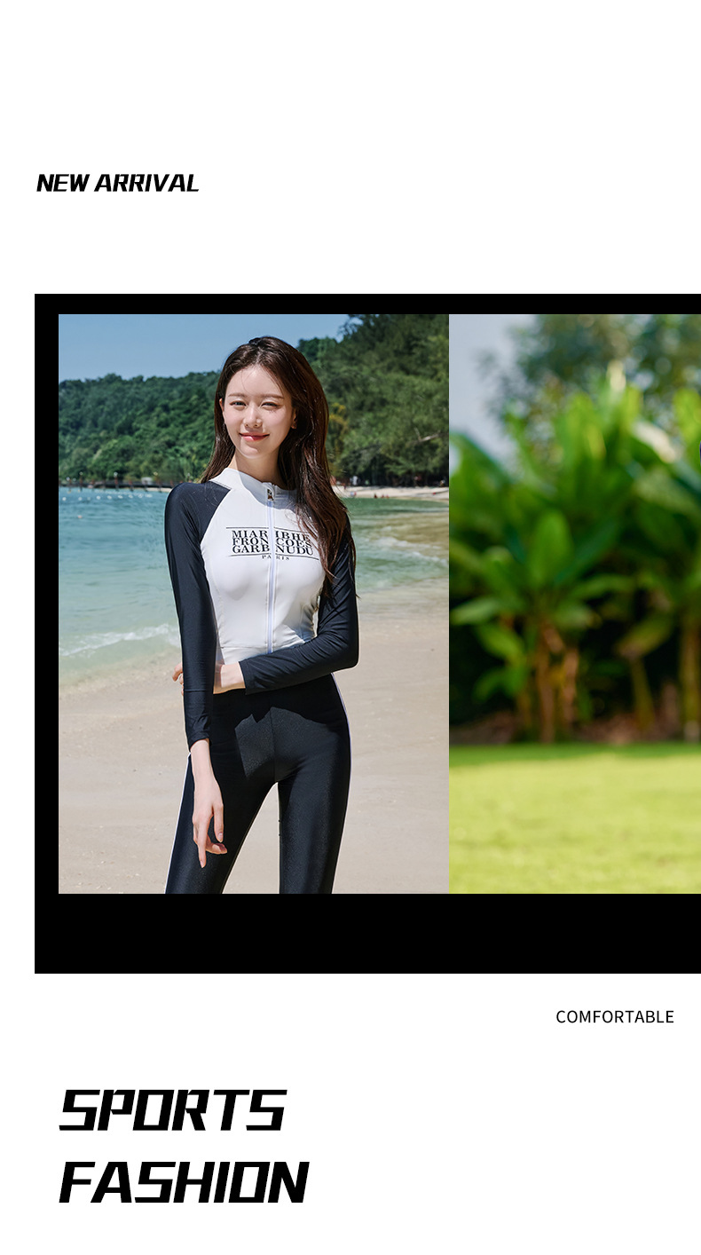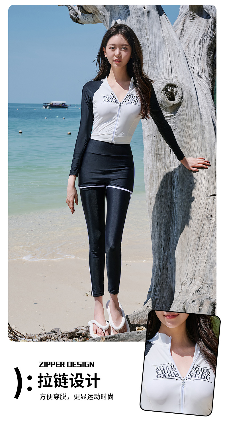 수영복, 잠수복, 한국식 스플릿 긴팔 바지, 여성용 3피스 수영복, 스포츠 스타일 대형 속건성 비치 팬츠
