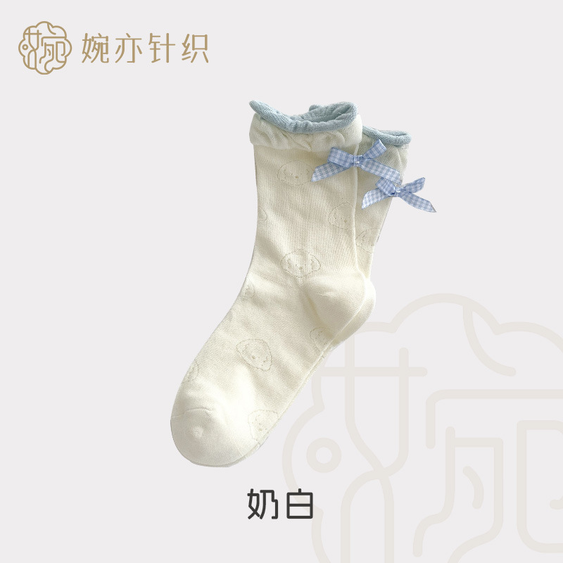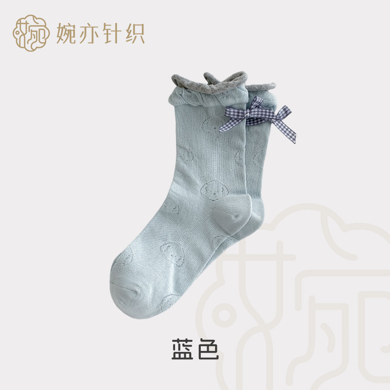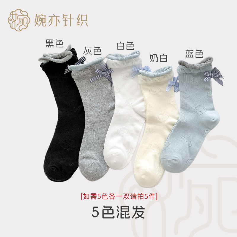 봄 여름 어린이를위한 힐 활 중간 튜브 스택 양말 얇은 어두운 패턴 강아지 한국 스타일 Ins 스타일 더블 레이스 양말